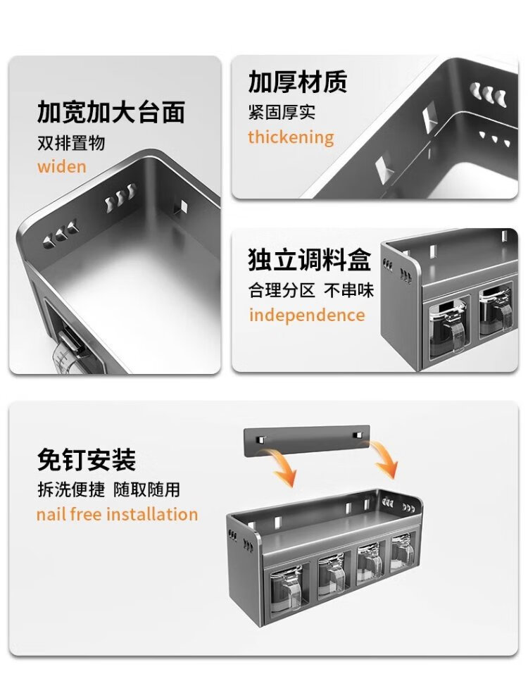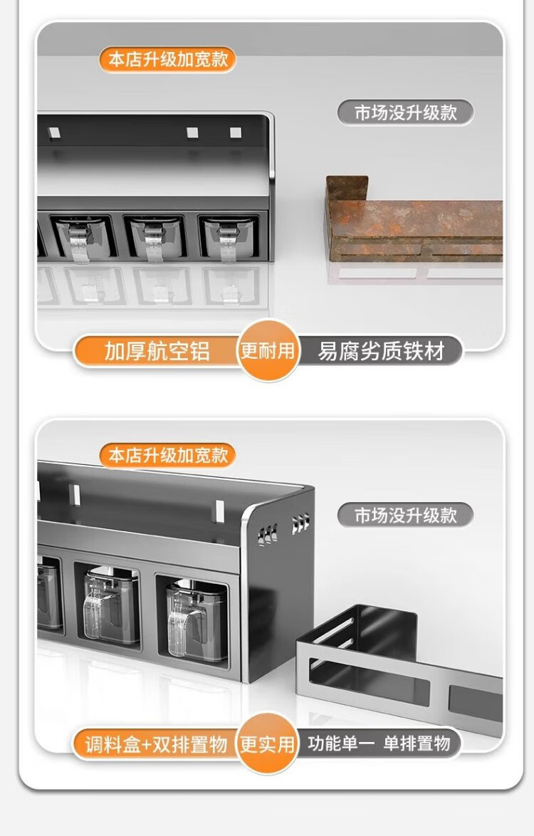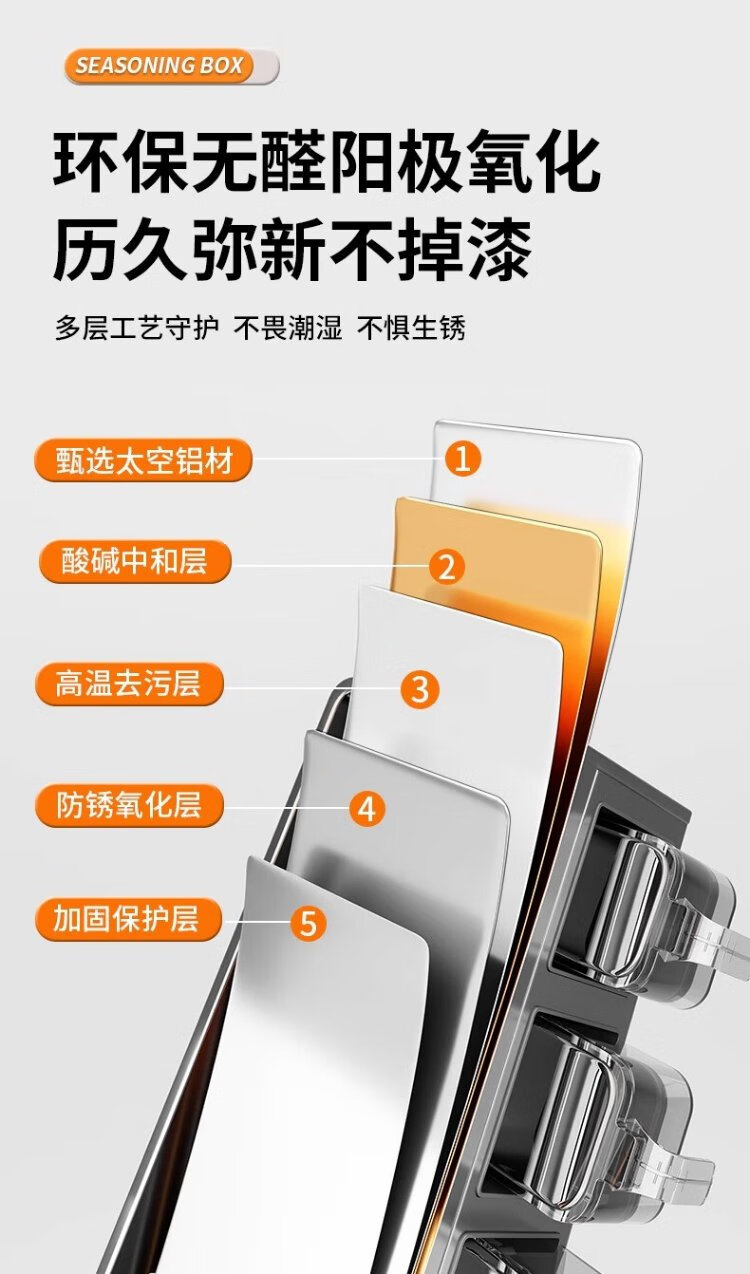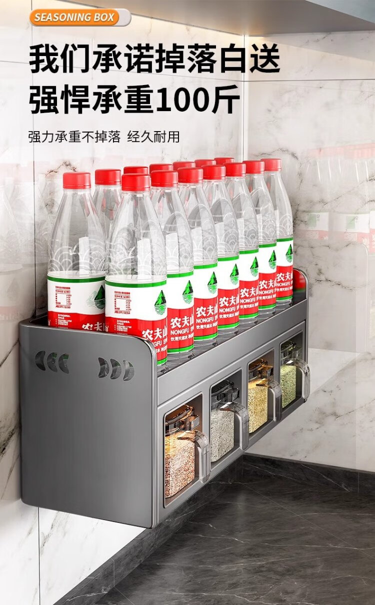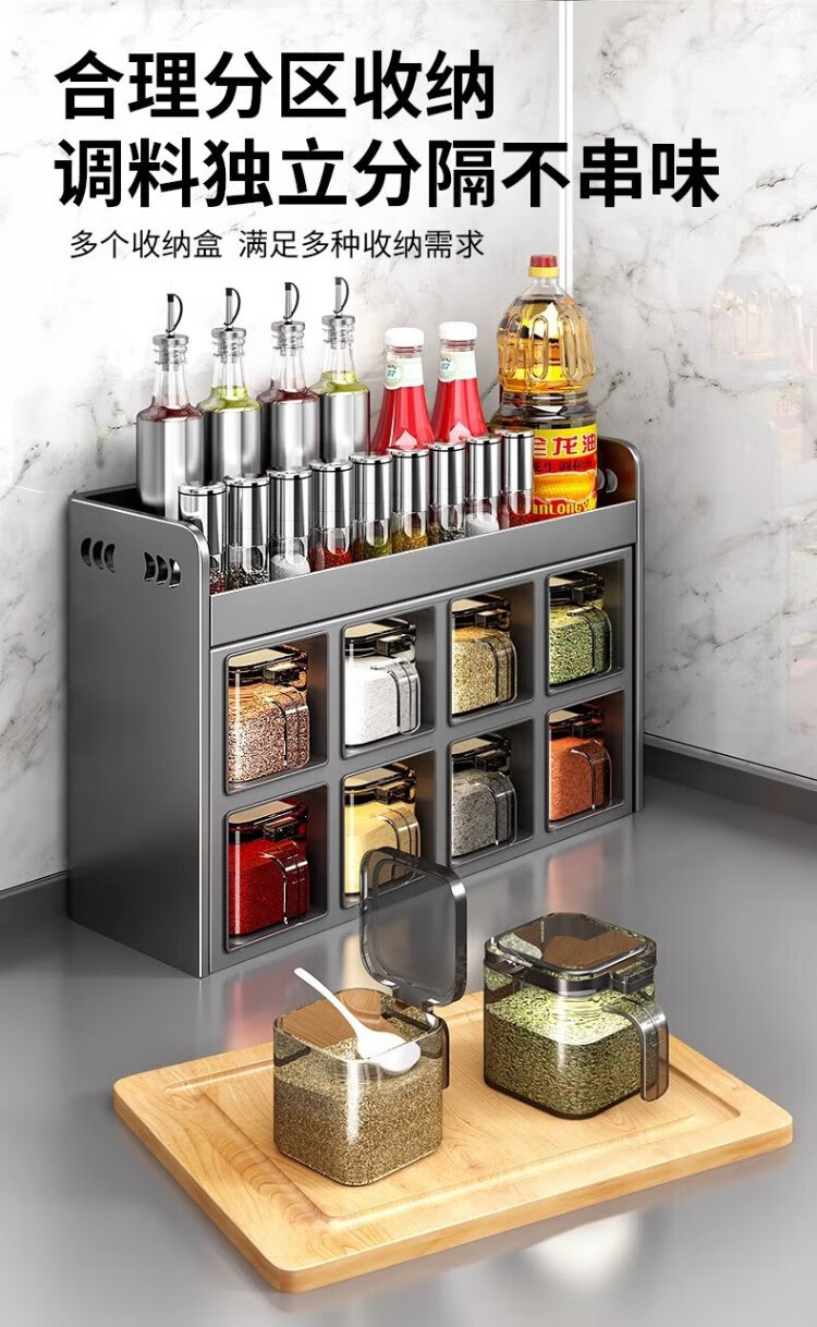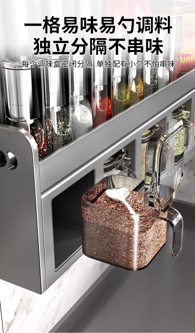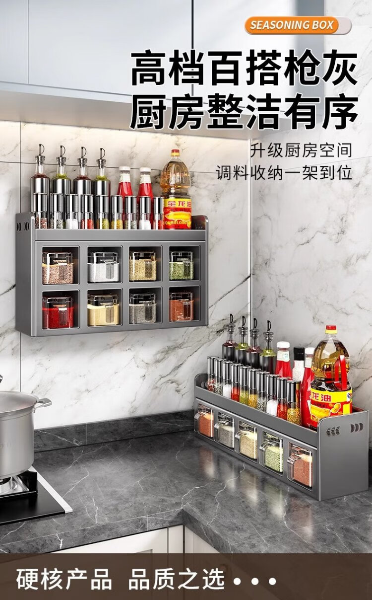 Mrs. Ming's kitchen rack spice box set wall-mounted spice utensils spice jar combination all-in-one spice storage box double layer + 6 spice boxes
