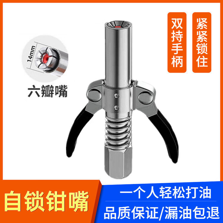 Xile's new double-handle gear-type high-pressure grease nozzle for oil-free grease gun nozzle self-locking quick connector Single-handle stainless steel gear nozzle 2+