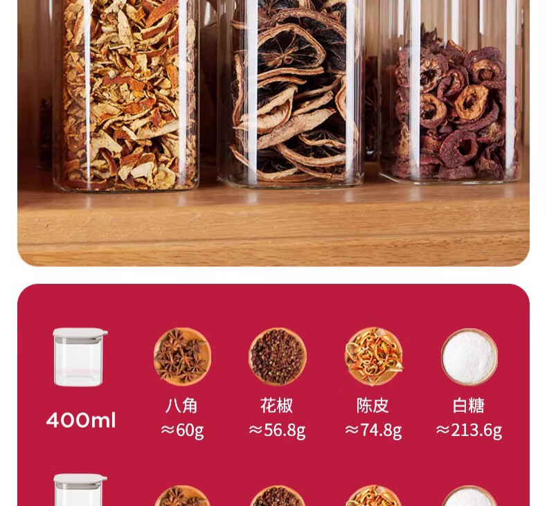 WELLMEET spice storage box food-grade kitchen star anise cinnamon dried chili pepper aniseed sealed jar sub-bottle seasoning jar 6 pieces-400ml free seasoning label