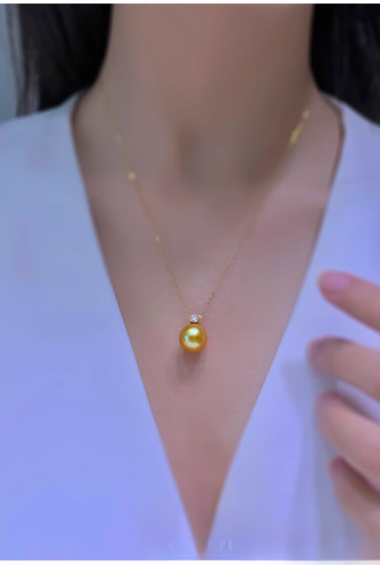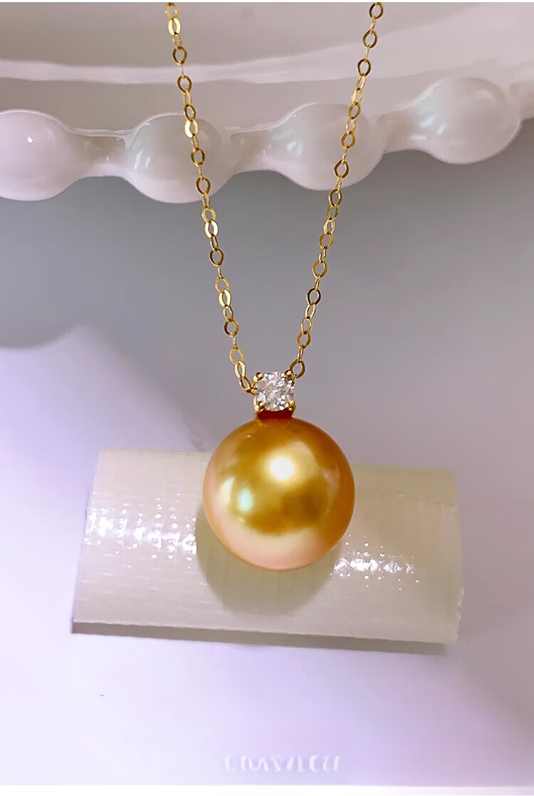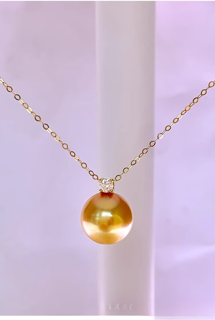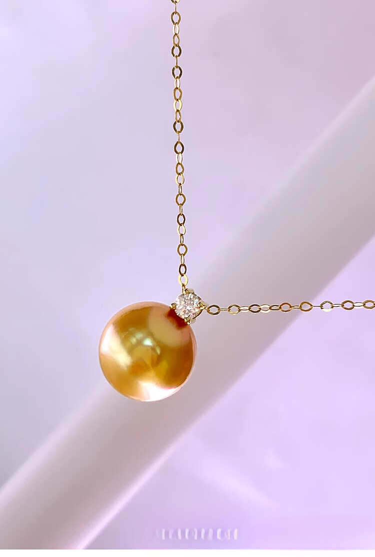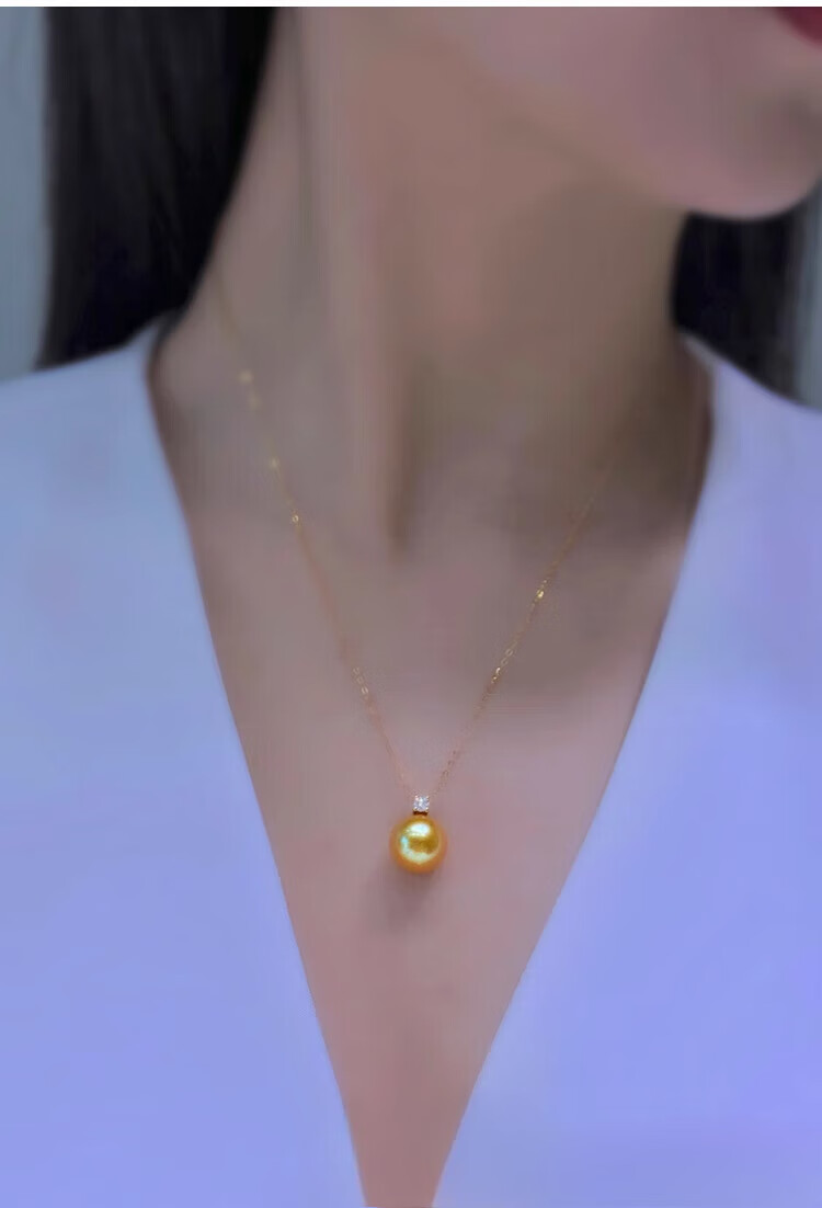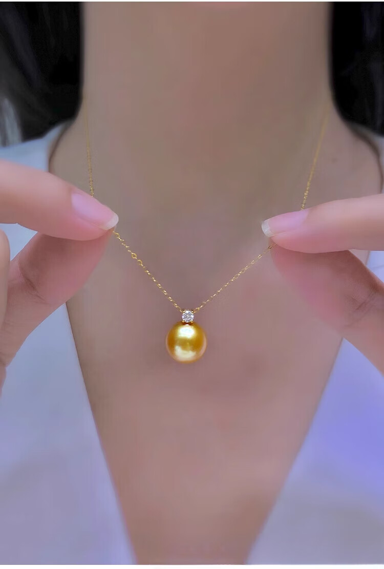 Fat Donglai's same style South Sea gold bead pendant, Philippine seawater pearl and shell bead necklace, 18K gold plated and diamond-plated, Princess style South Sea gold bead pendant, 16mm