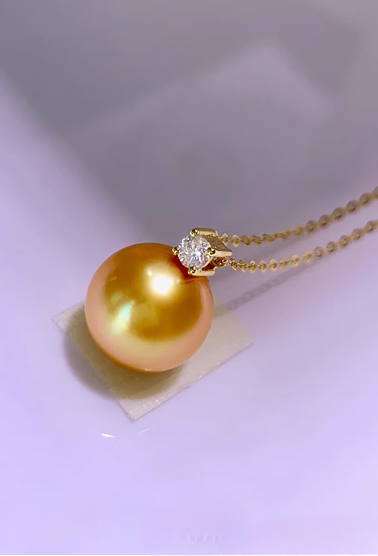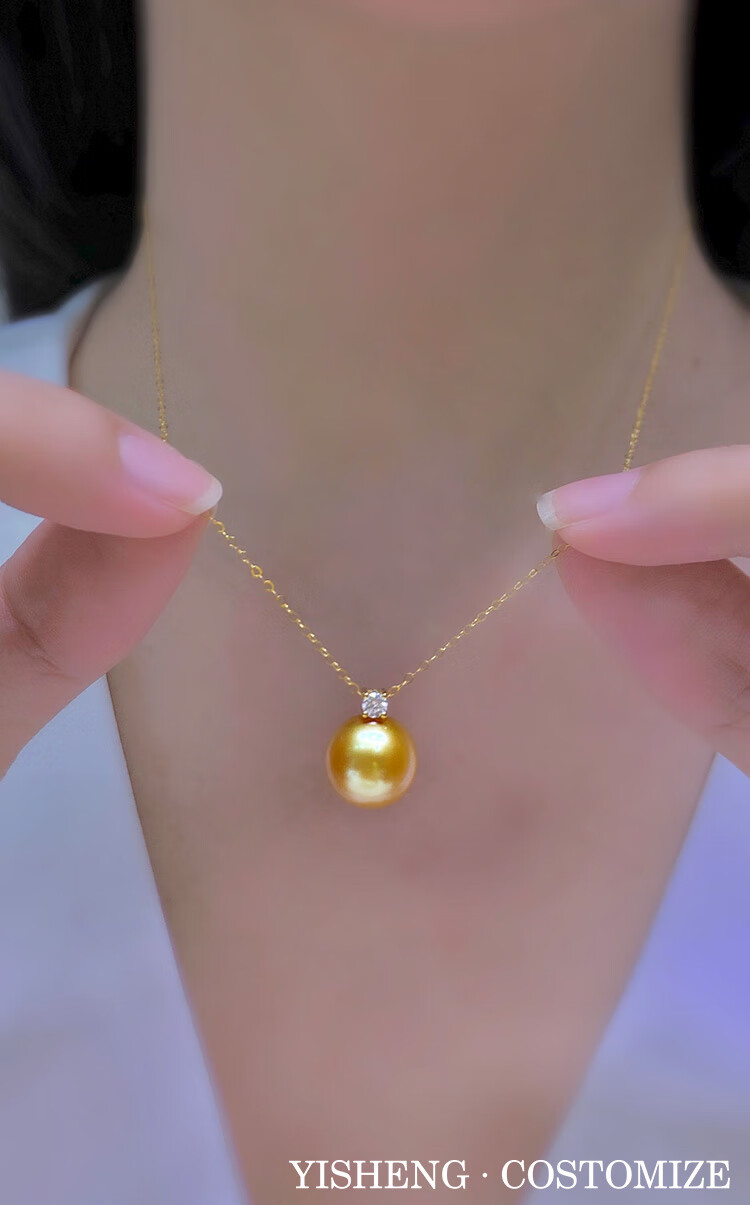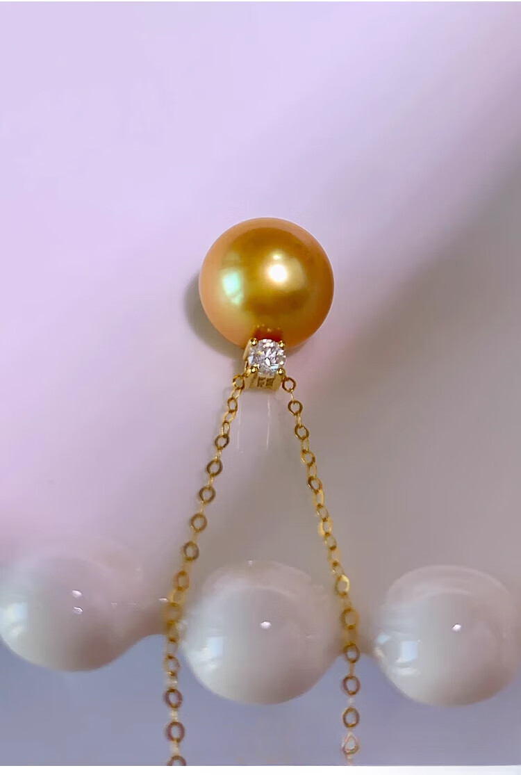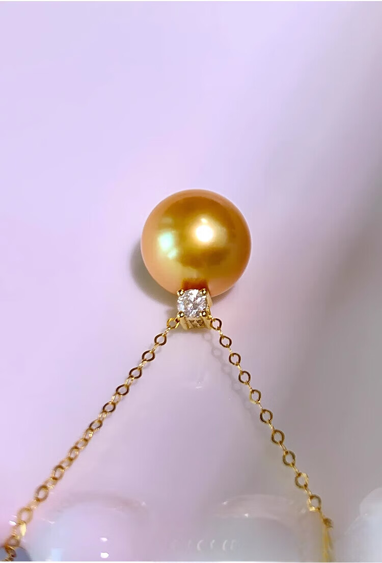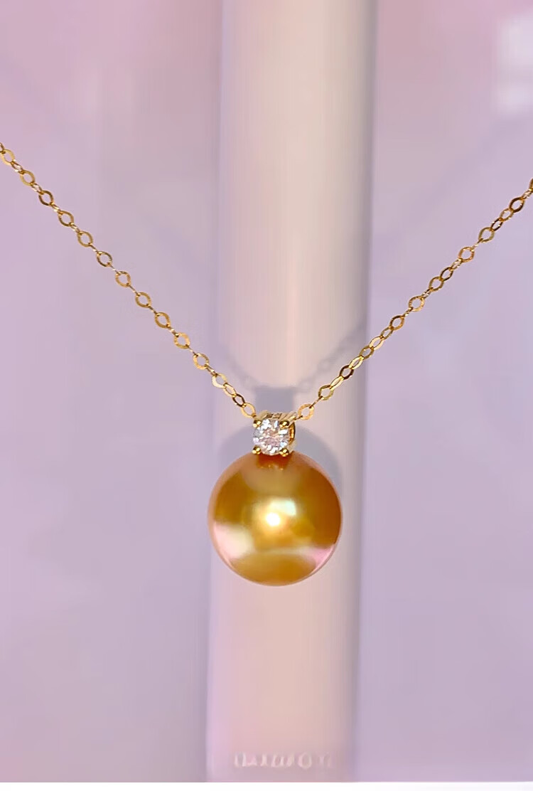 Fat Donglai's same style South Sea gold bead pendant, Philippine seawater pearl and shell bead necklace, 18K gold plated and diamond-plated, Princess style South Sea gold bead pendant, 16mm