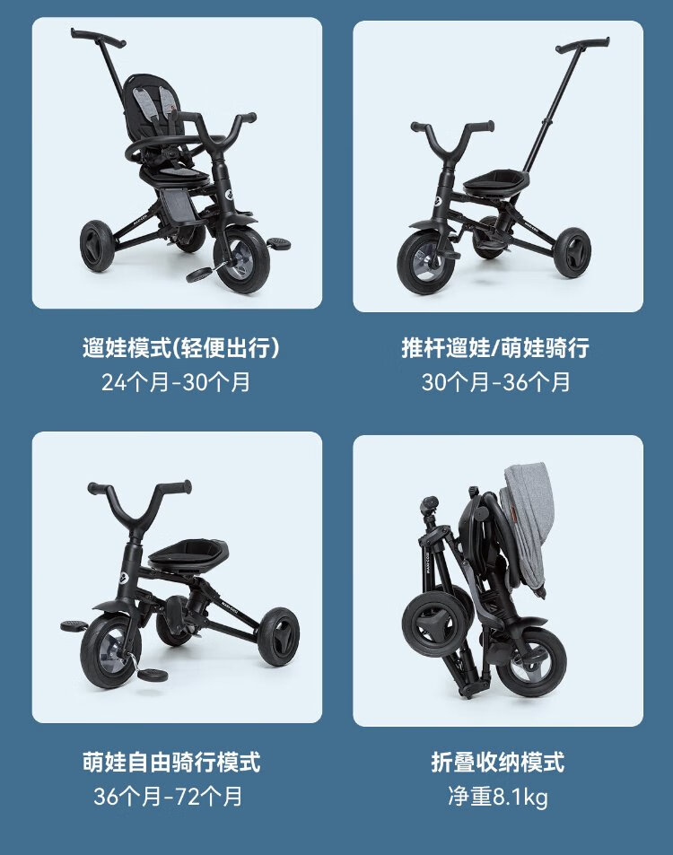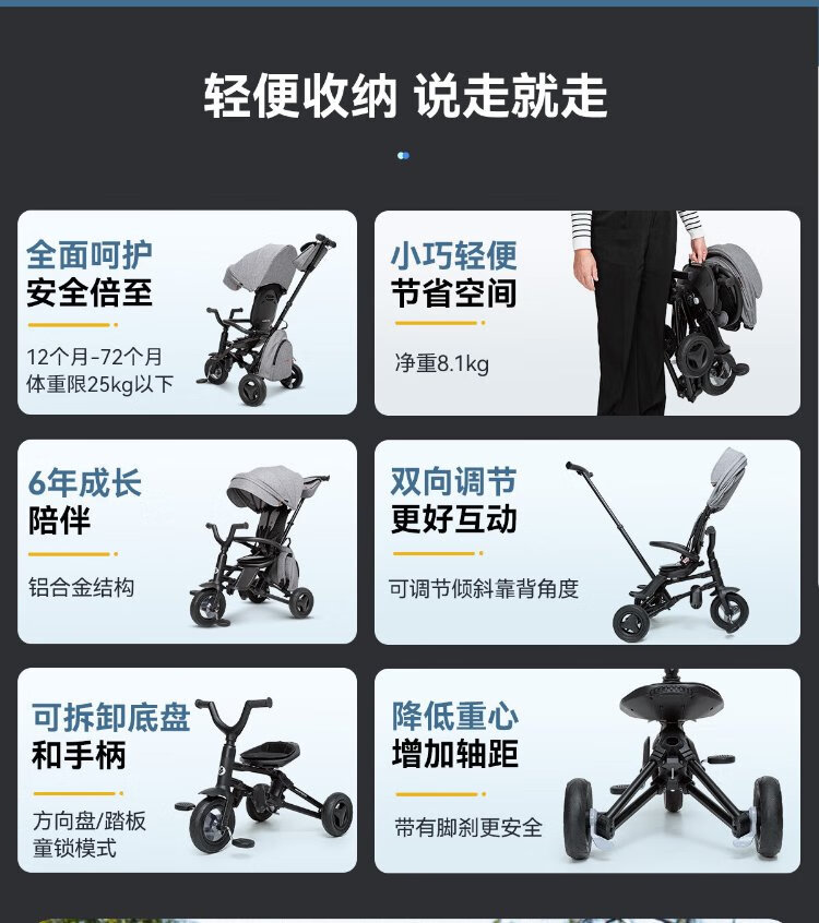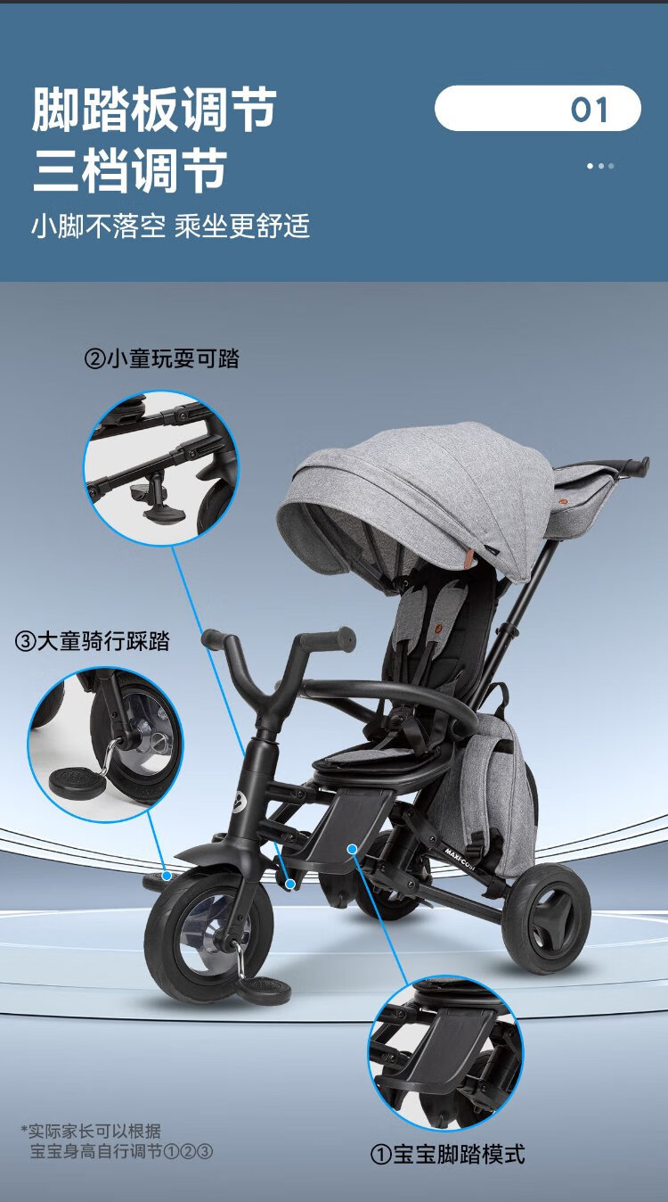 Maxi Children's Tricycle Patroller Stroller Bicycle 1-6 Years Old Baby Stroller Gift Love Gray