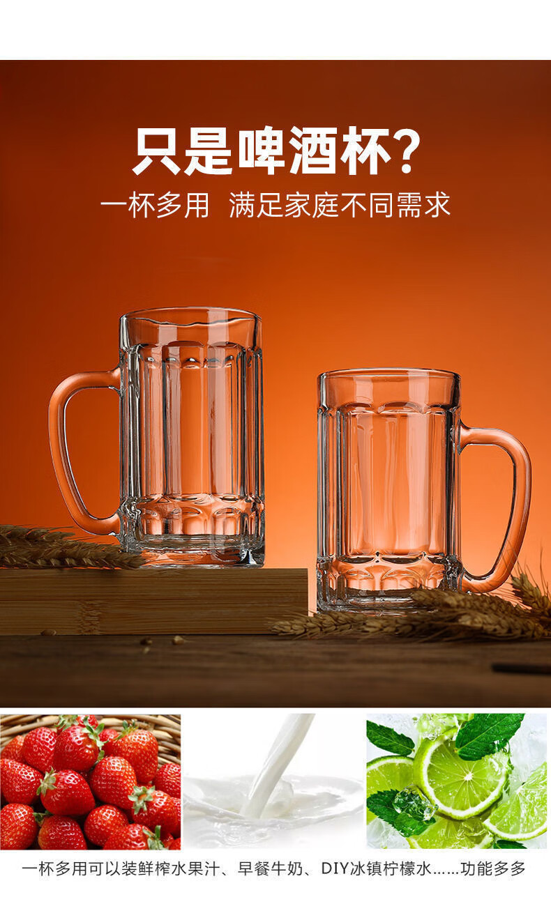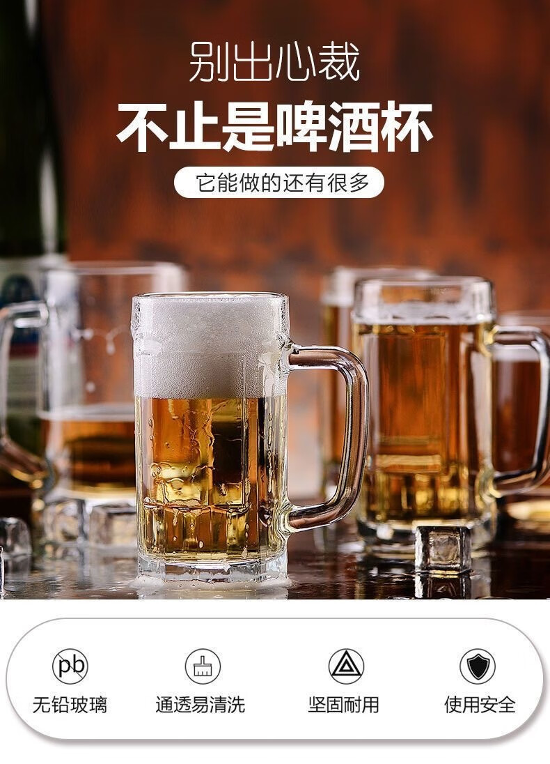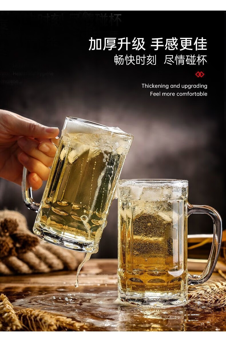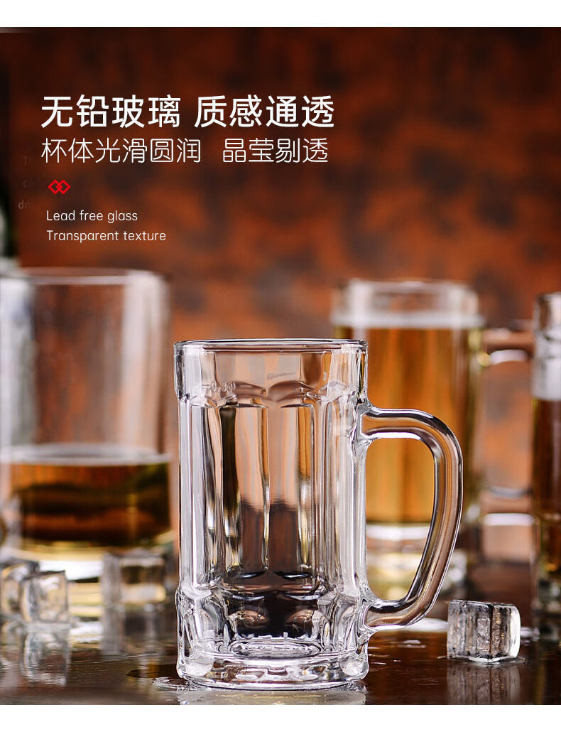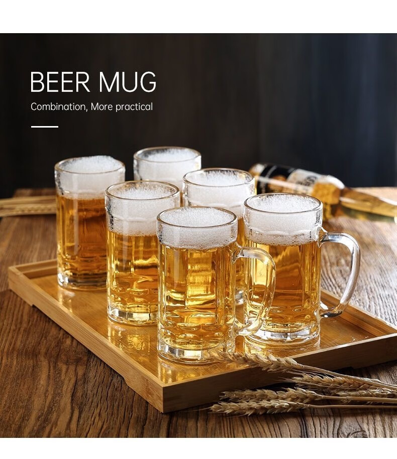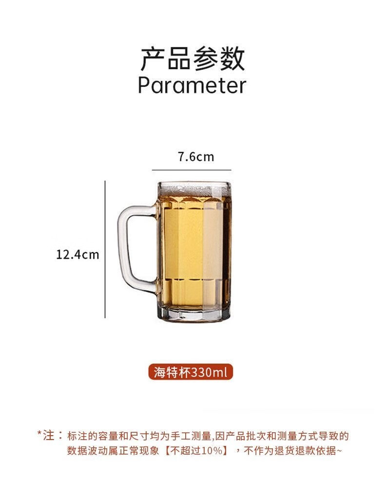 Vinoa summer large-capacity thickened draft beer mug heat-resistant glass household beer mug living room with handle 350ml beer mug*1