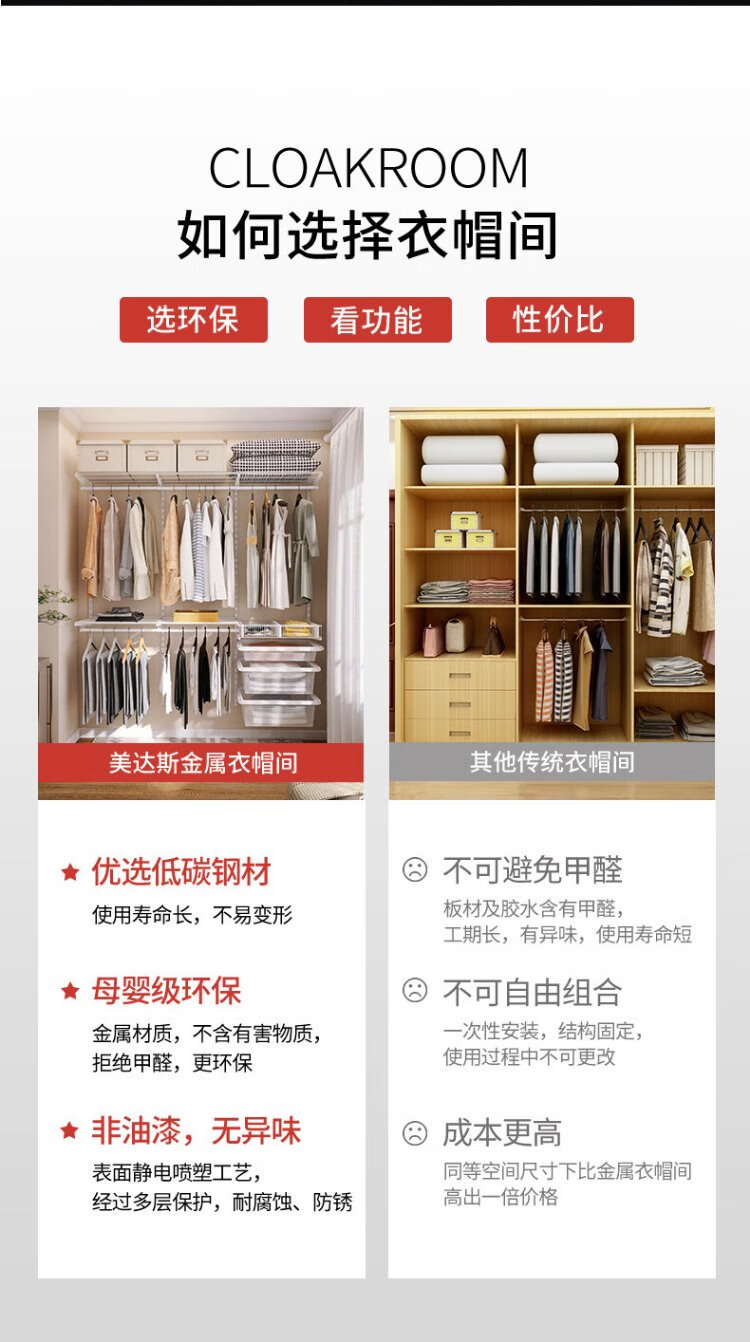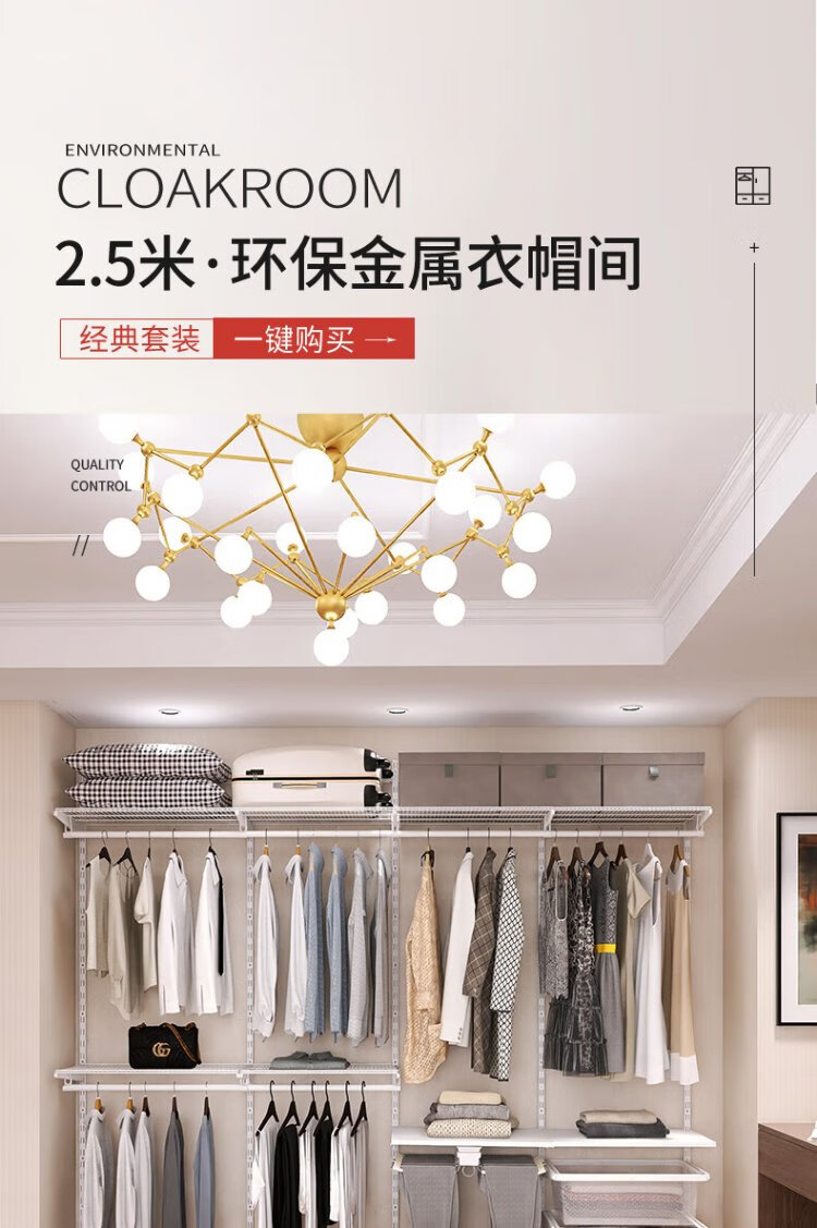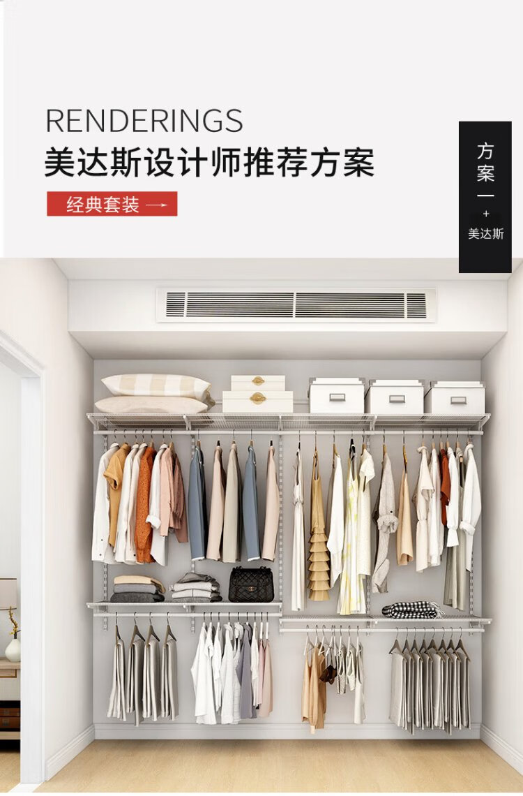 Midas Midas 2.5m metal wardrobe steel frame structure wall wardrobe storage rack adjustable coat rack 2.5m metal wardrobe plan-9