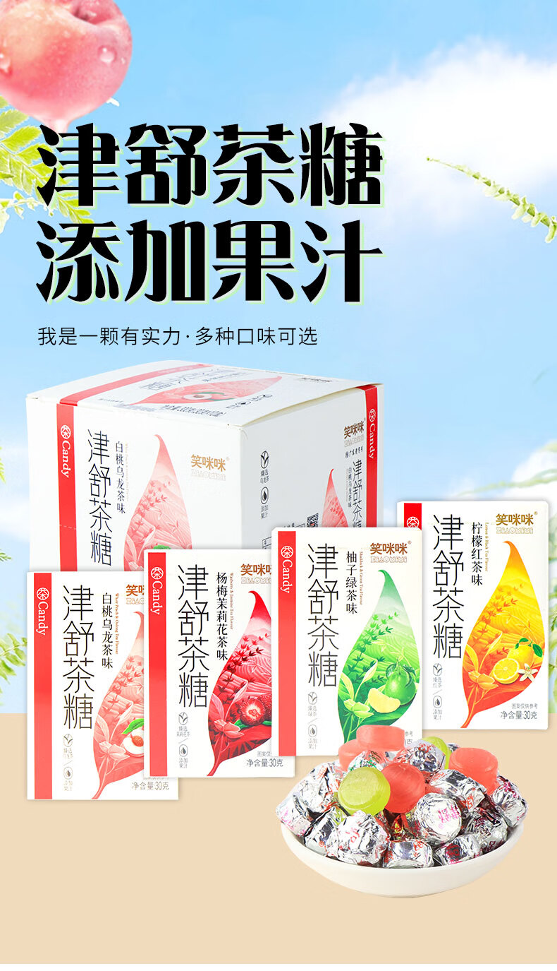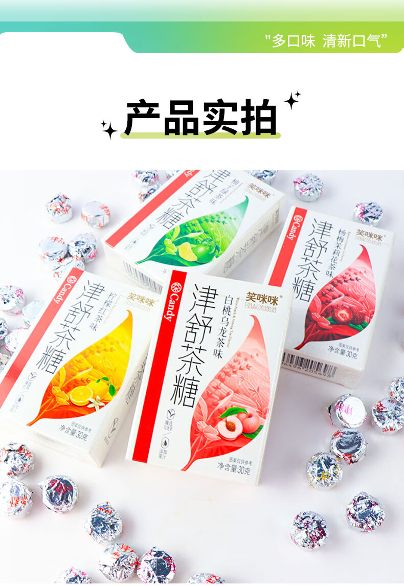 Jinshu Tea Sugar Bayberry Jasmine Tea White Peach Oolong Lemon Black Tea Pomelo Green Tea Fresh Breath Hard Candy Candy Snacks Pomelo Green Tea + Lemon Black Tea + Bayberry Jasmine Tea 3 boxes (about 36 pieces)