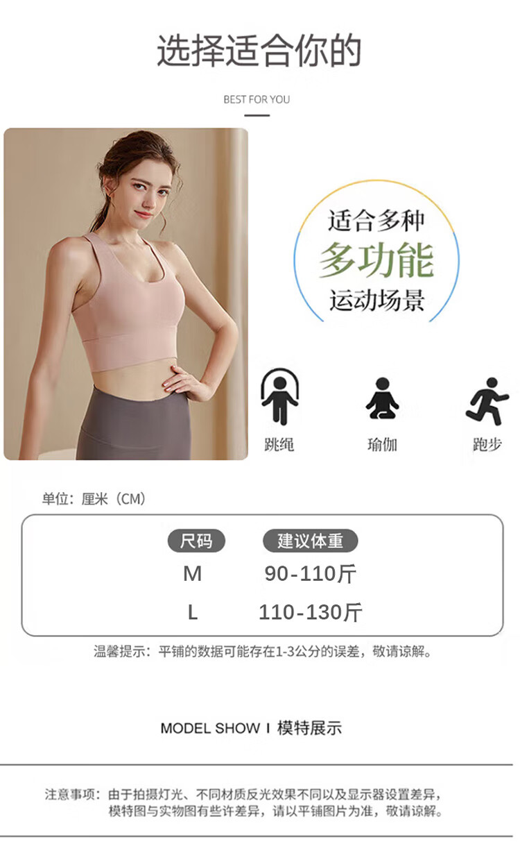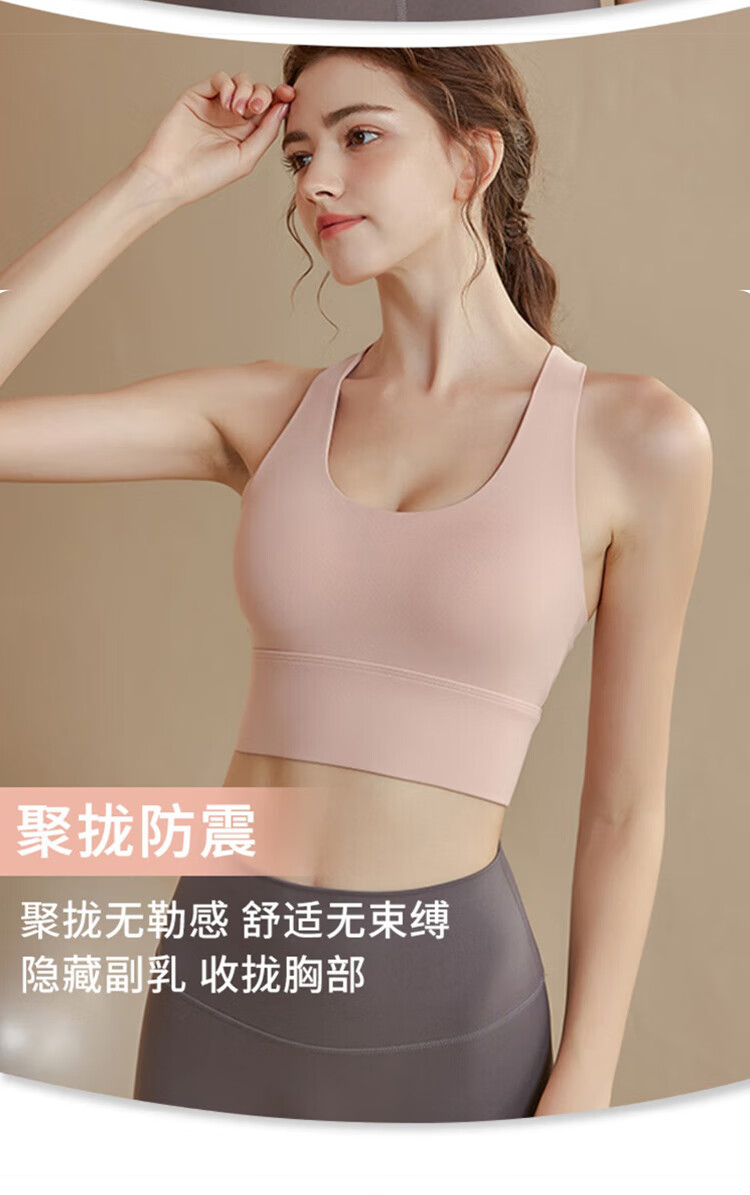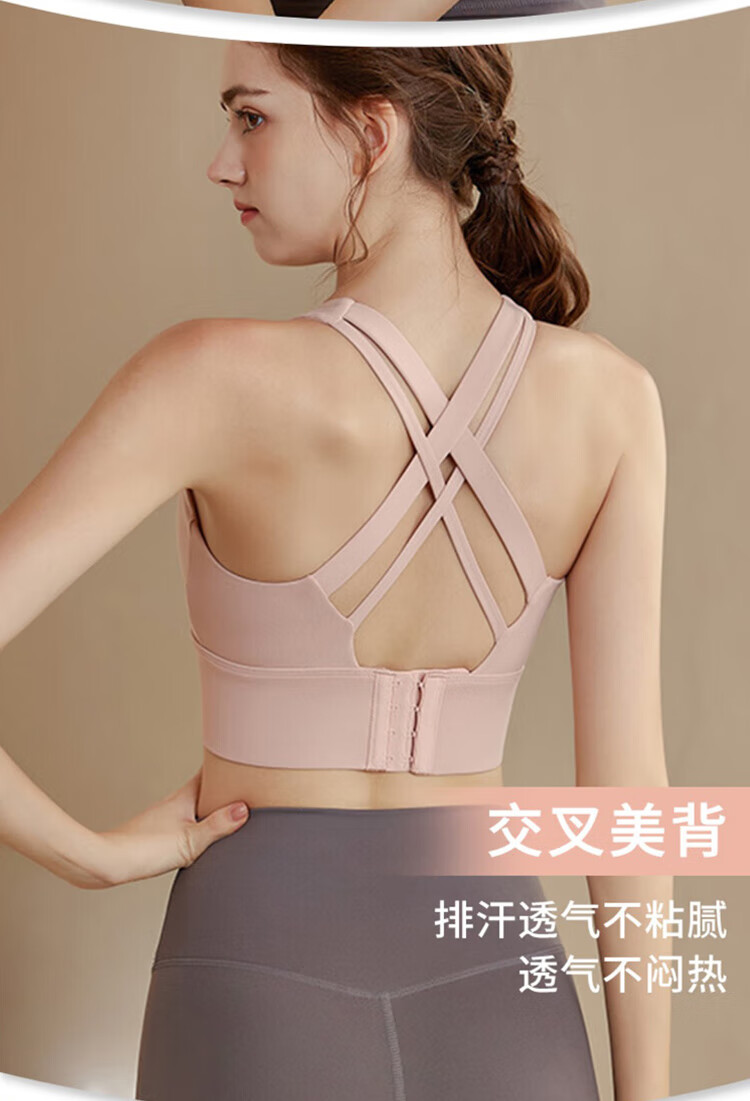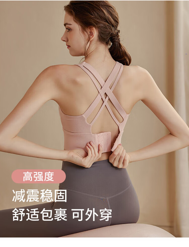 Nanmuxiong sports bra, yoga bra, women's fitness clothing, beautiful back, high-strength shock-proof gathered running skipping rope Pilates vest, pink to beige, M size, 90-110Jin Jin is equal to 0.5 kg