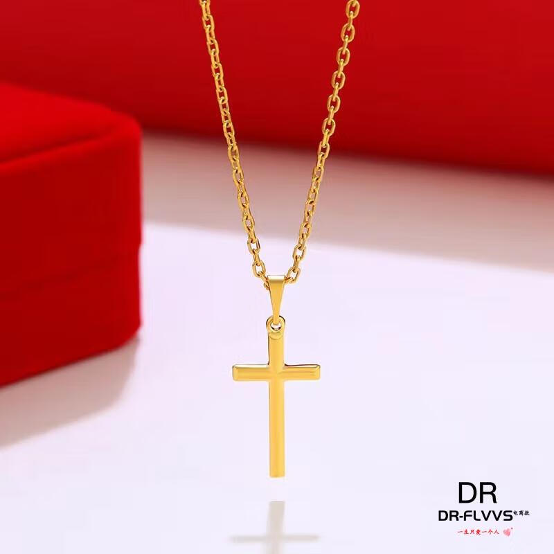 Fat Donglai's same style cross pendant is gold-plated, Nine Years Good Store, Golden Necklace Pendant for Women, Simple Cross Pendant + Necklace + Exquisite Gift Box