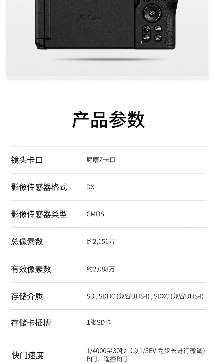 Nikon Z30/Z50/Z50 II second generation mirrorless camera home selfie vlog travel mirrorless camera half-frame Z30 16-50 set official standard
