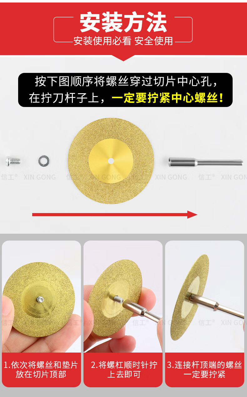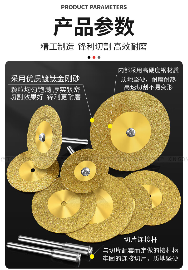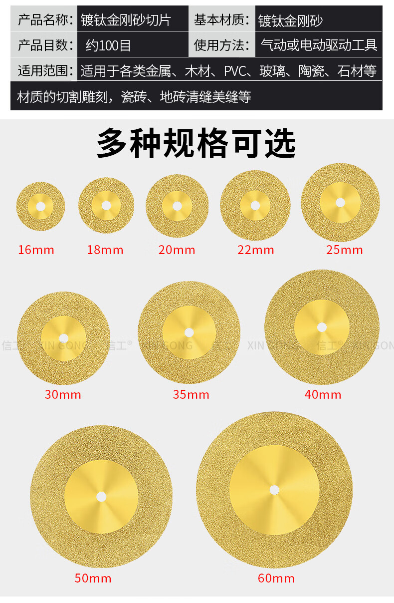 XinGong titanium-plated diamond small slice tile glass ceramic jade cutting piece beauty seam tool special seam clearing polishing piece titanium-plated 60mm 2 pieces + 1 rod