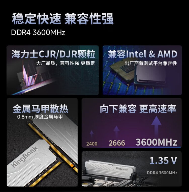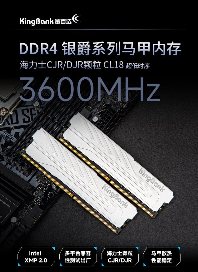 KINGBANK Yinjue 3600 8gx2 memory stick KINGBANK Yinjue ddr4 3200 memory stick 2666 Hynix memory stick 16g vest strip 32g Star Blade Black 3600 Yinjue 32G (16Gx2) 3200 C16
