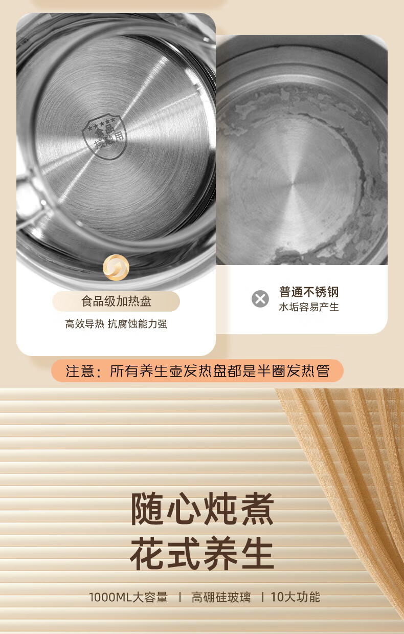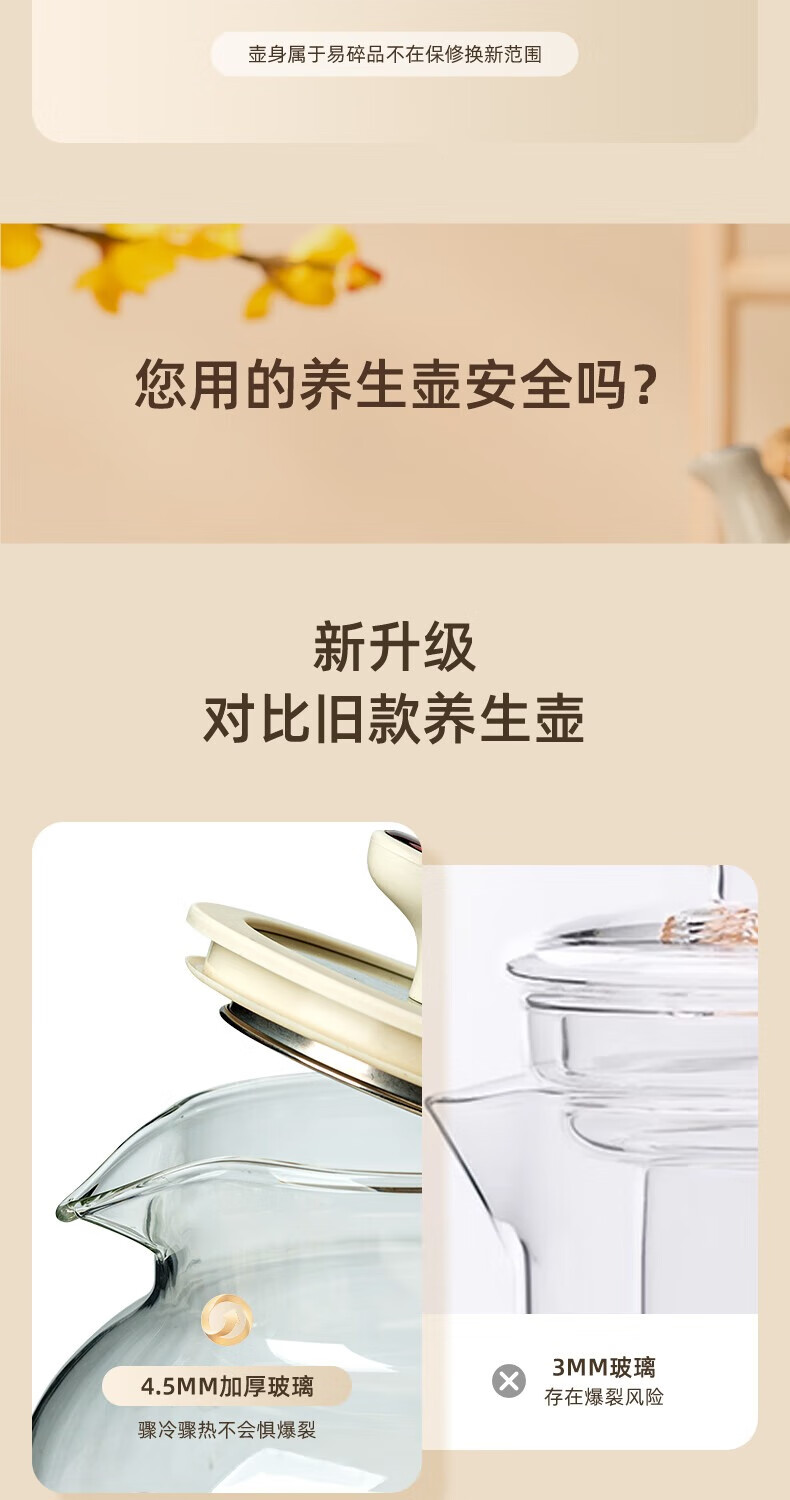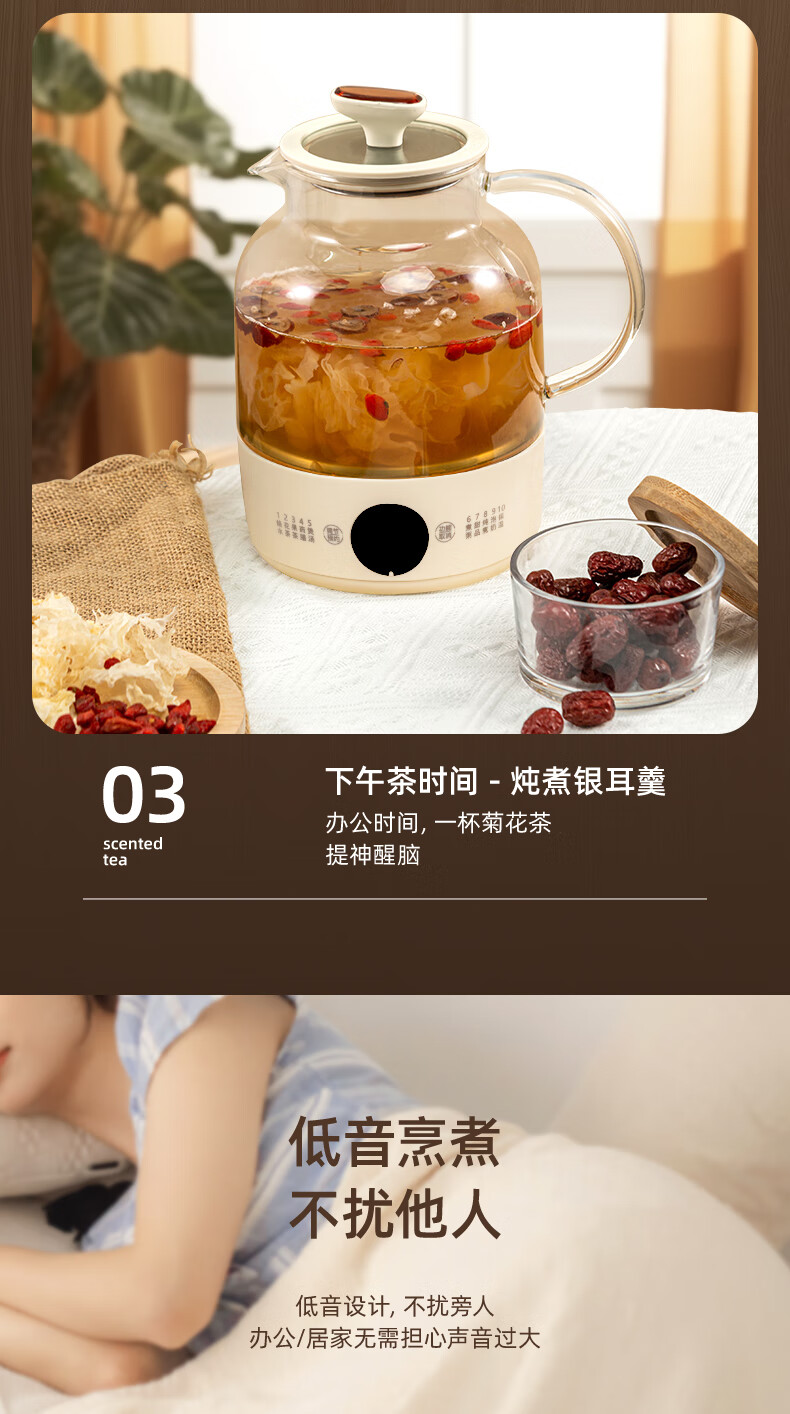 Health kettle, kettle, hot water kettle, thermostatic kettle, teapot, teapot, one-piece glass, fully automatic, small home, multifunctional office, milky white 1L, get 304 stainless steel filter for free for first 10 orders per day
