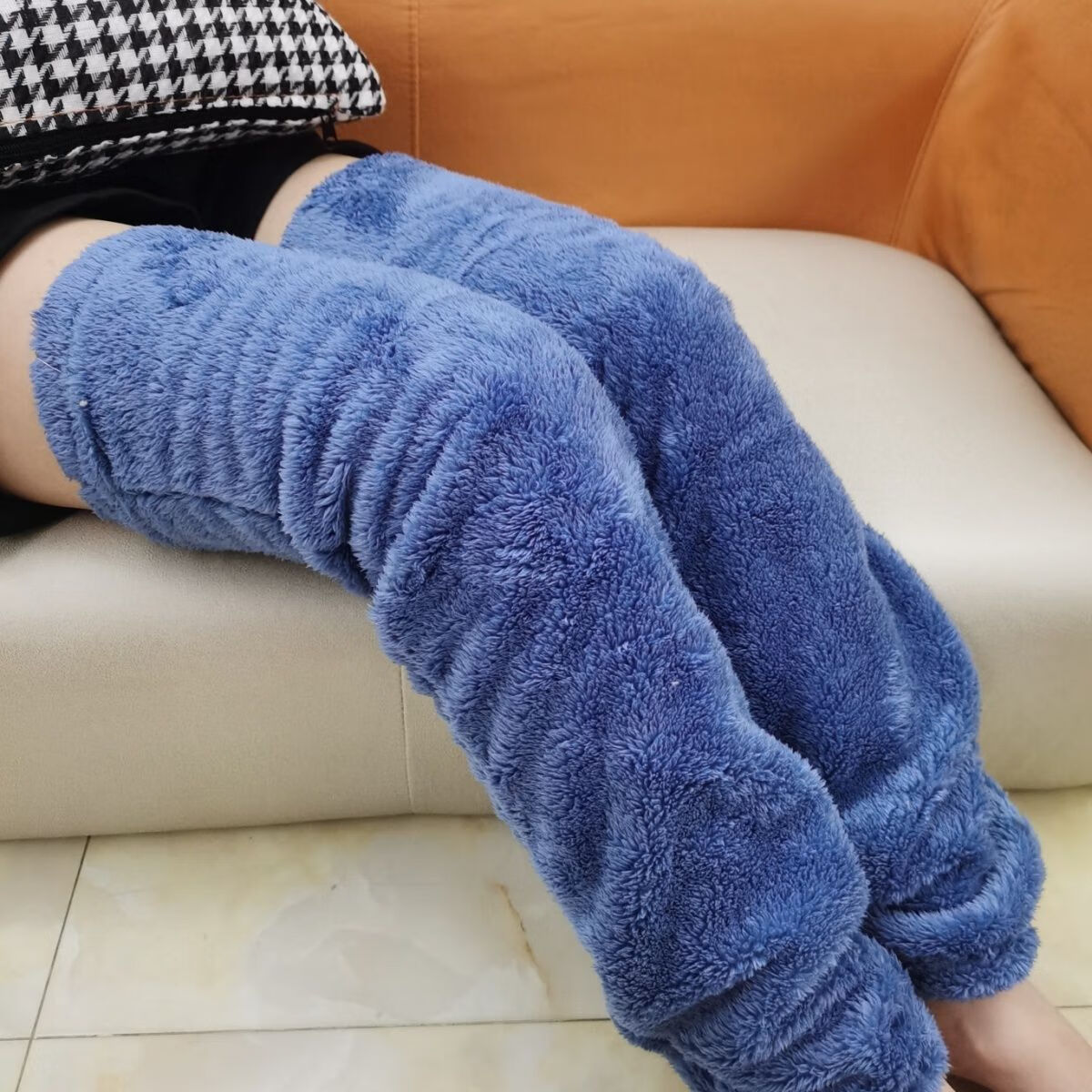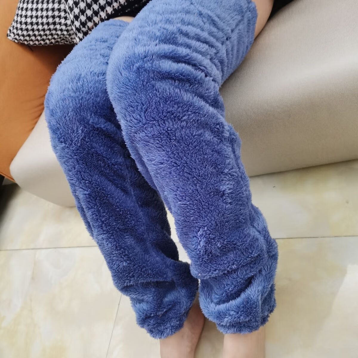 LangSha air-conditioned warm foot leggings for old cold legs, double-sided velvet knee pads, coral velvet warm-keeping artifact, matching companion, Korean version, lake blue knee pads without socks