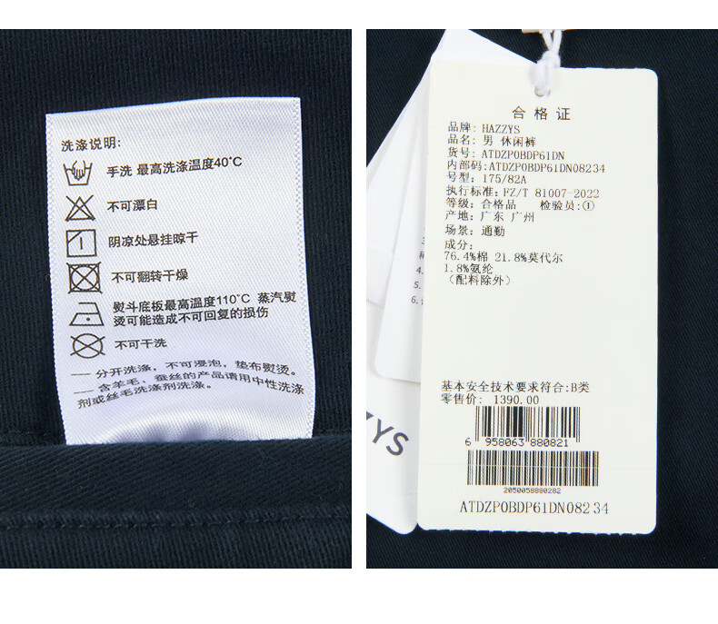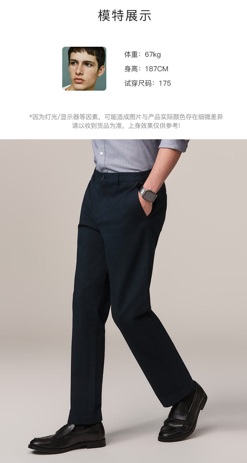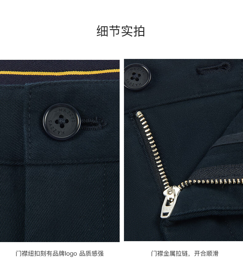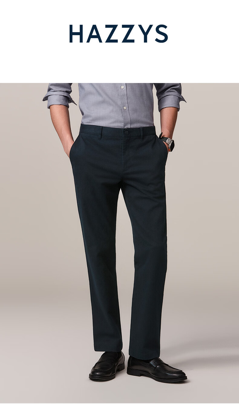 HAZZYS men's autumn and winter twill straight trousers brushed lining warm casual pants for men ATDZP0BDP61 dark navy DN 34 (175/82A)