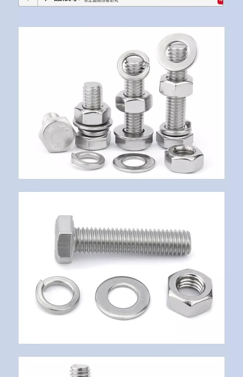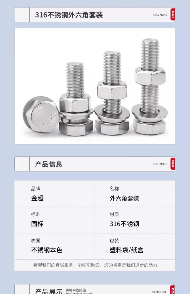 Jinchao A4-80 Jinchao 316L stainless steel external hexagonal screws and nuts set complete combination bolts and nuts M6-M20 M20*100 (1 set)