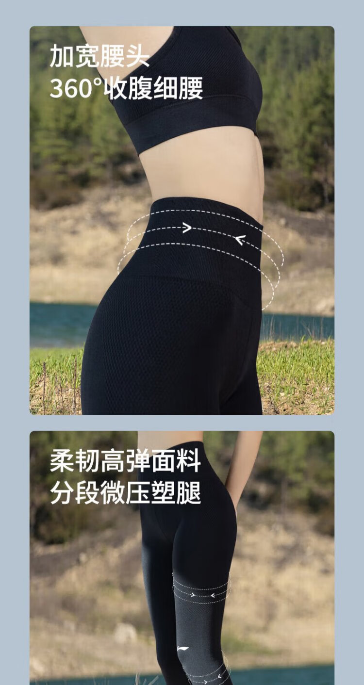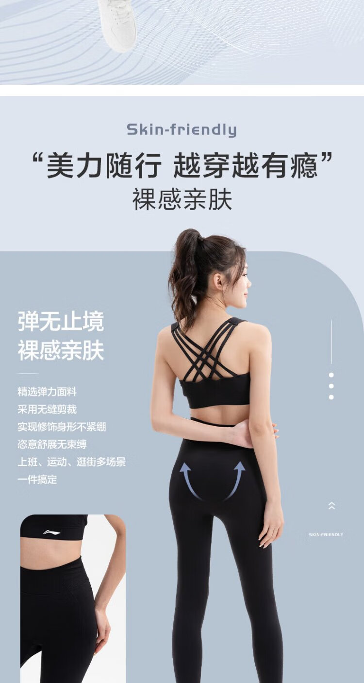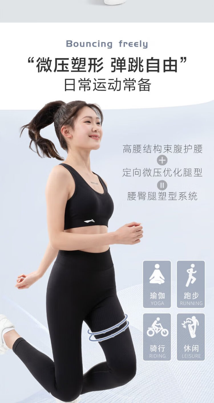 Li-Ning Yoga Pants Fitness Wear Women's Sports Shark Pants High Waist Hip Lifting Tight Pilates Training L (Recommended 115-130 Jin Jin equals 0.5 kg)