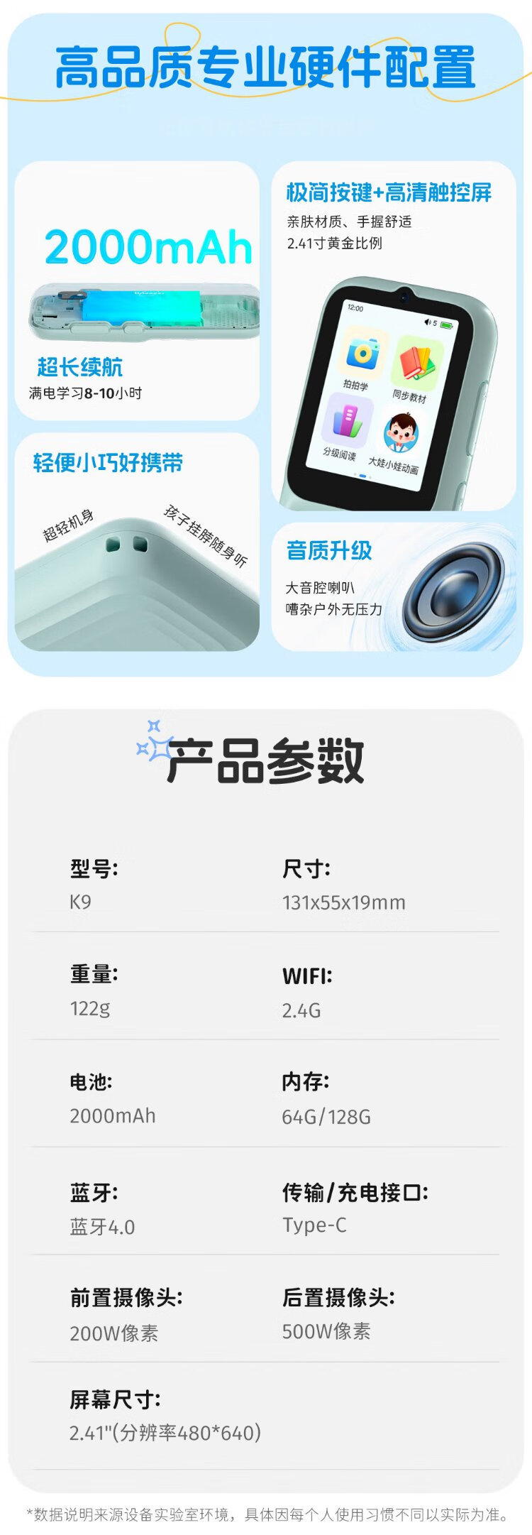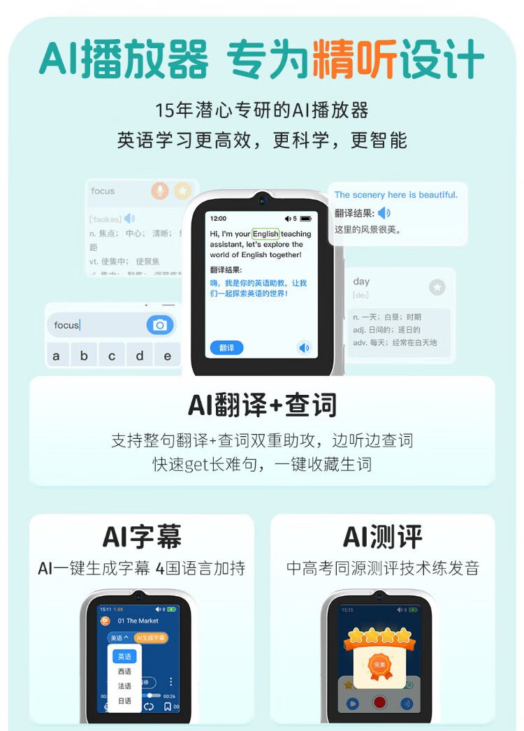 Listeneer repeater K9 IELTS KET teaching material synchronization in-class walkman high school entrance examination college entrance examination ear sharpening hearing aid AI intelligent English listening learning machine K9 Tiffany Blue 64G