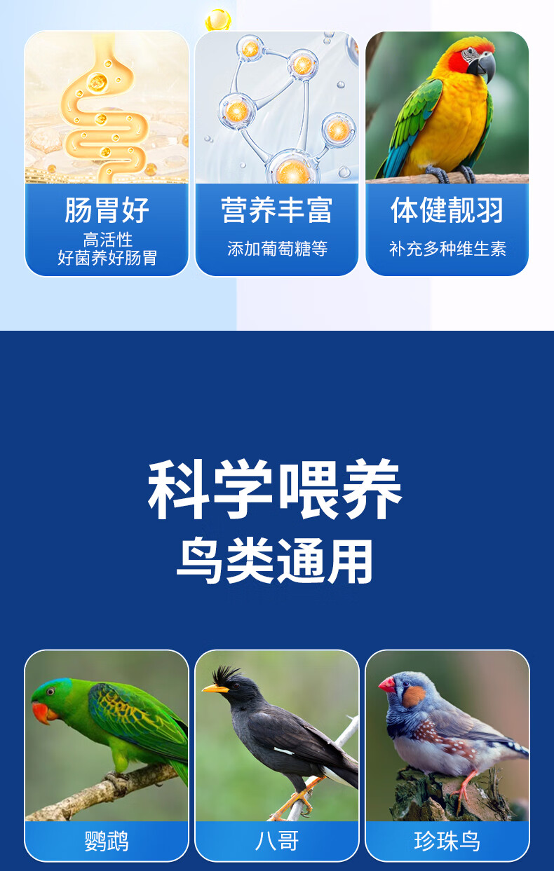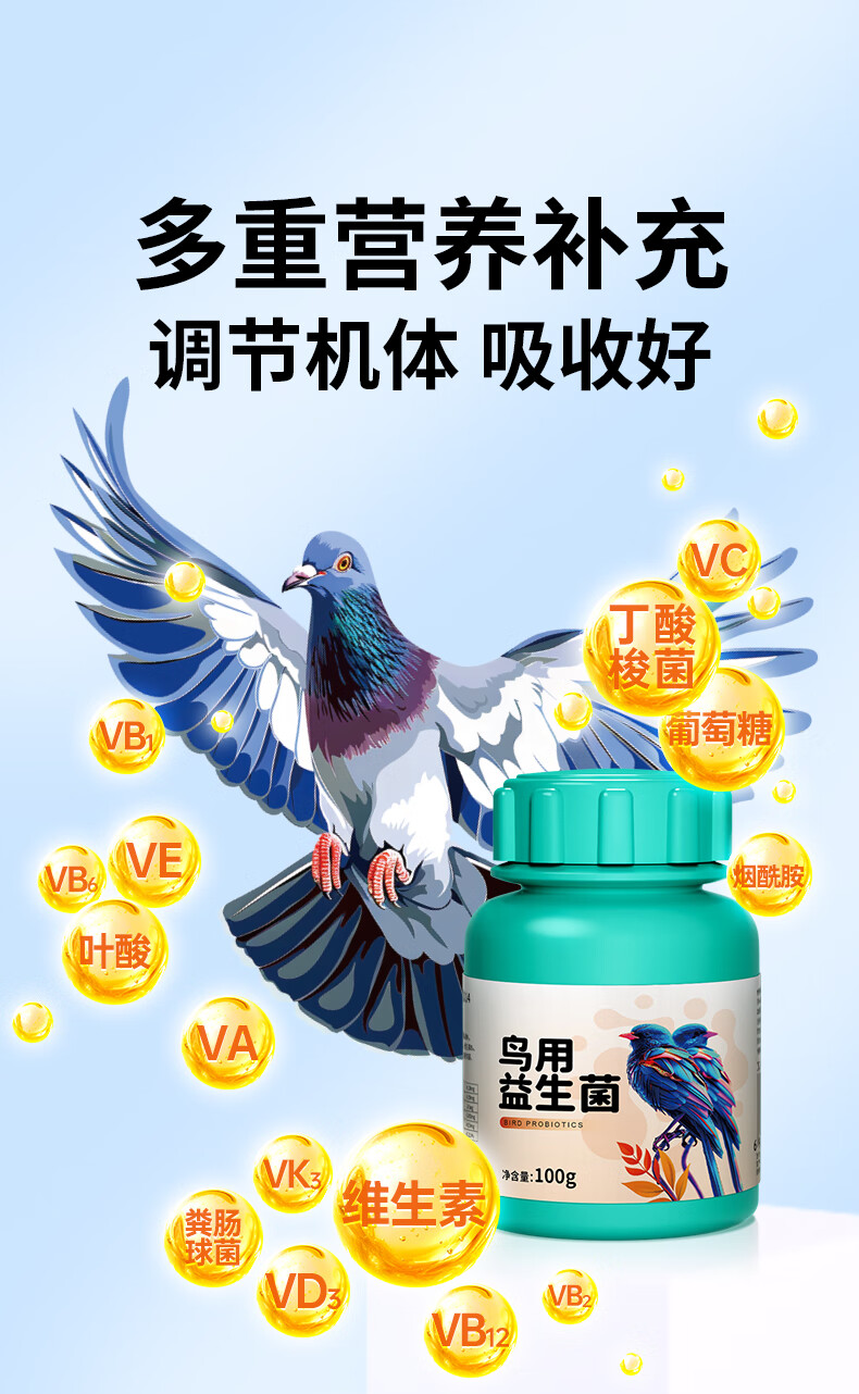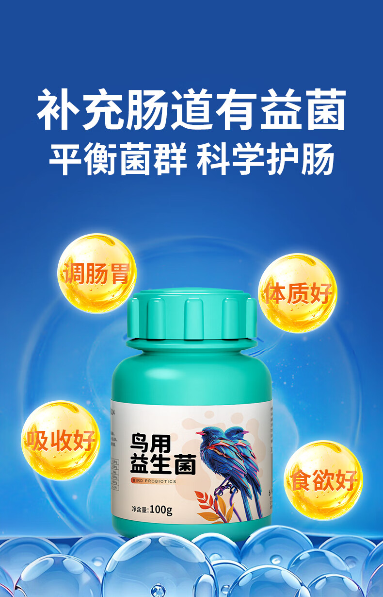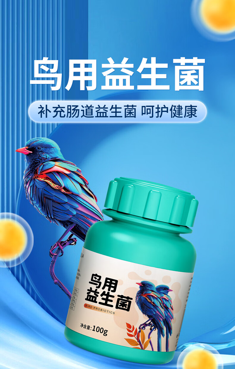Probiotic live bacteria powder for birds, parrot, cockatiel, diarrhea and diarrhea, special electrolyte multi-dimensional glucose powder for birds, bird feed and additives, probiotics for birds 100g