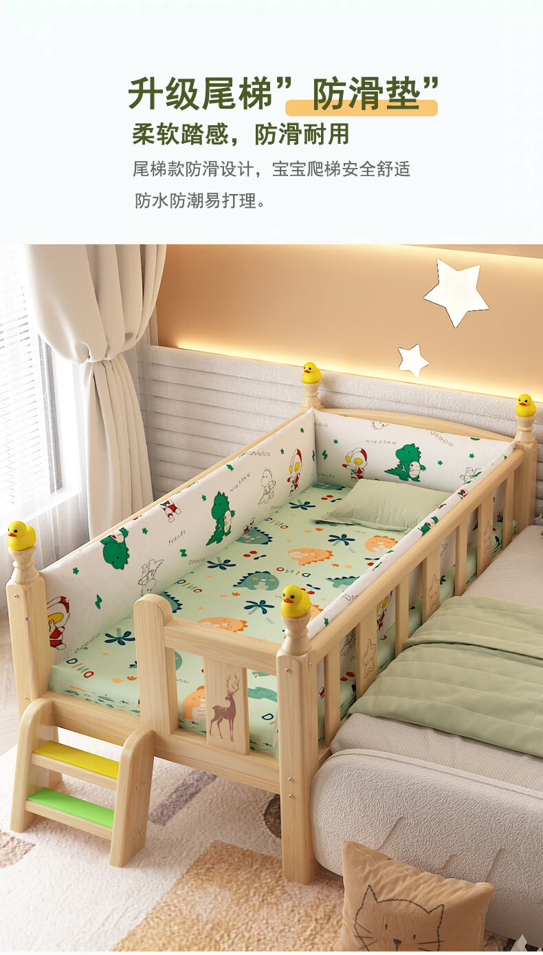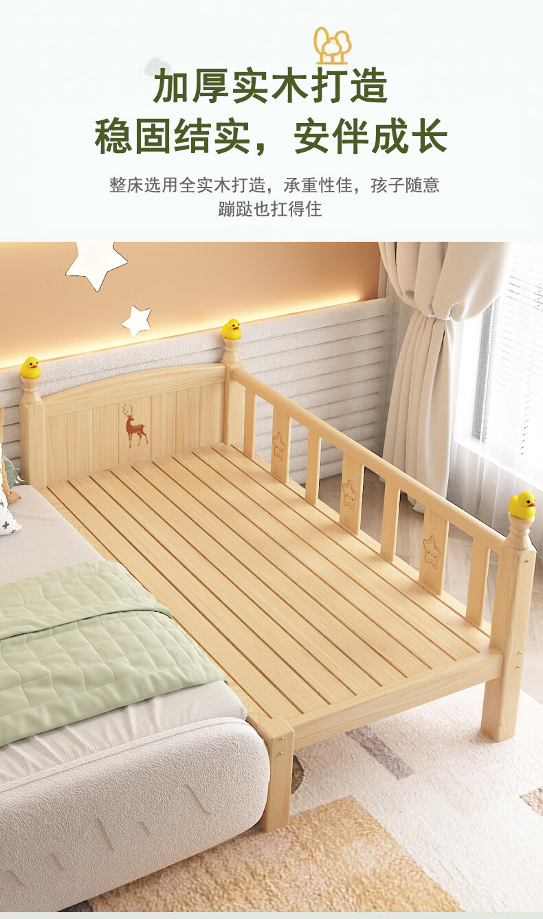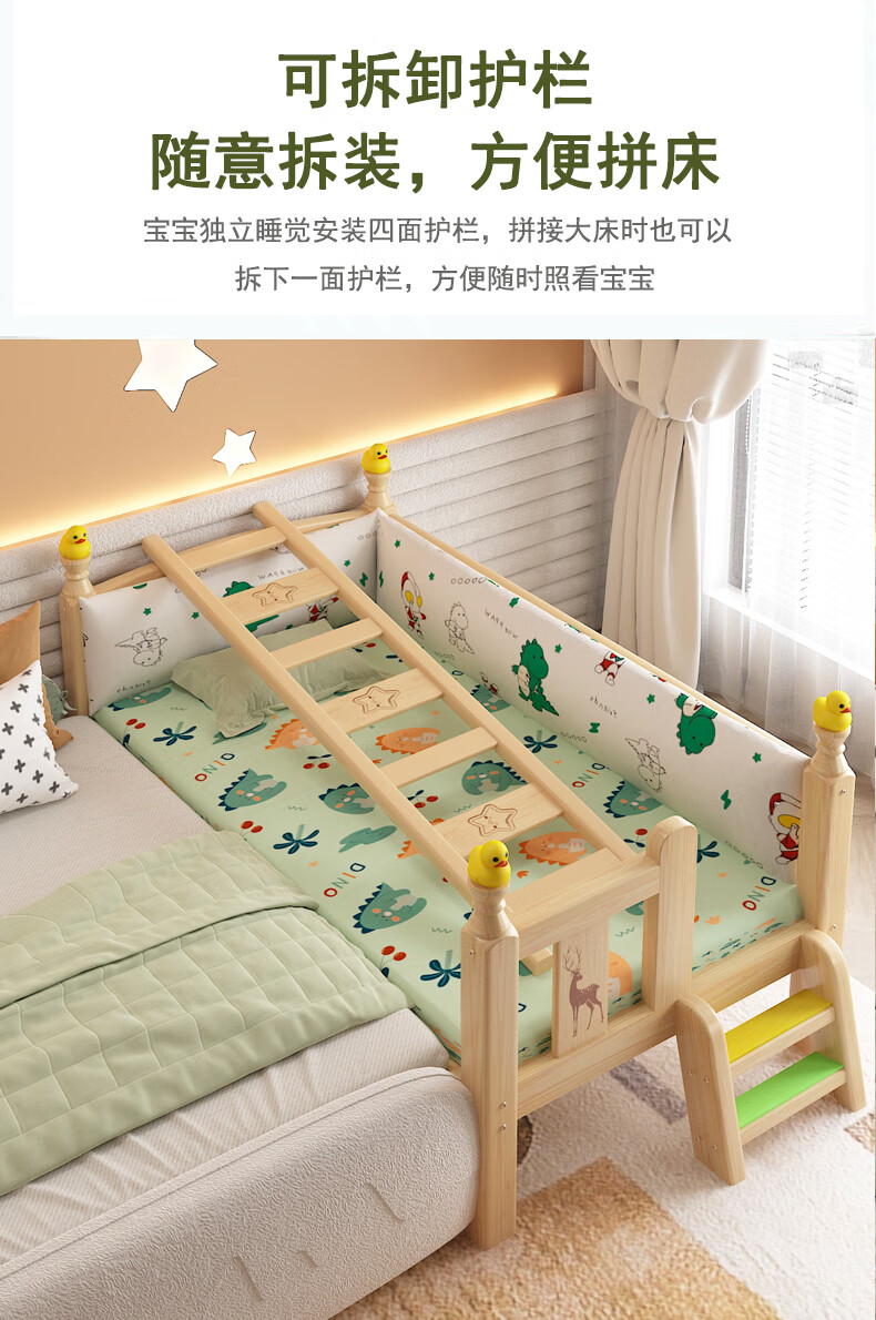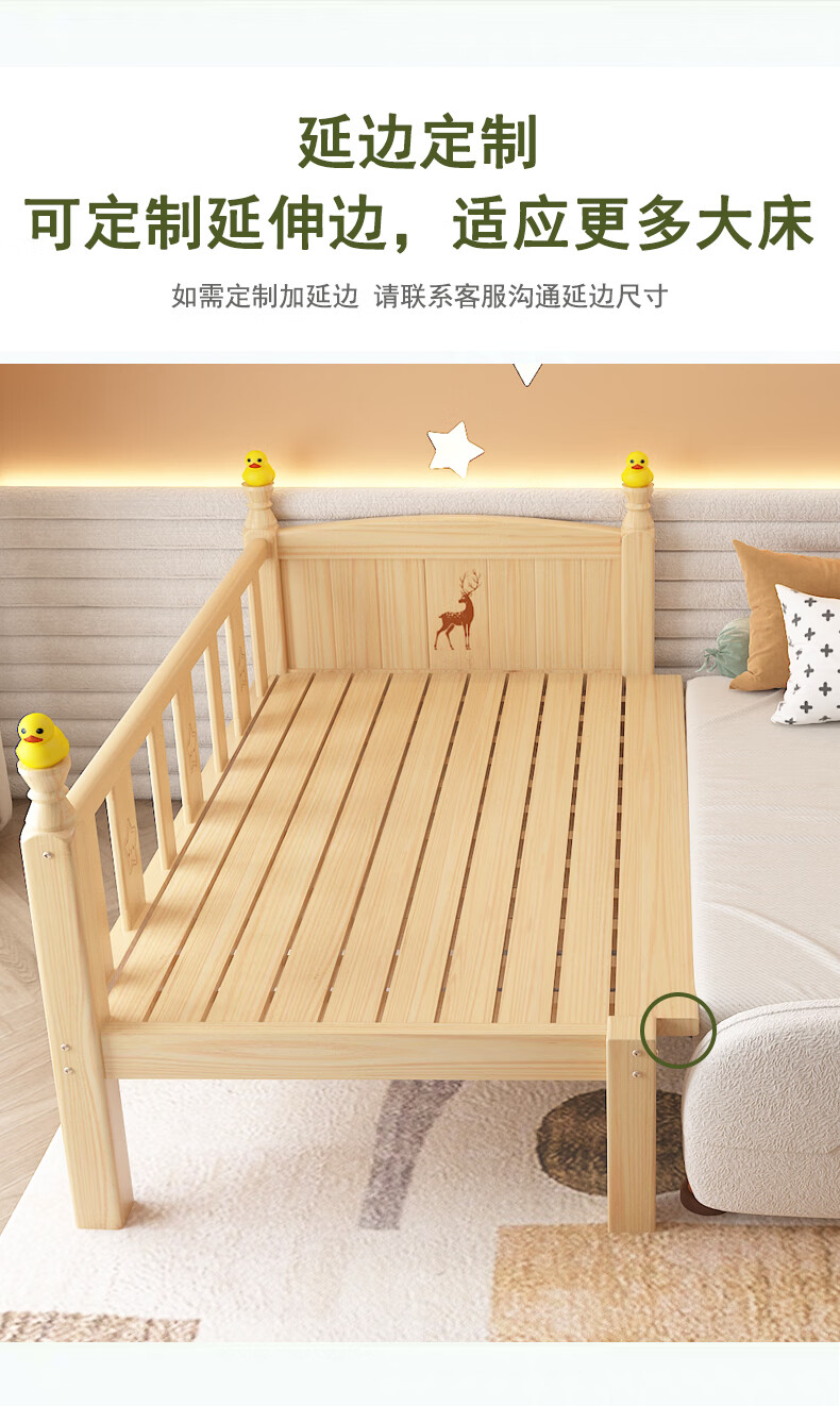 Fantasy solid wood bed with guardrail crib baby boy girl princess bed single bedside bed widened spliced large bed basic two-sided guardrail (no mattress) 150x50cm x frame structure x assembly