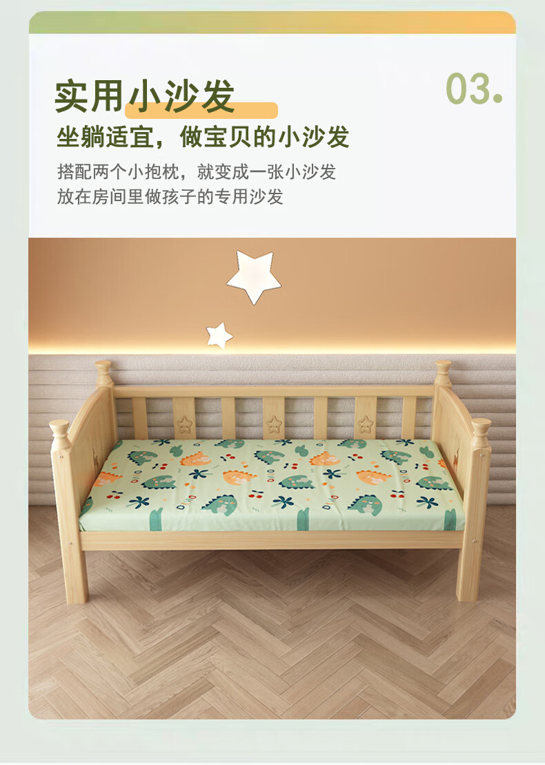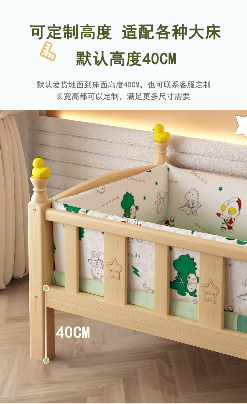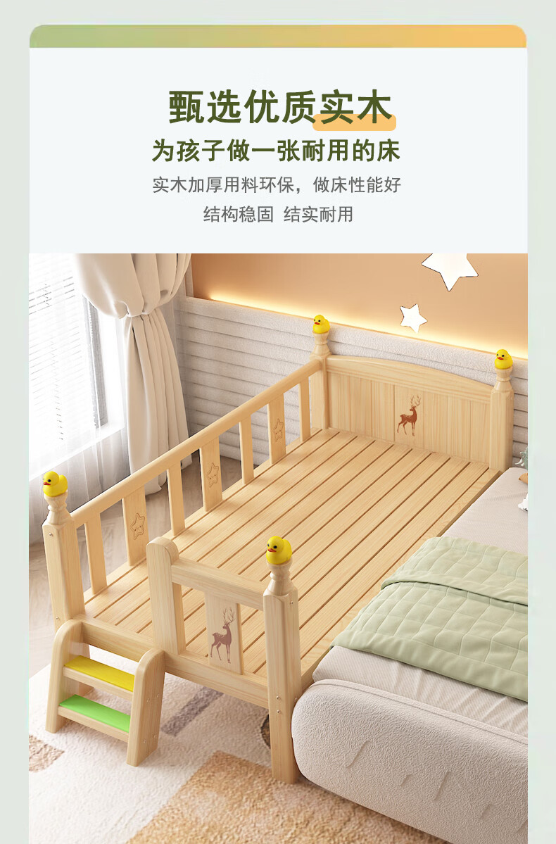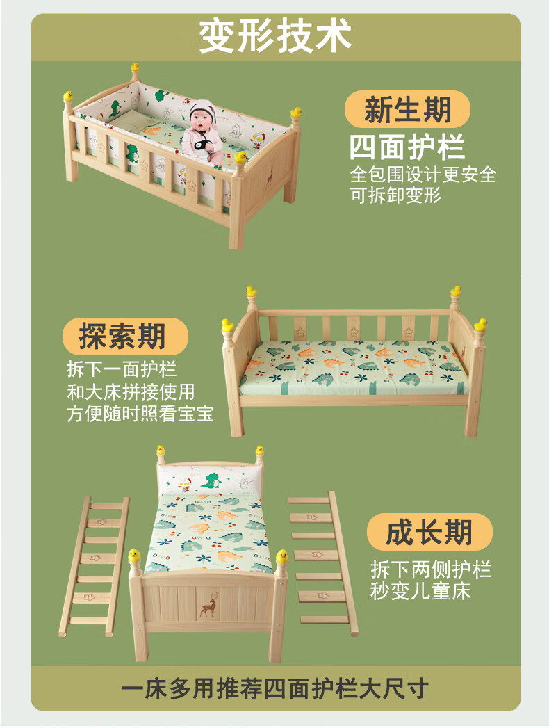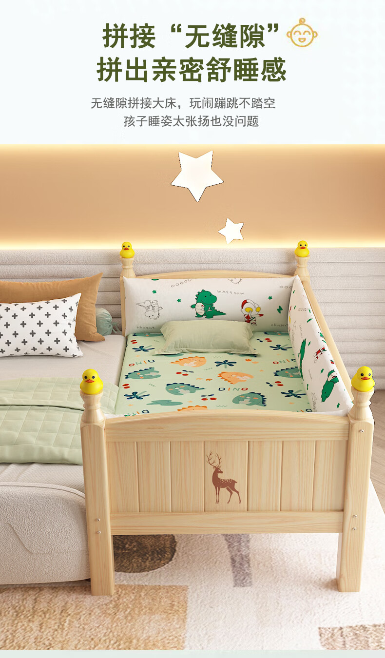 Fantasy solid wood bed with guardrail crib baby boy girl princess bed single bedside bed widened spliced large bed basic two-sided guardrail (no mattress) 150x50cm x frame structure x assembly