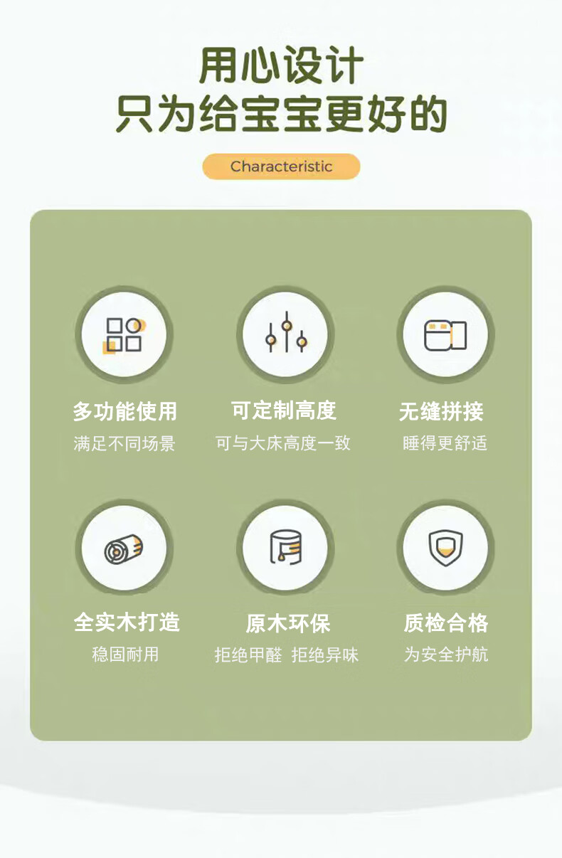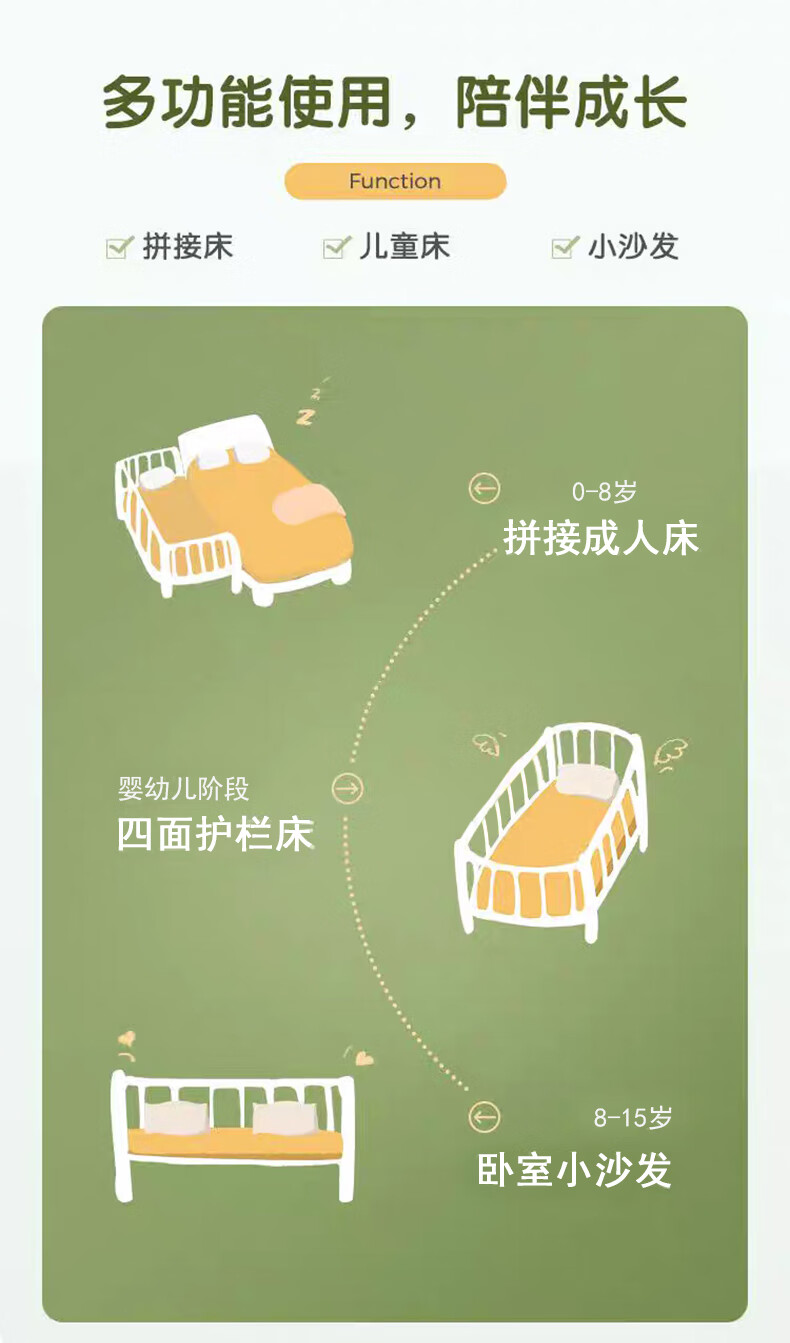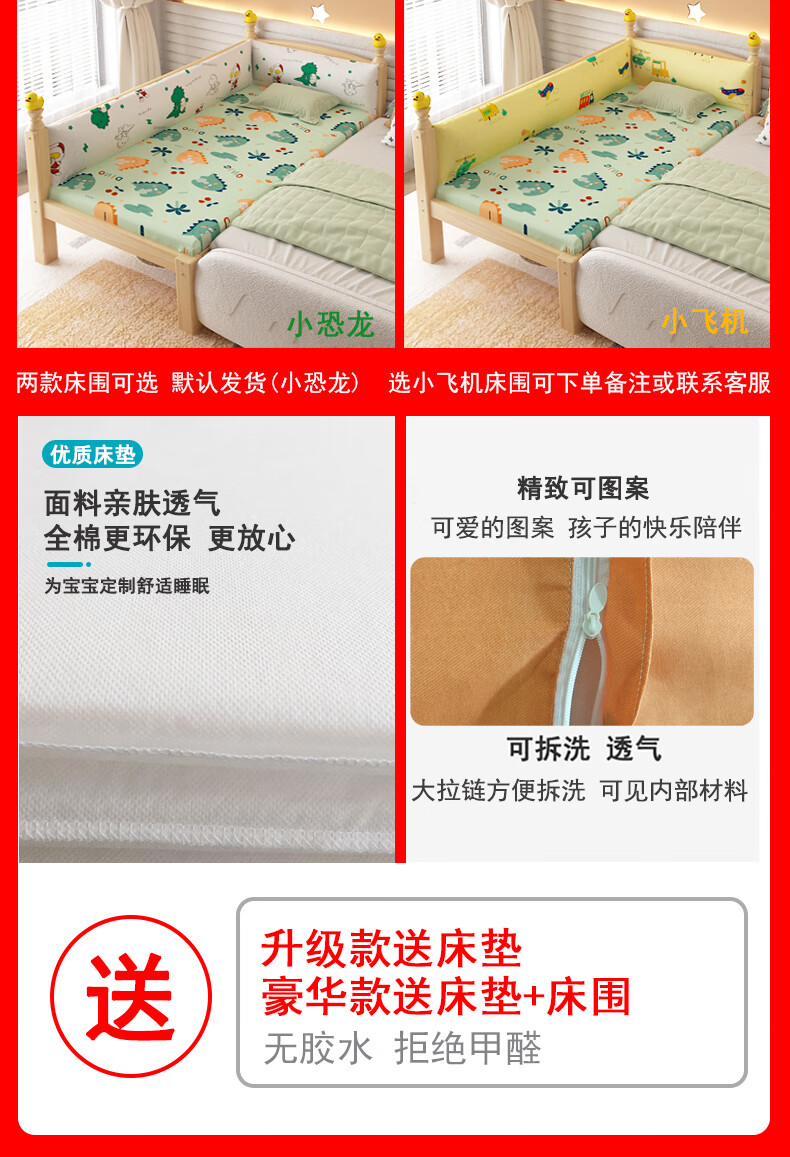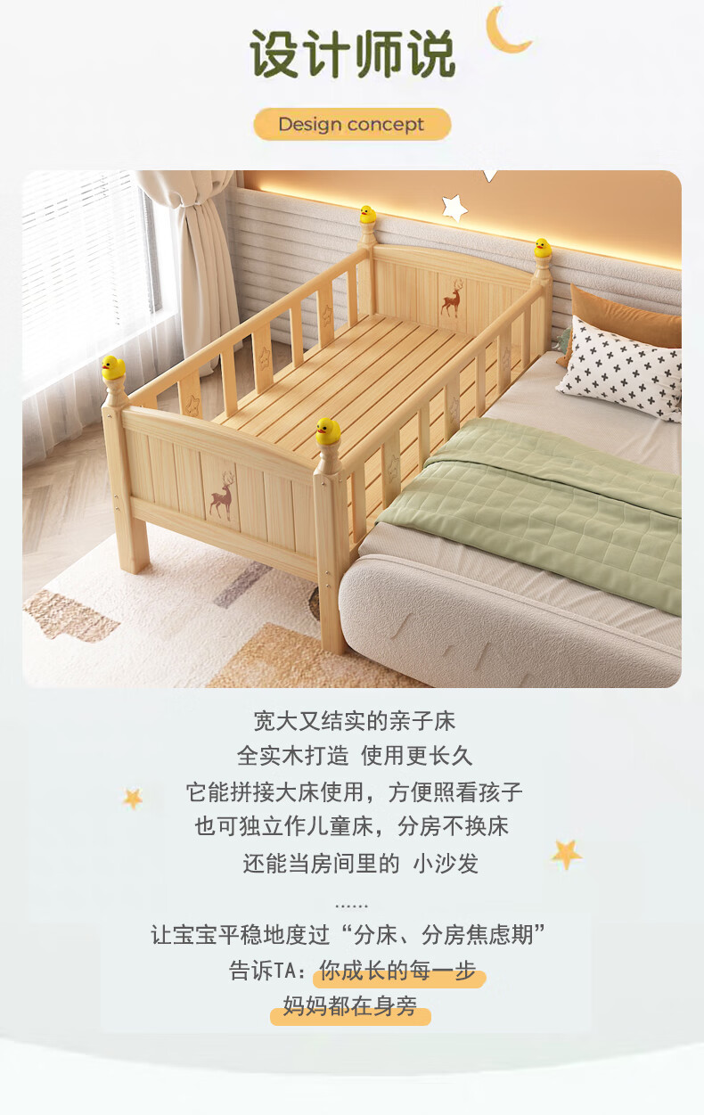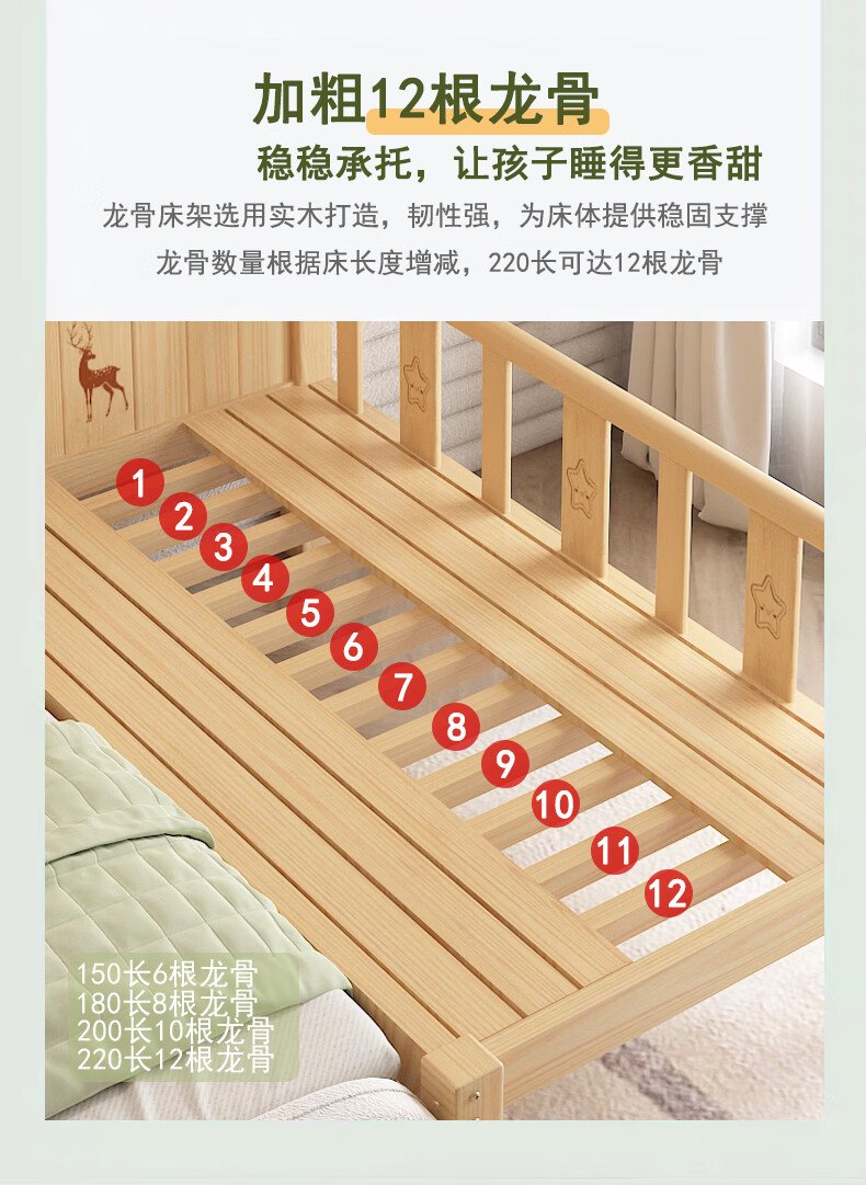 Fantasy solid wood bed with guardrail crib baby boy girl princess bed single bedside bed widened spliced large bed basic two-sided guardrail (no mattress) 150x50cm x frame structure x assembly