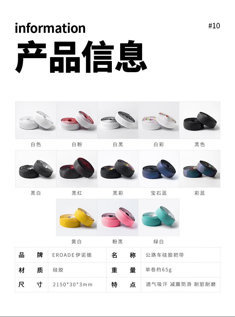 EROADE German road bicycle handlebar straps, handlebar wrapping straps, non-slip and wear-resistant handlebar straps, sweat-absorbent and breathable riding equipment, silicone style - white color