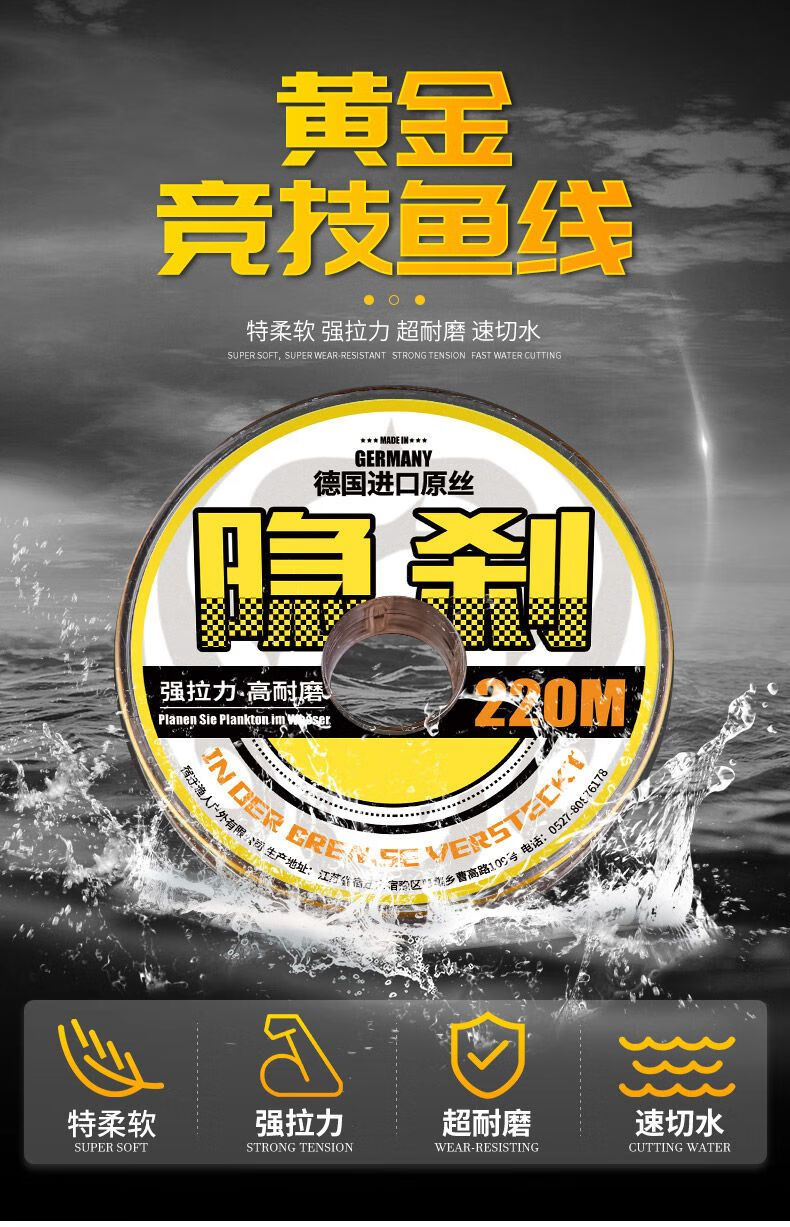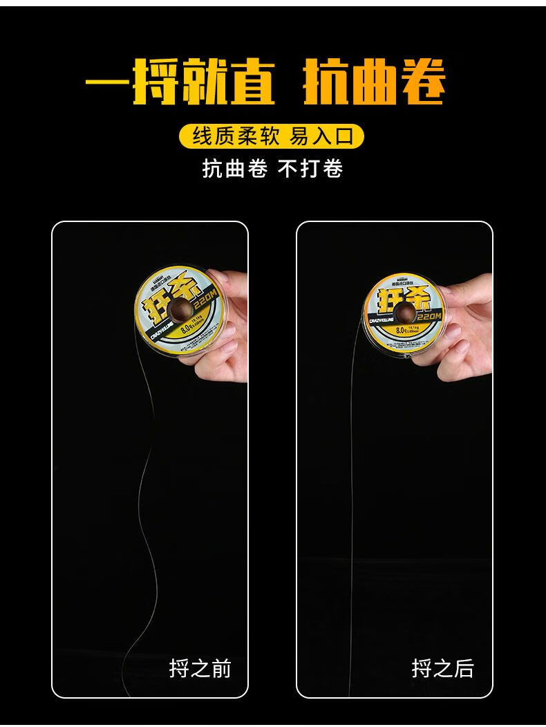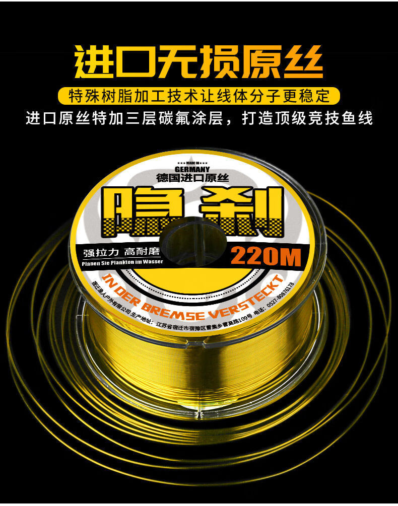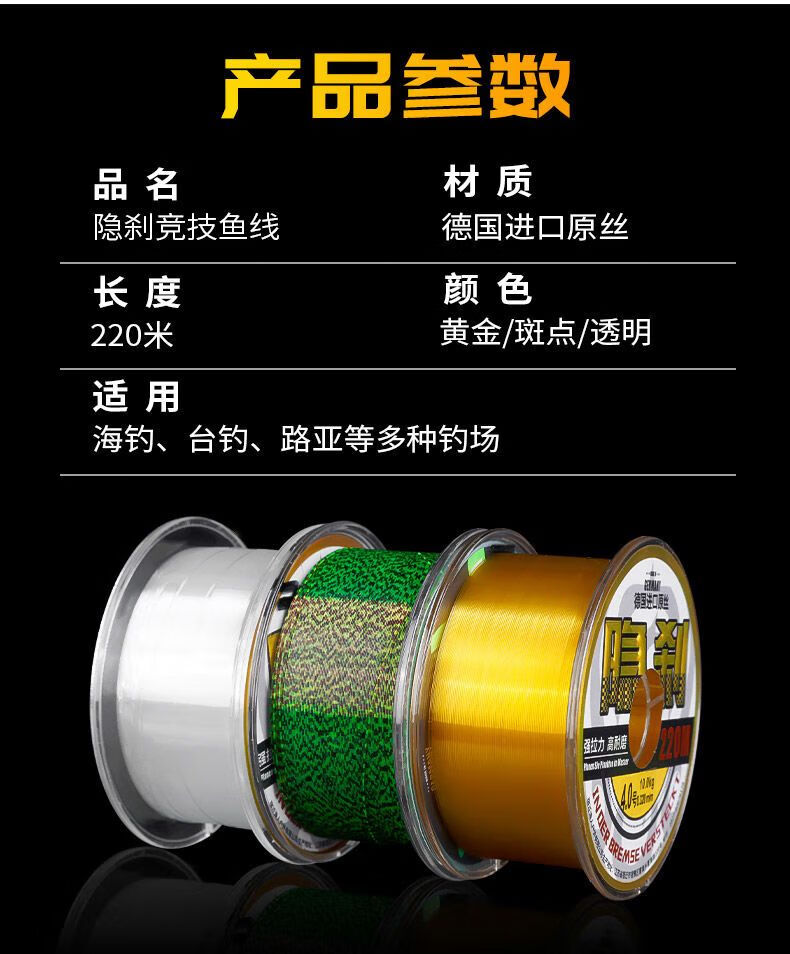 BEITU Germany imported ultra-soft fishing line main line sub-line super tensile lure sea rod nylon line without winding 220 meters gold line recommended by the store manager Hidden Brake No. 1.2