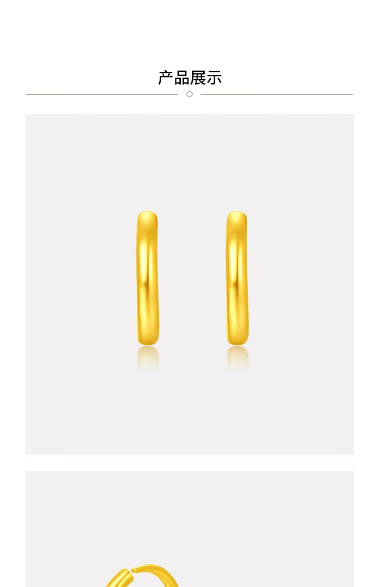 Chow Tai Fook simple gold earrings women's pure gold earrings birthday gift (labor cost 120) EOF153 pure gold about 1.30g