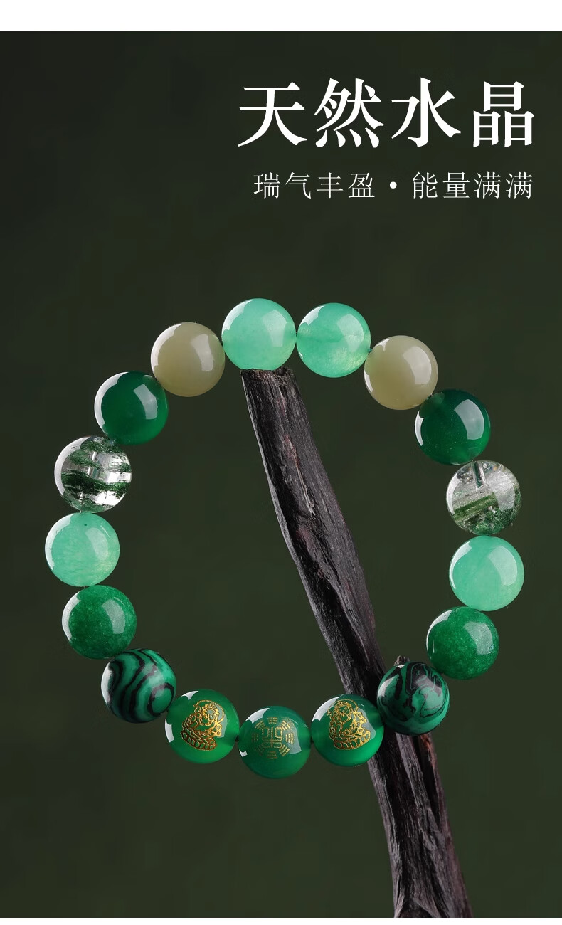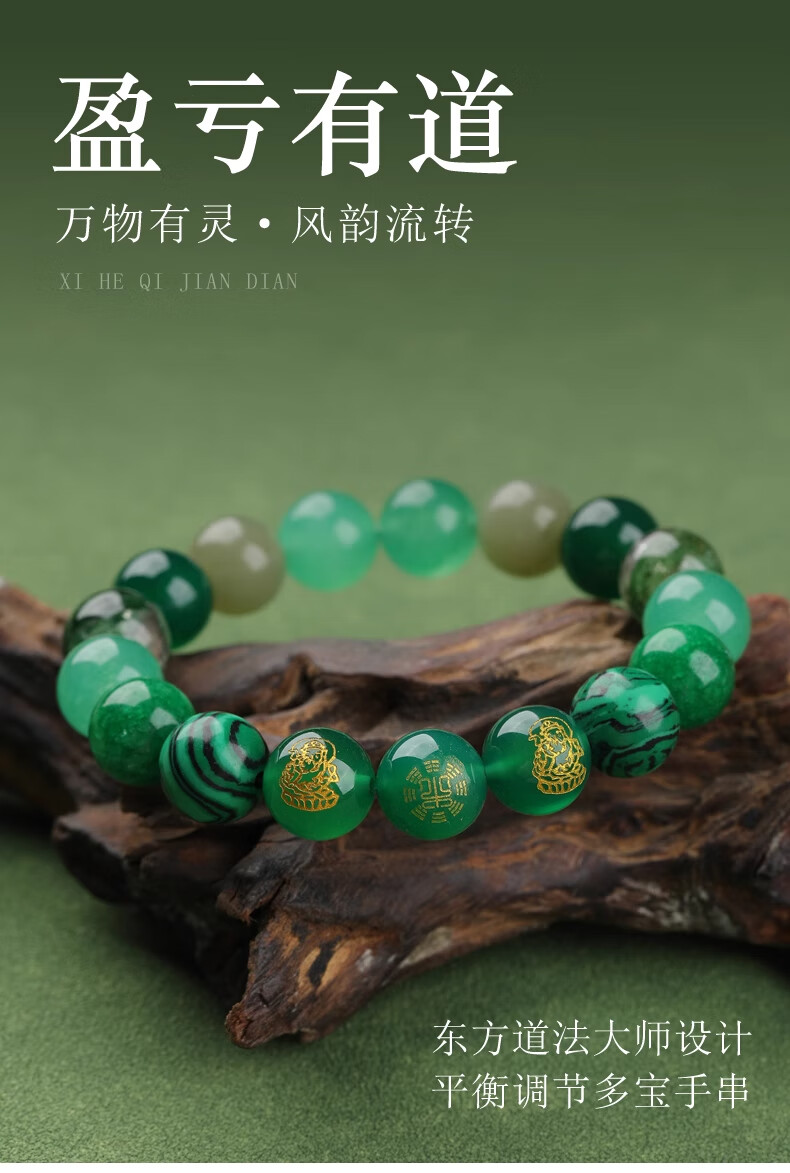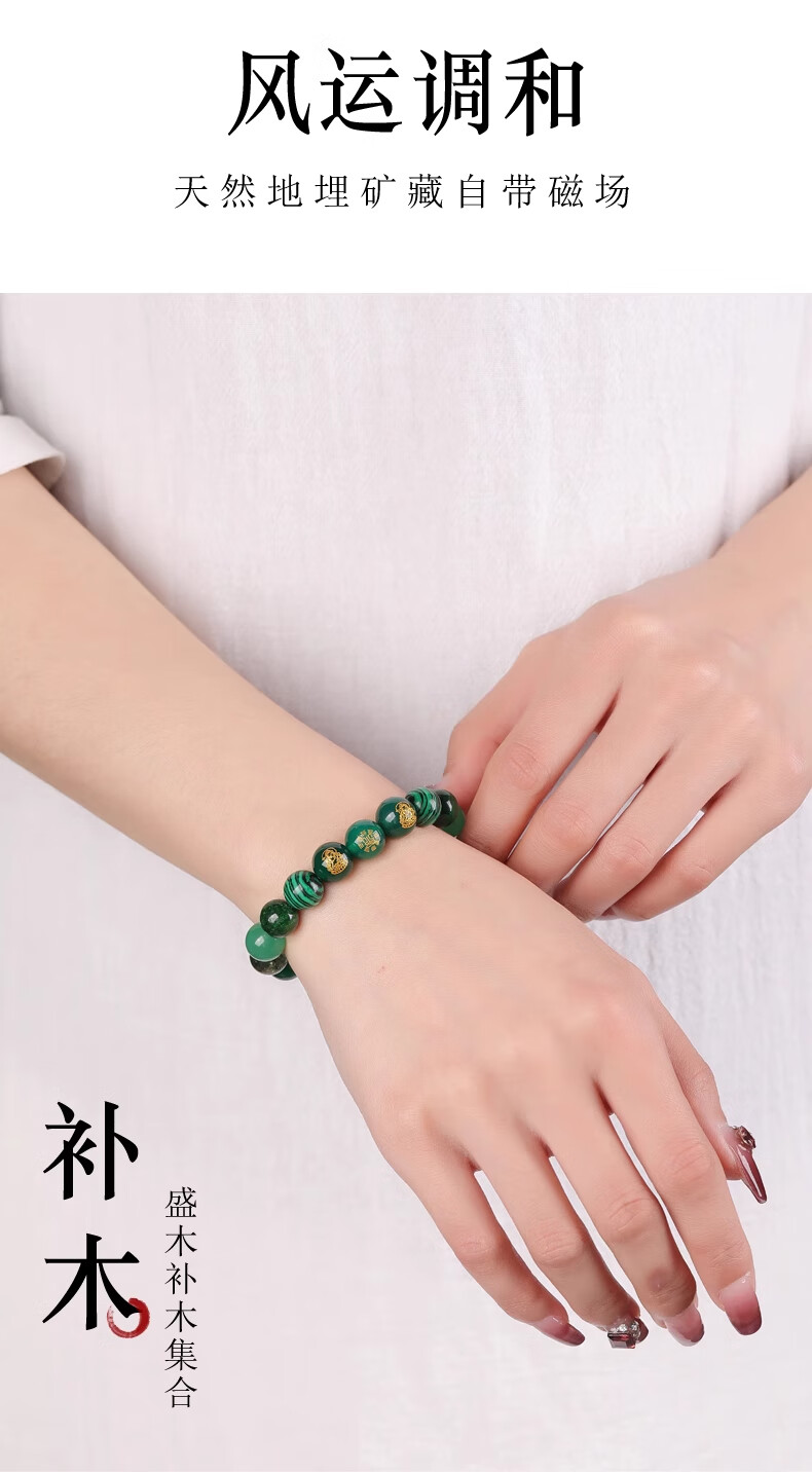 Bao Xinfanrui BOSFRU five elements belong to wood, missing wood, mending wood, happy wood bracelet for men and women, green crystal bracelet amulet, multi-treasure balance gift, God of Wealth multi-treasure bracelet, balance beam, bead diameter 10mm