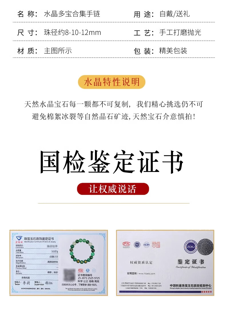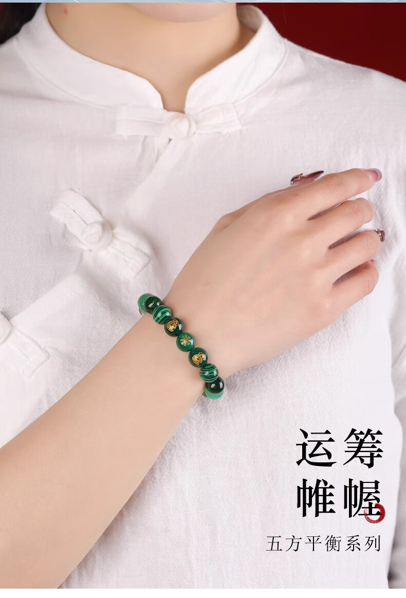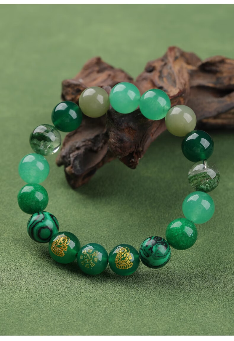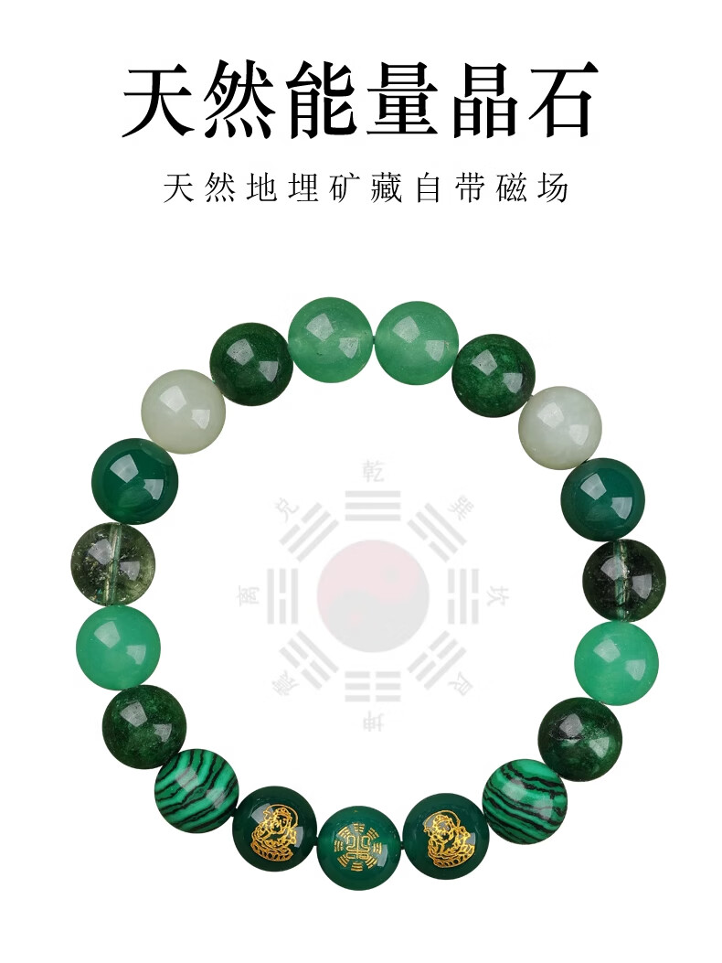 Bao Xinfanrui BOSFRU five elements belong to wood, missing wood, mending wood, happy wood bracelet for men and women, green crystal bracelet amulet, multi-treasure balance gift, God of Wealth multi-treasure bracelet, balance beam, bead diameter 10mm