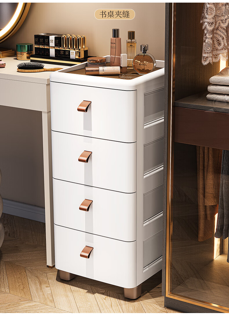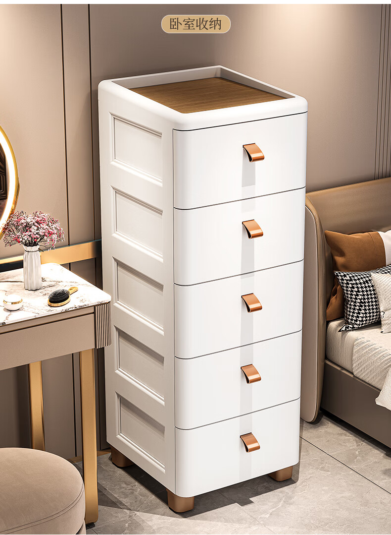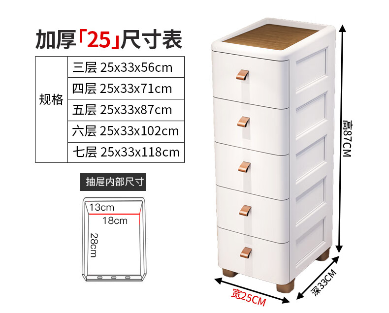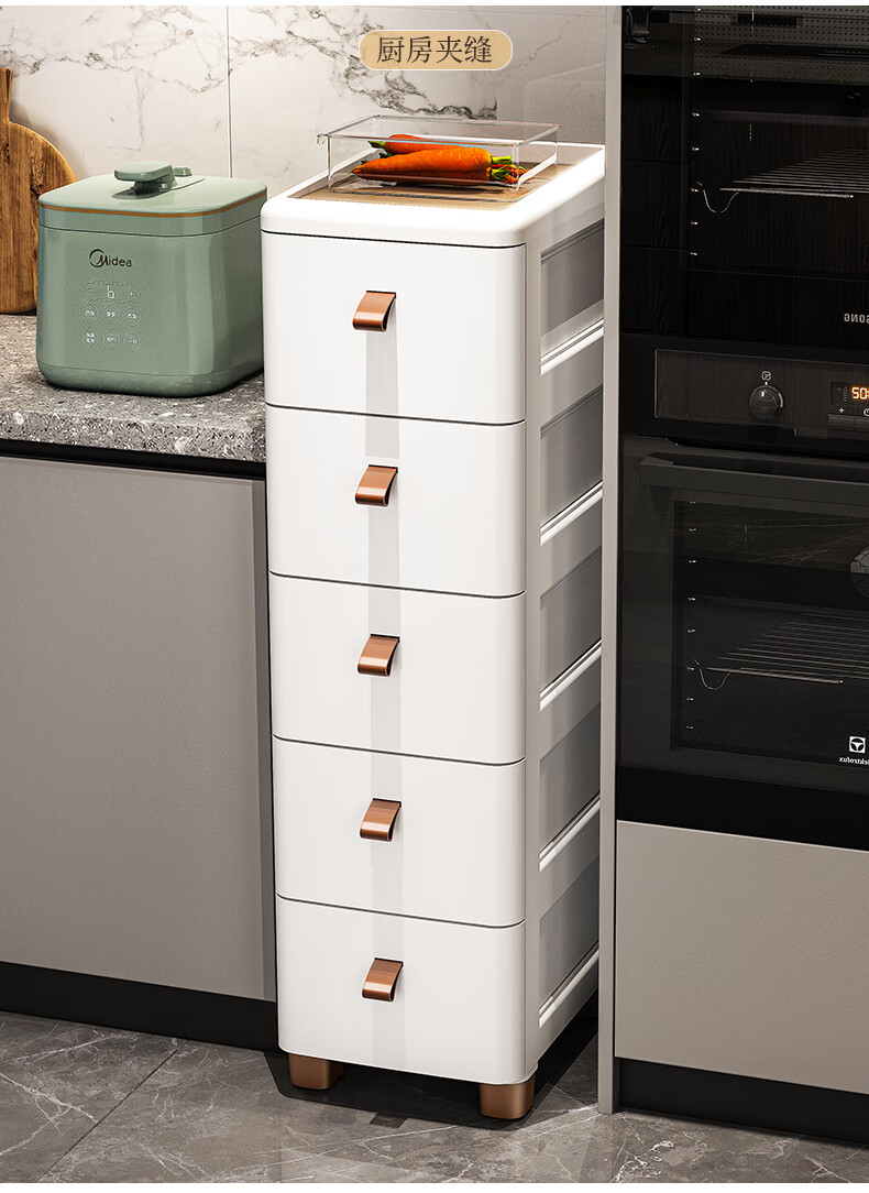 ME Thickened Seam Storage Cabinet Drawer-type Plastic Storage Cabinet Kitchen Multi-Layer Gap Cabinet Bathroom Waterproof Storage Cabinet 25CM Width - Simple White - Wooden Top 3 Layers