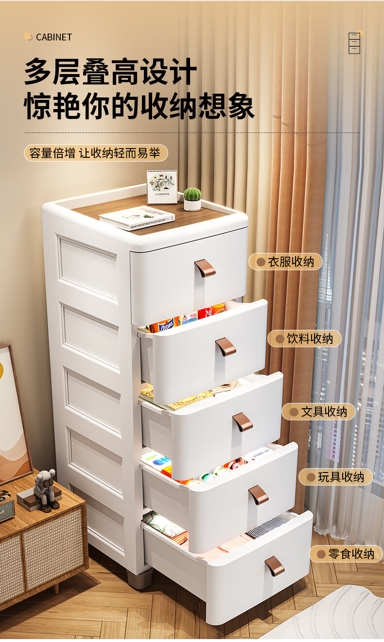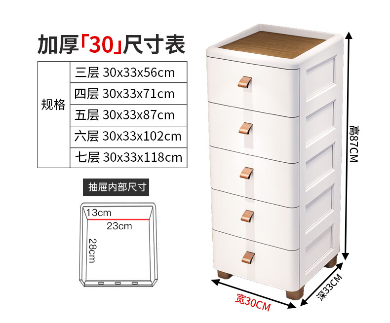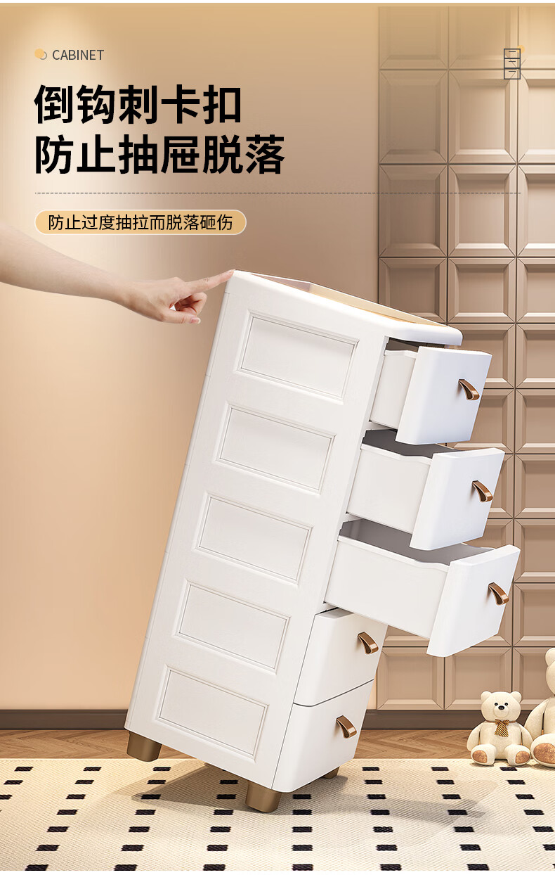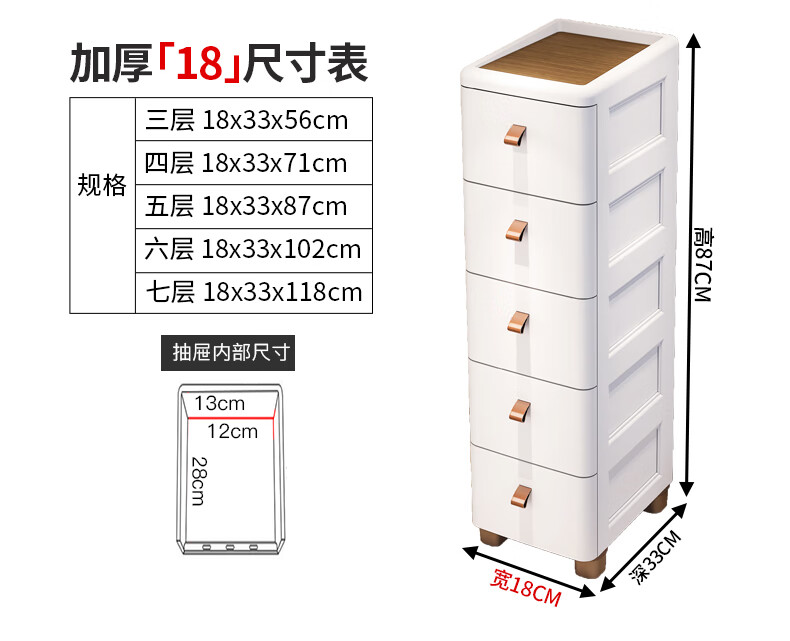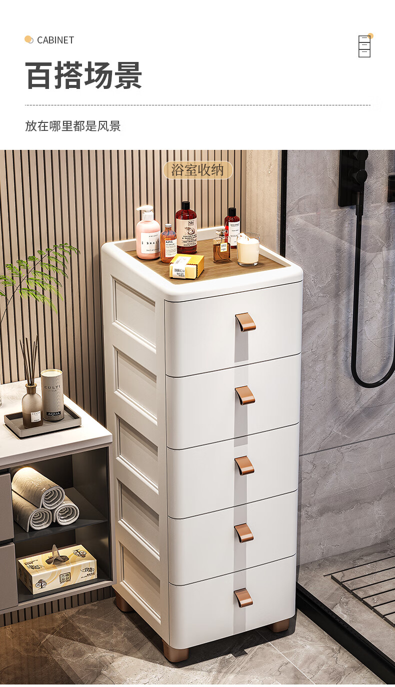 ME Thickened Seam Storage Cabinet Drawer-type Plastic Storage Cabinet Kitchen Multi-Layer Gap Cabinet Bathroom Waterproof Storage Cabinet 25CM Width - Simple White - Wooden Top 3 Layers