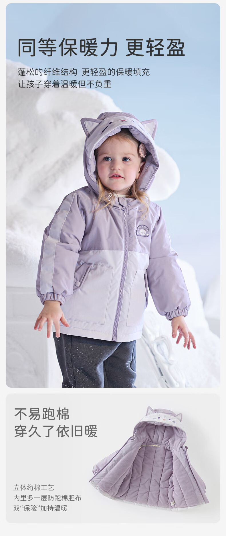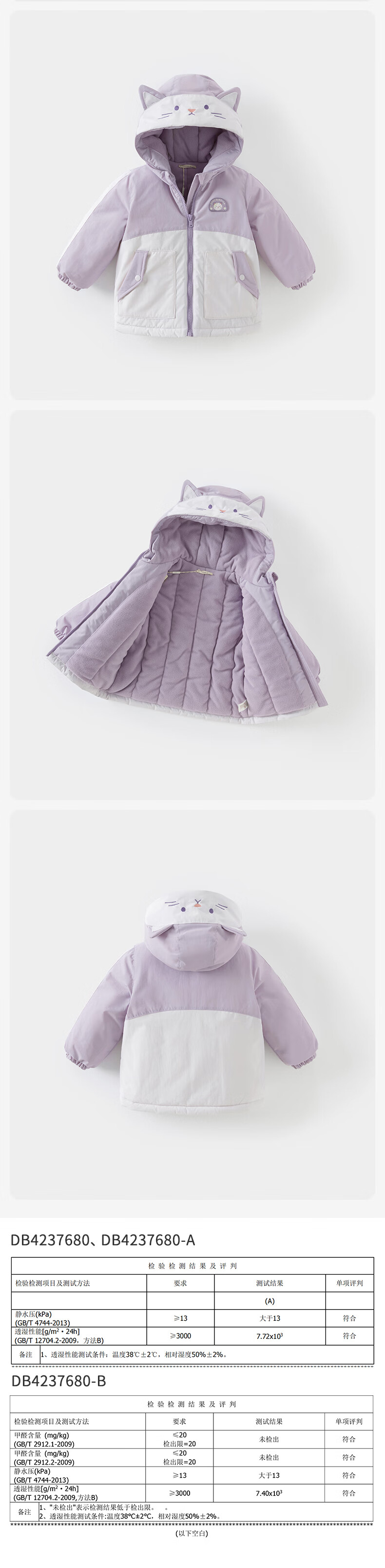 DAVE&BELLA children's clothing waterproof and warm baby cotton-padded jacket for boys and girls, winter cotton-padded jacket, winter quilted jacket, sea fog blue DB4237680-A 110 cm (recommended height 100-110cm)