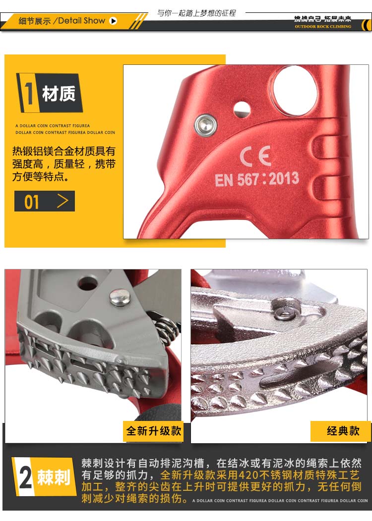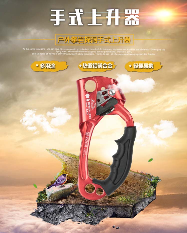 Jiayifeng outdoor hand-controlled mountaineering extension hand ascender rope climber caving anti-slip rock climbing equipment climbing right hand orange
