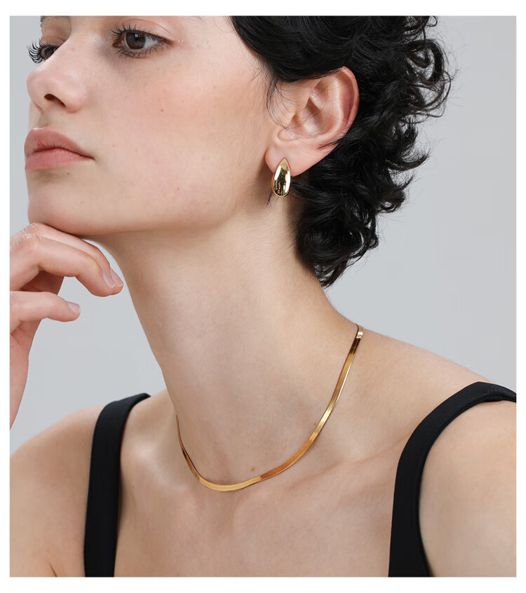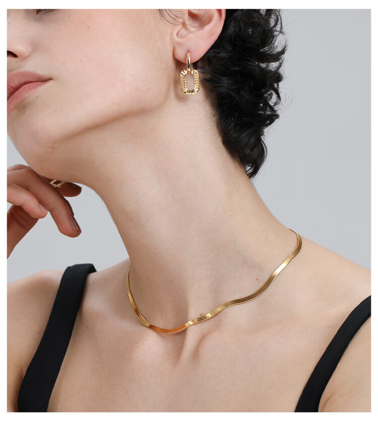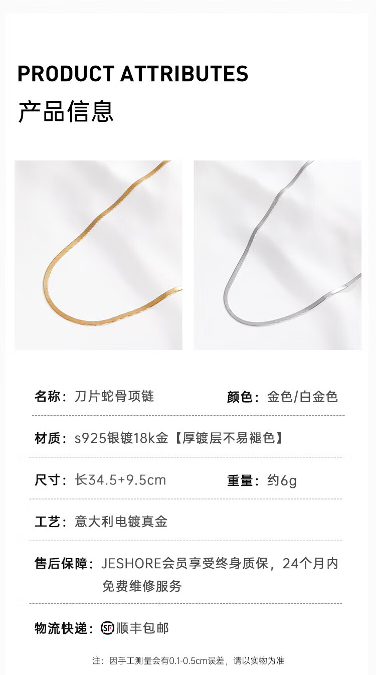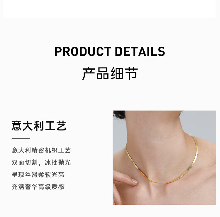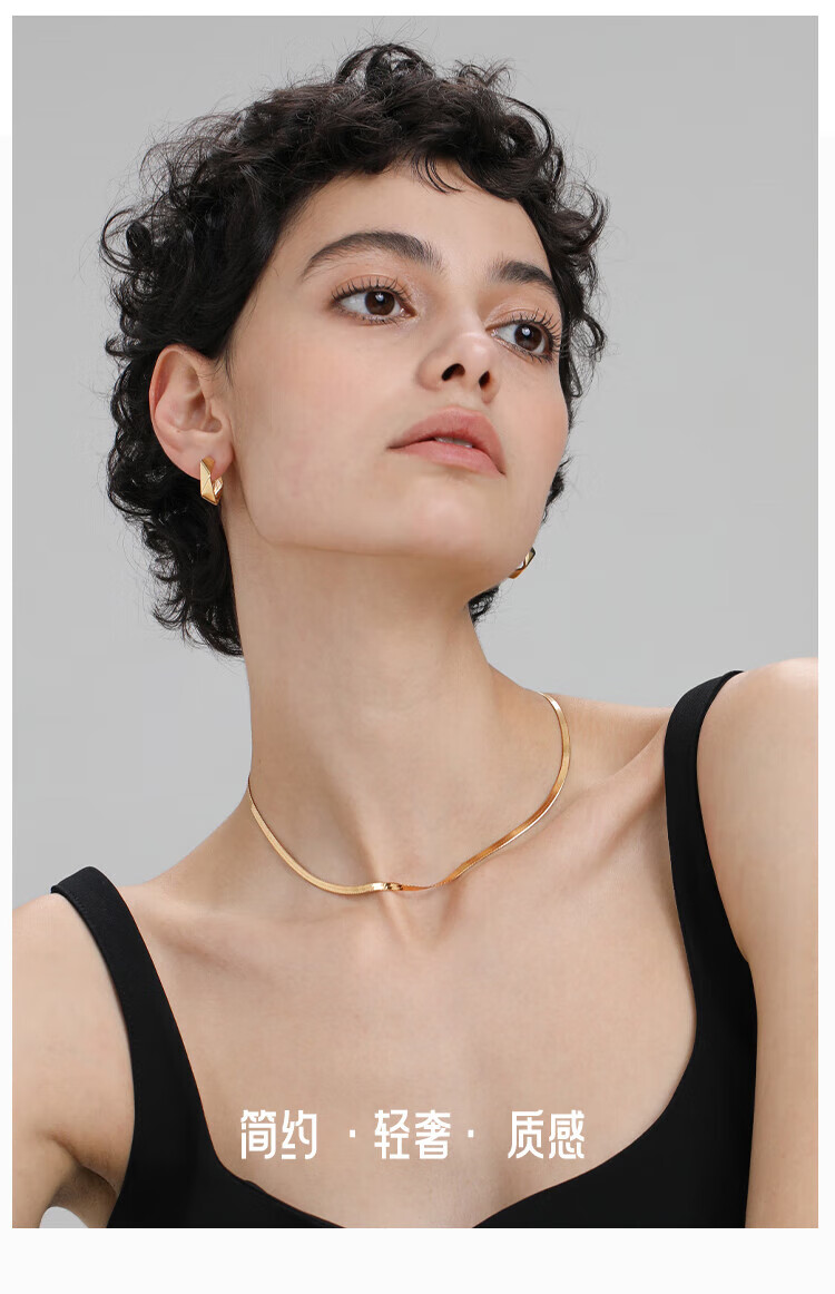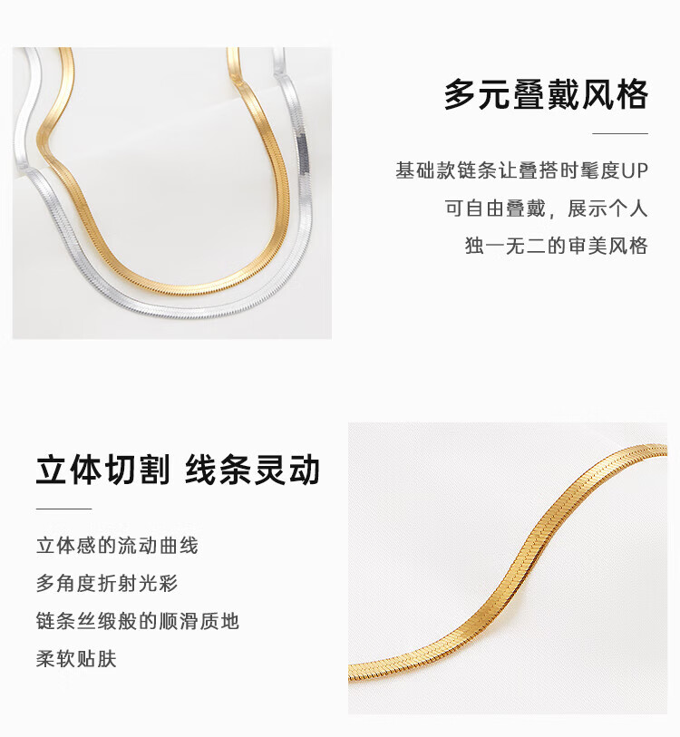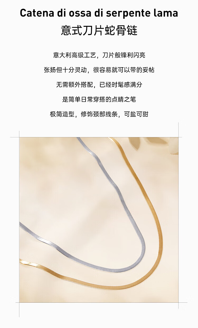 Fat Donglai's same style 18k gold necklace snake bone chain Qin Lan's same style Italian blade snake bone commuting versatile plated lock gold blade snake bone chain length 35+10cm