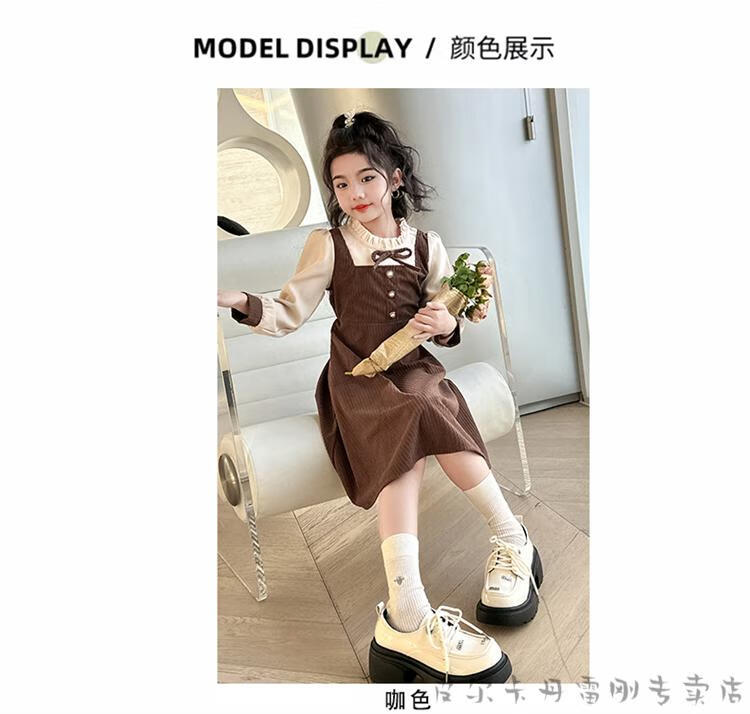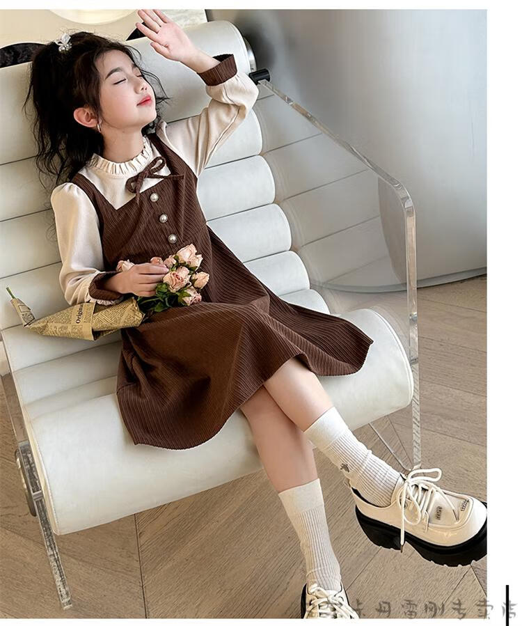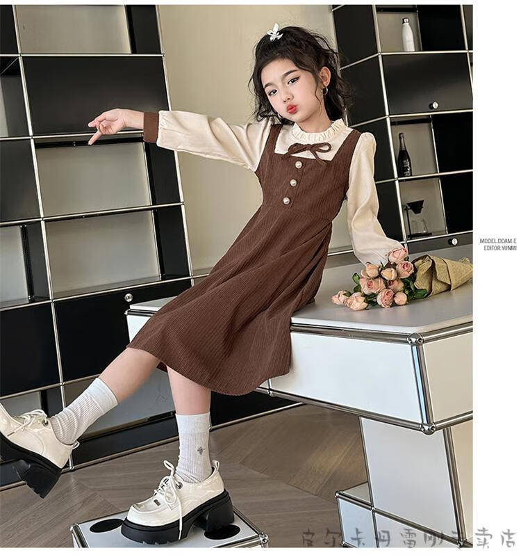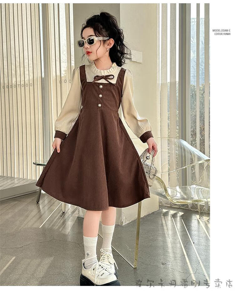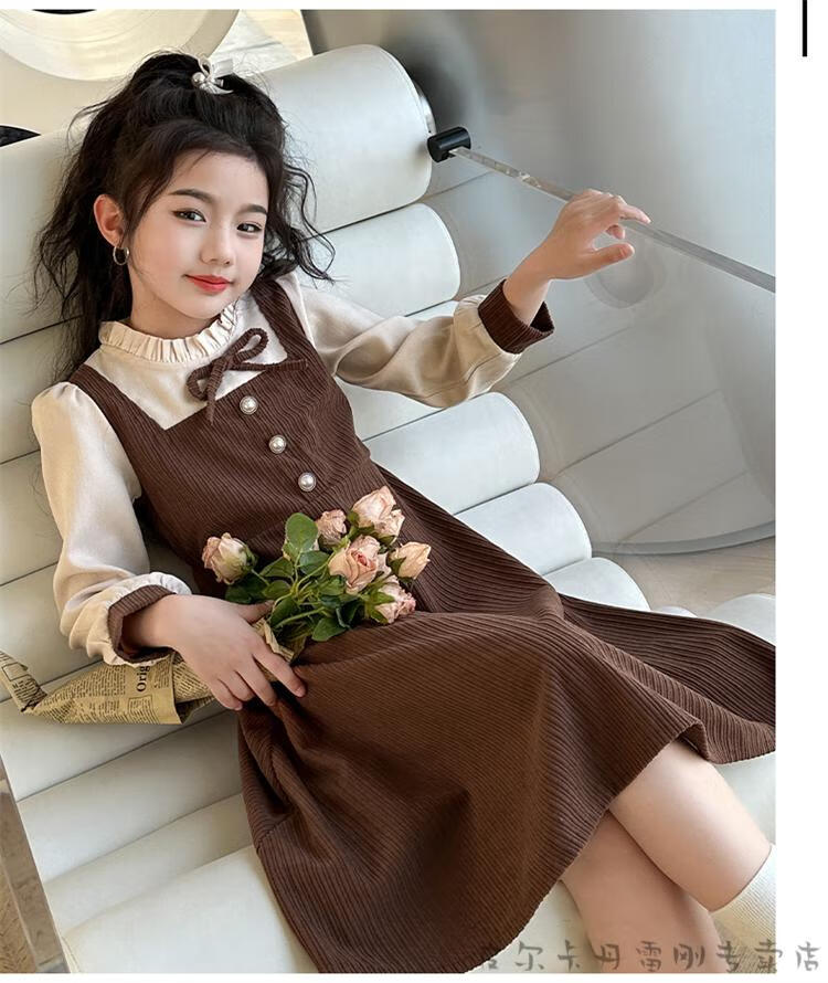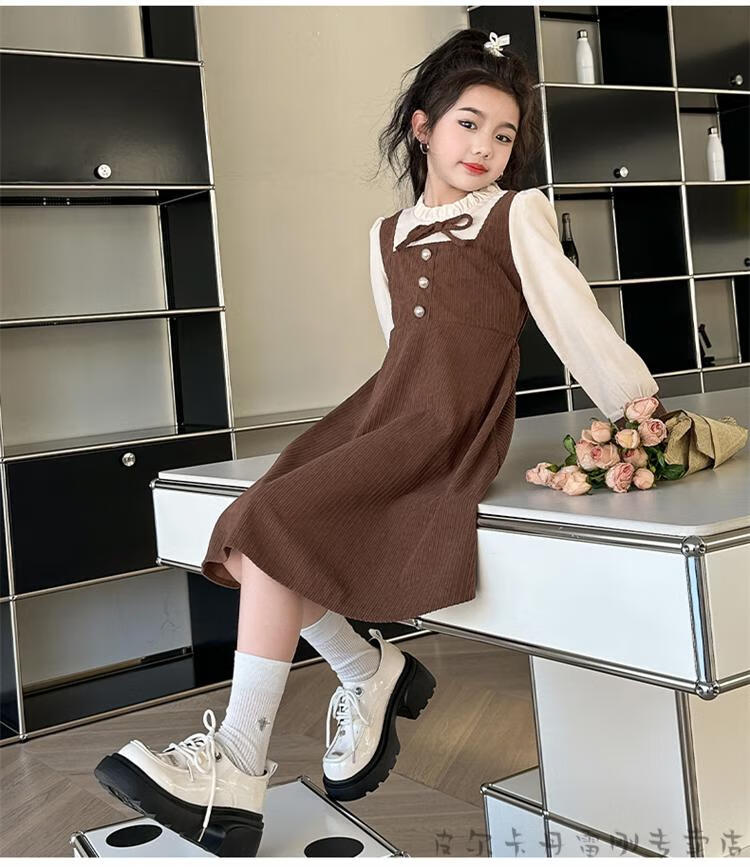 Pierre Cardin girls fake two-piece dress autumn comfortable and casual middle-aged and older girls corduroy skirt preppy style princess dress picture color fake two-piece dress 120 cm