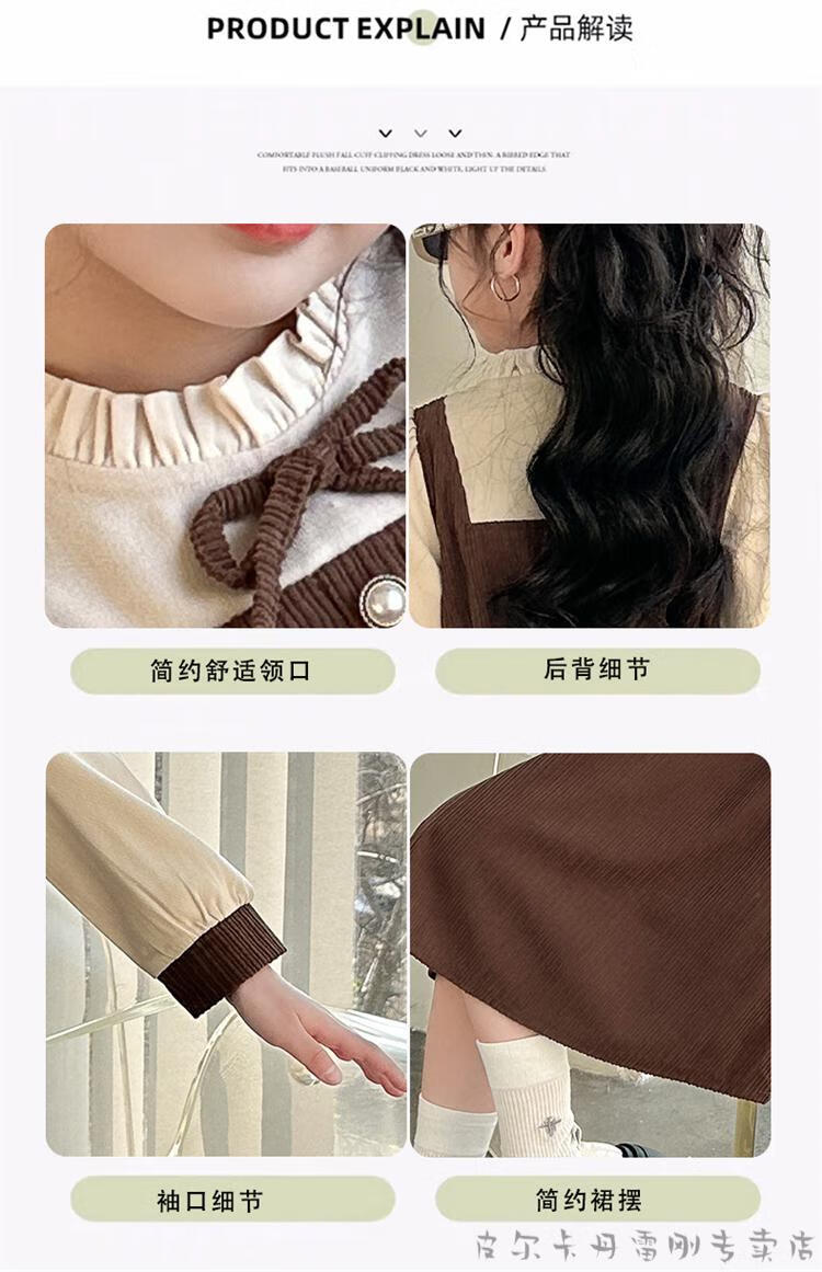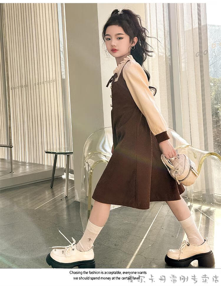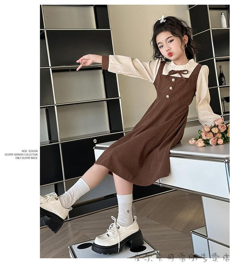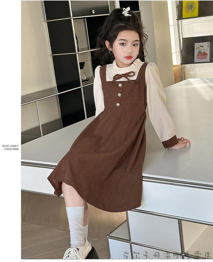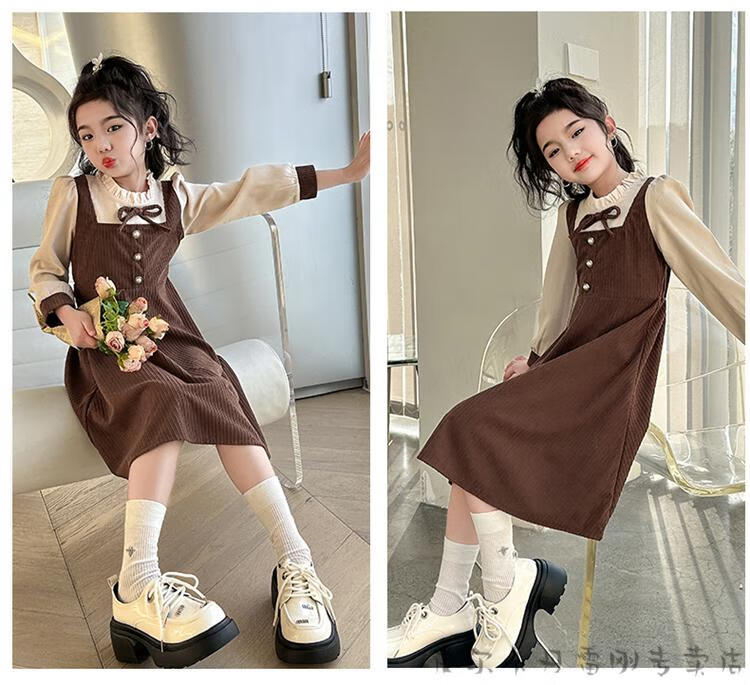 Pierre Cardin girls fake two-piece dress autumn comfortable and casual middle-aged and older girls corduroy skirt preppy style princess dress picture color fake two-piece dress 120 cm