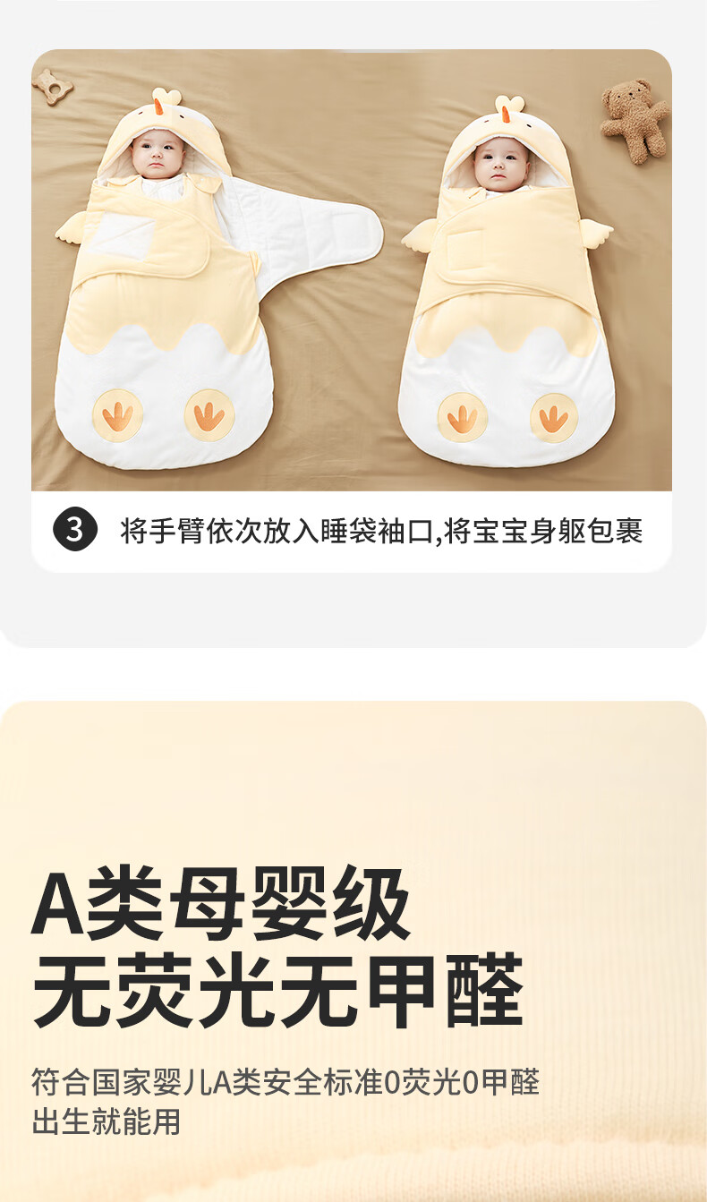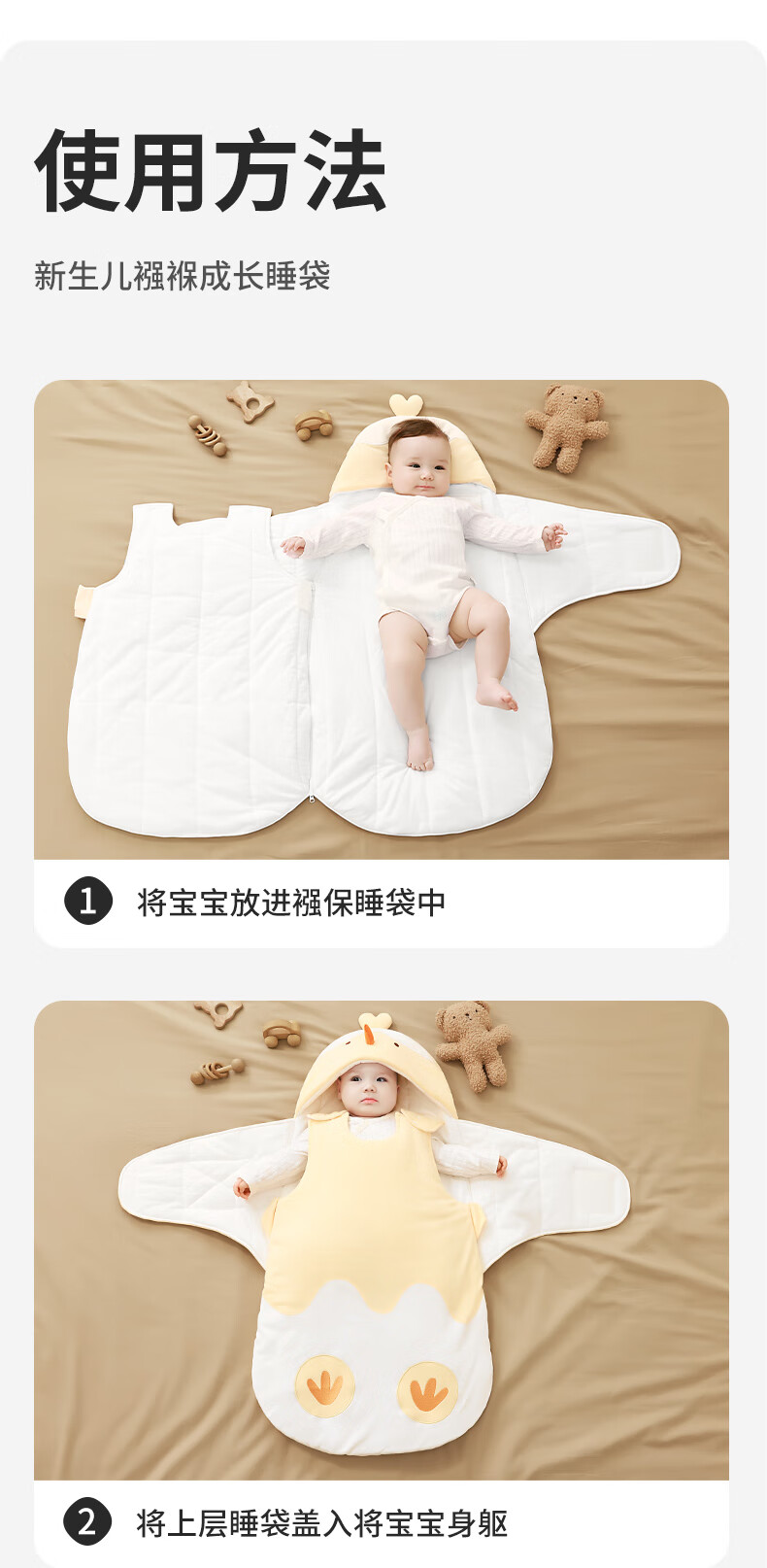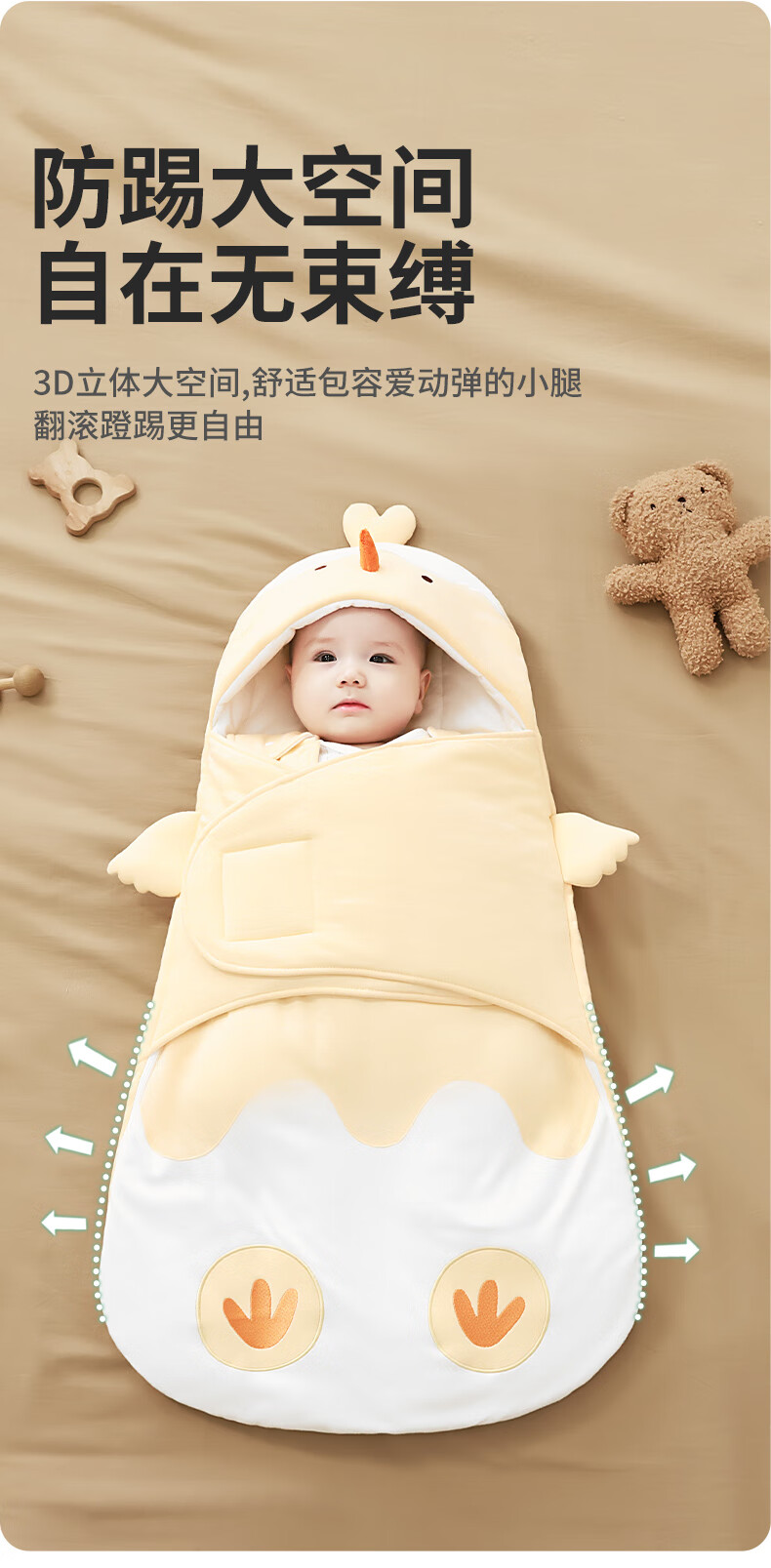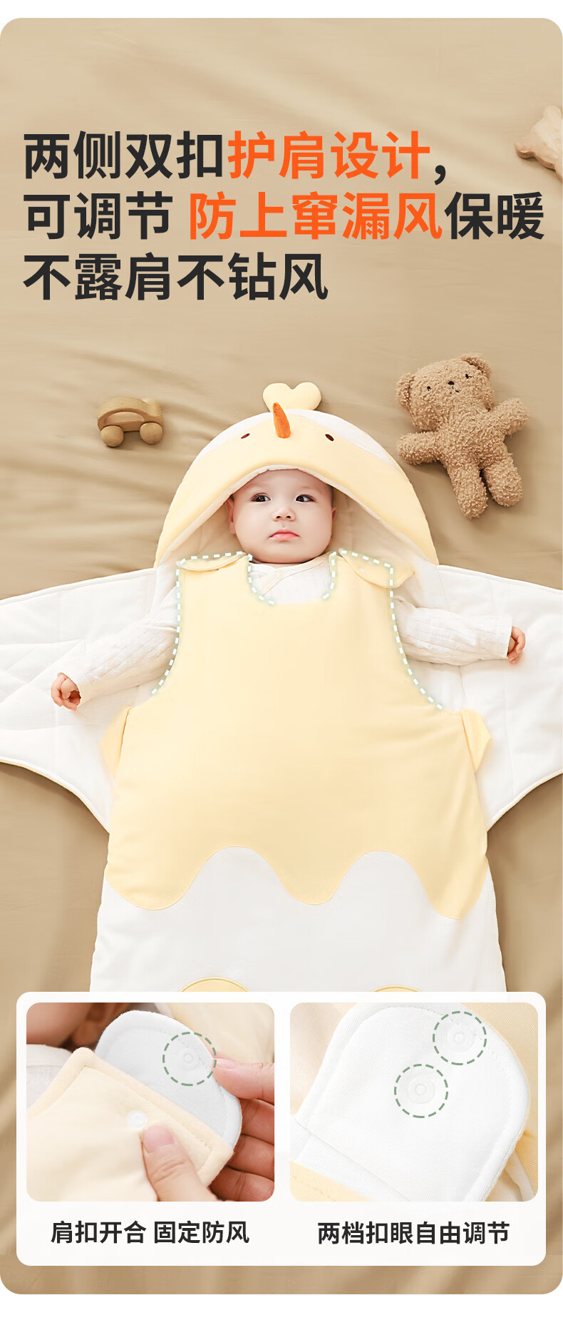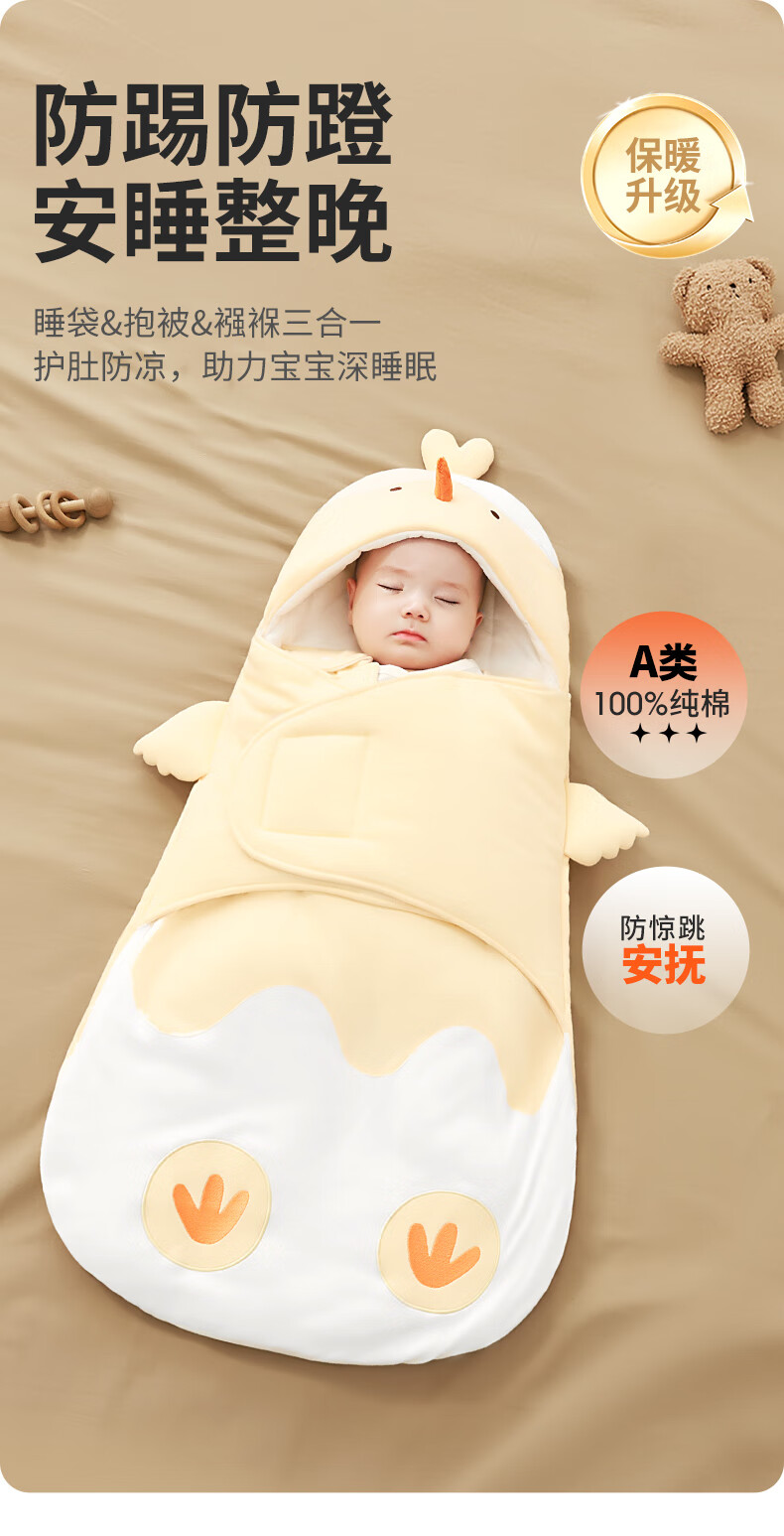 Dr. Colorful Baby Sleeping Bag Autumn and Winter Constant Temperature Cotton Baby Bag Anti-Cold Anti-Thickening Warm Newborn Anti-Jumping Quilt Egg Waffle Yellow