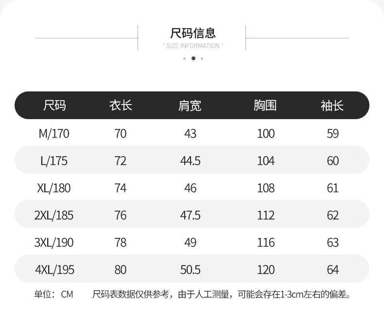 China (cm) 165 / 88-90 170 / 96-98 175 / 108-110 180 / 118-122 185 / 126-130