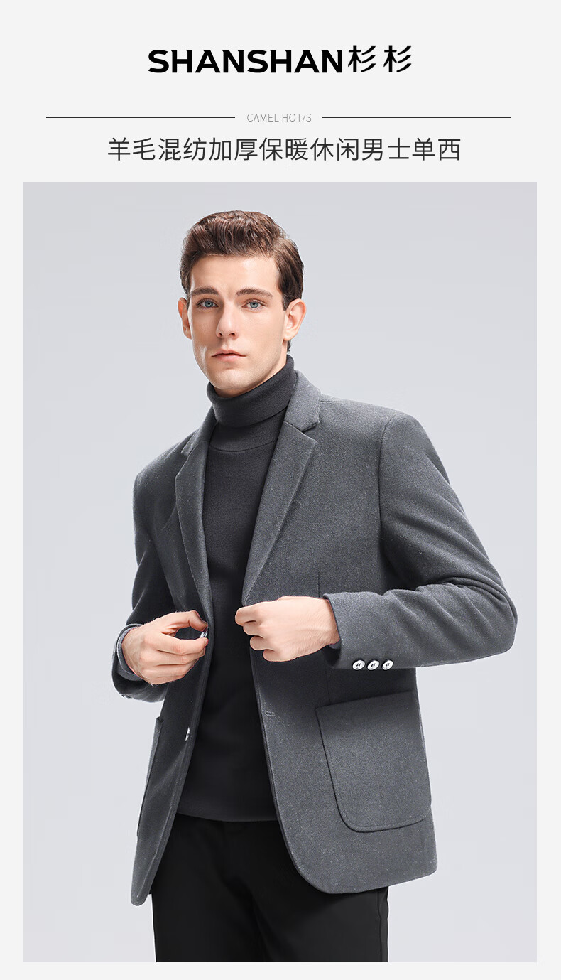 SHANSHAN Shanshan Wool Suit Jacket Men's Spring and Autumn New Warm Easy-Care Jacket Business Commuting Workplace Top Men Black L /175 Recommended 115-135 Jin Jin equals 0.5 kg