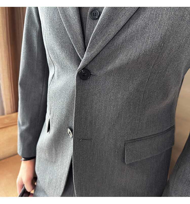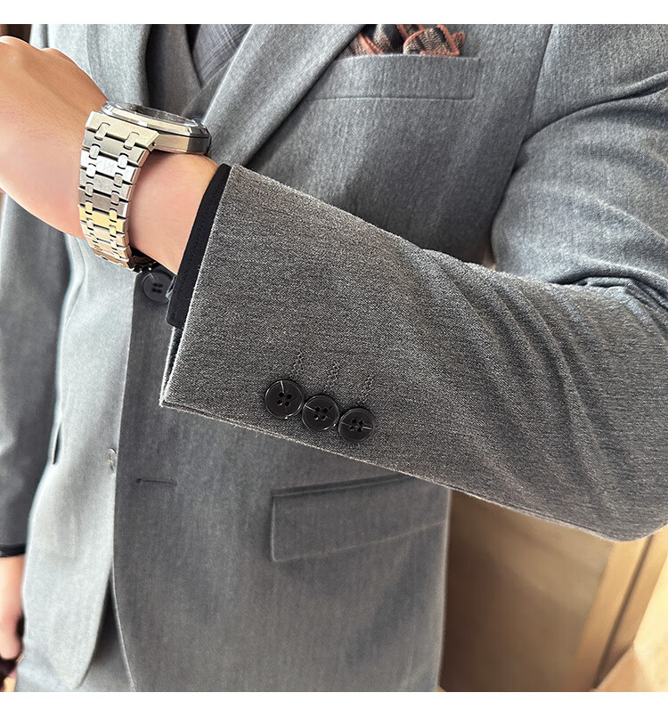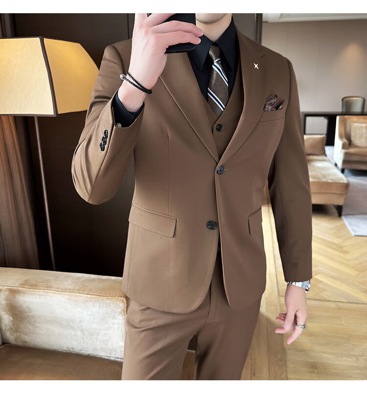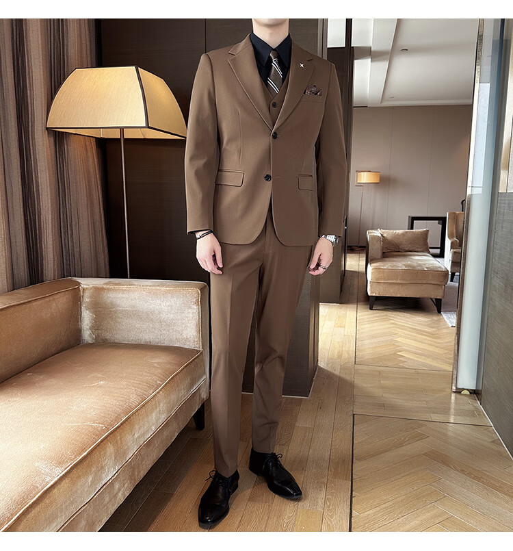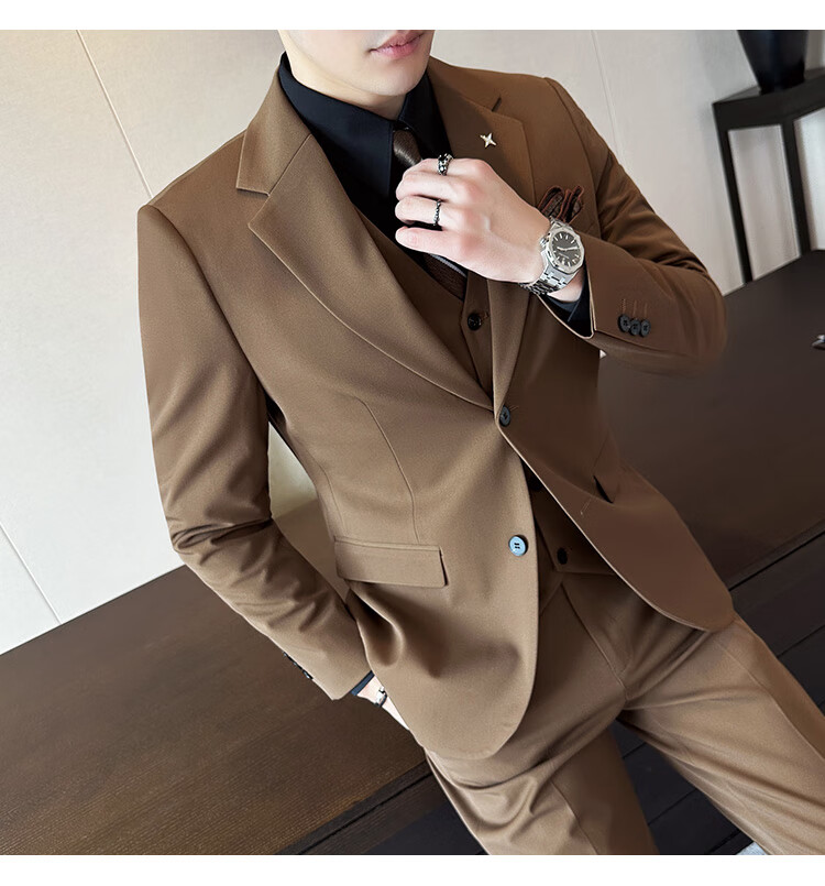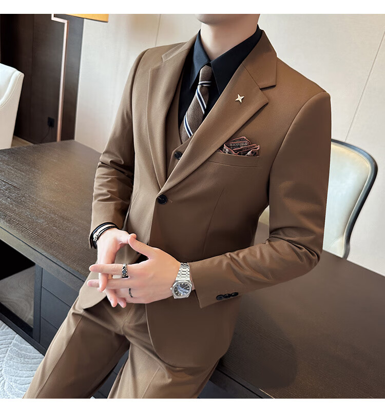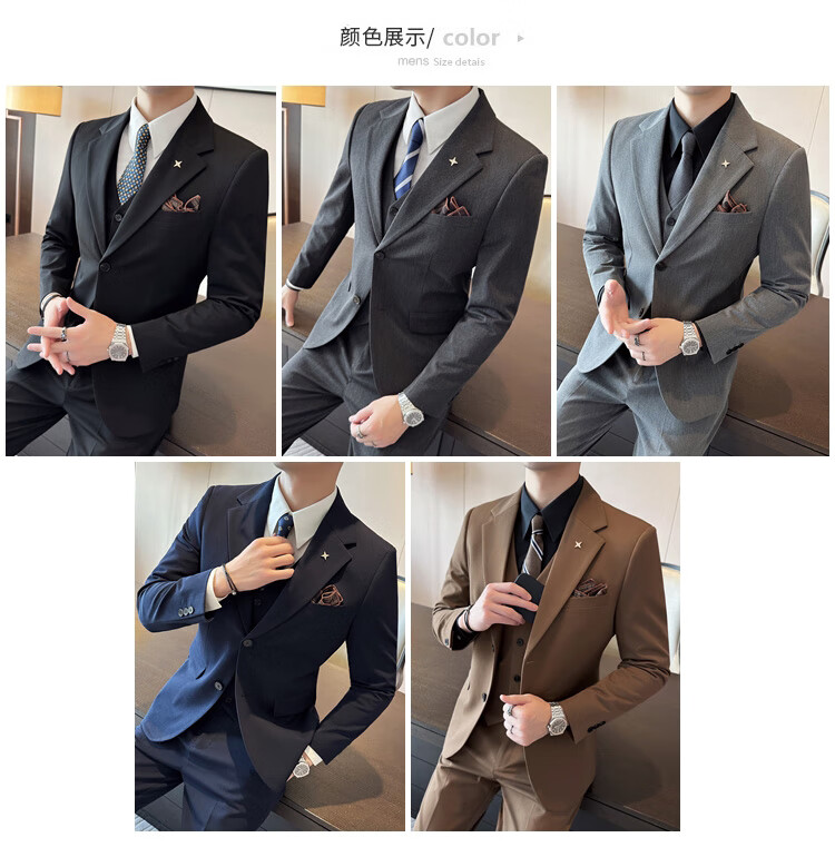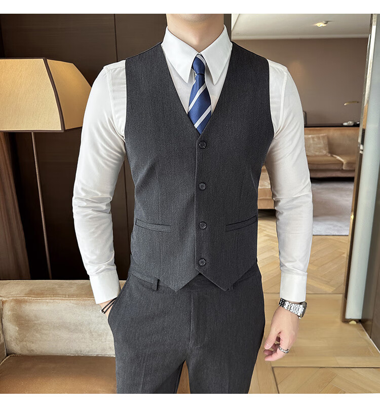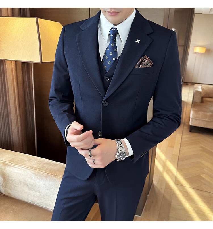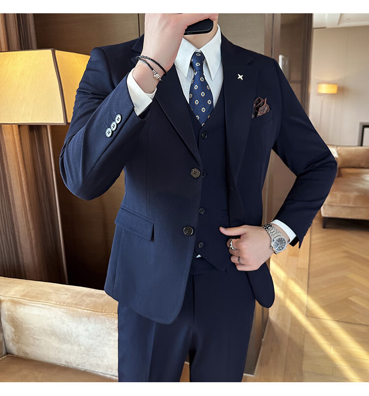 ROMON high-end suit suit men's slim large size suit business professional formal dress groom and best man wedding dress black suit + vest + trousers M