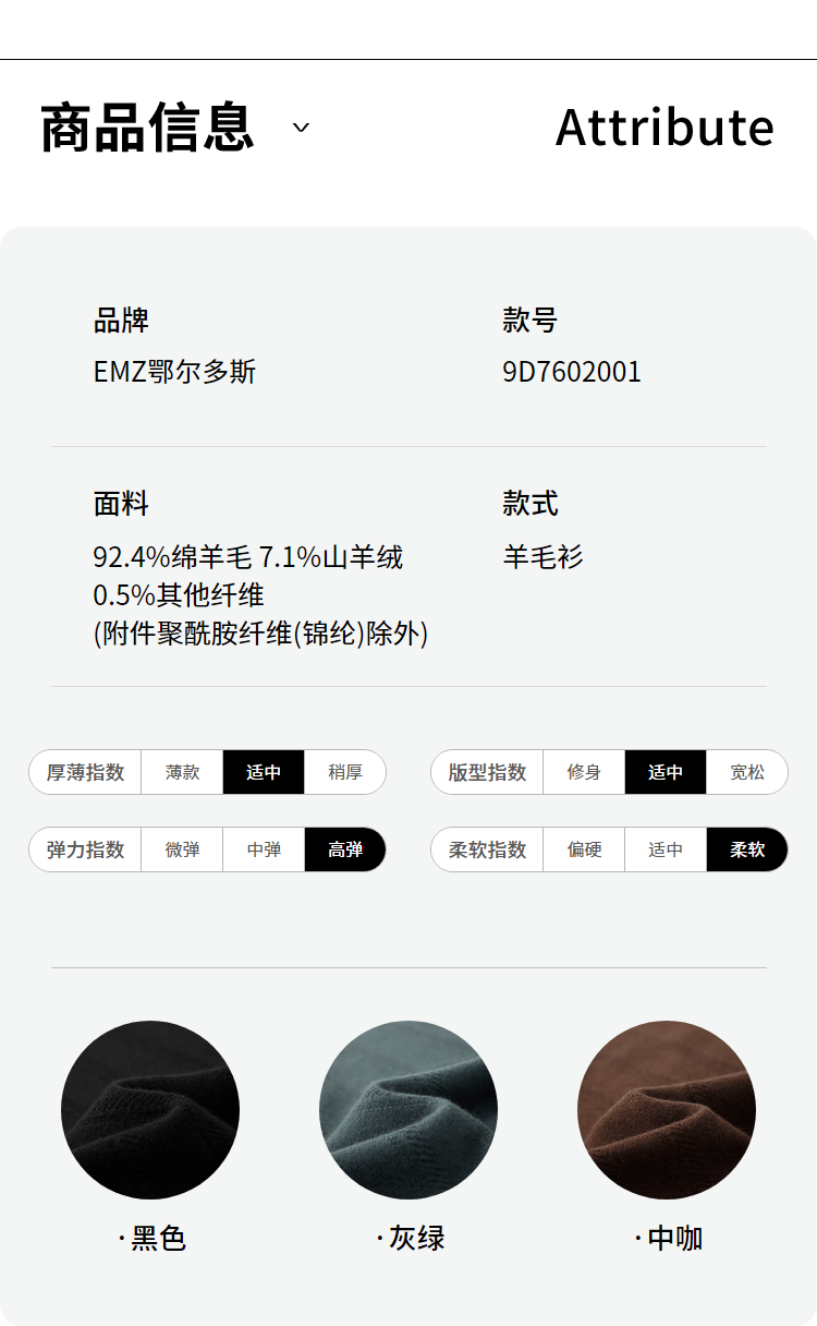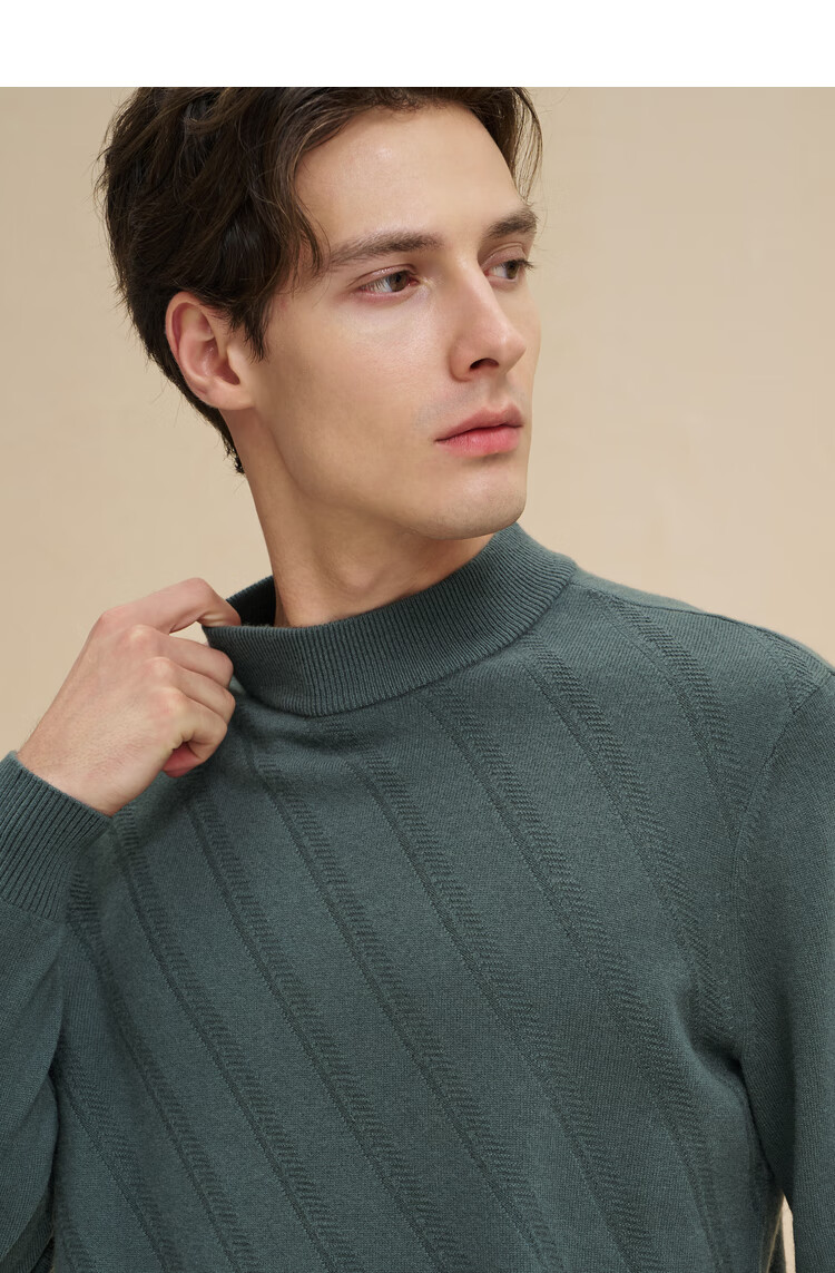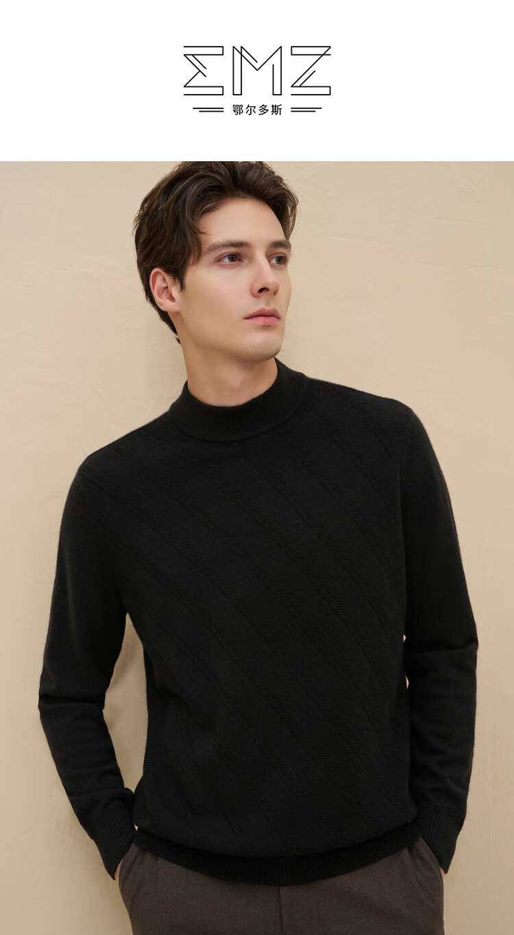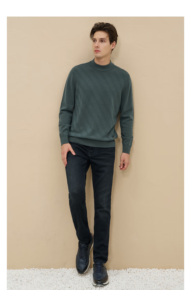 EMZ Ordos wool cashmere spring and autumn antistatic antibacterial half turtleneck warm base sweater for men gray green regular XL recommended height 175-180/weight 150-160Jin Jin equals 0.5 kg