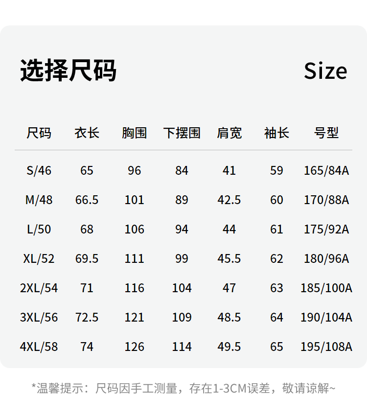 China (cm) 160-165/84-86 165-170 / 88-90 167-172 / 92-96 168-173 / 98-102 170-176 / 106-110
