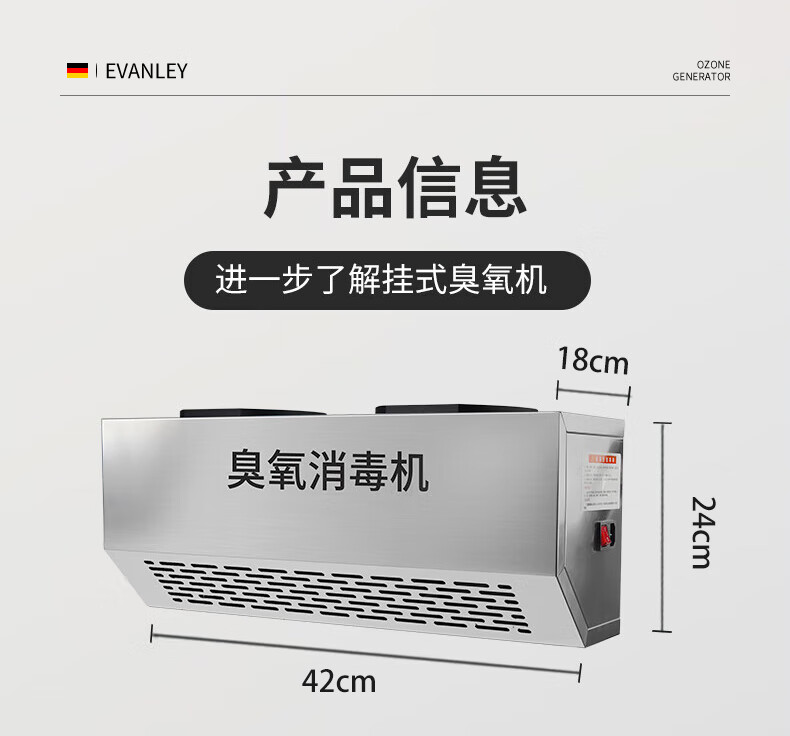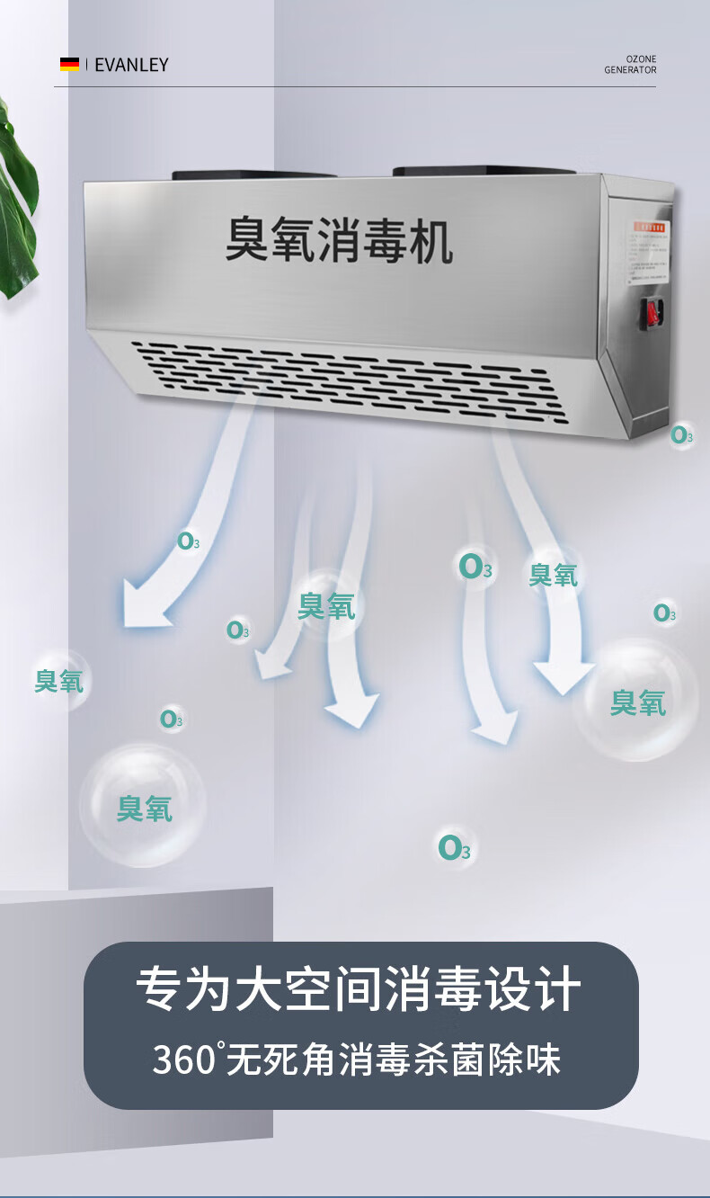 EVANLEY wall-mounted ozone generator industrial commercial school laboratory food factory packaging workshop disinfection machine garbage room purification air deodorization disinfection sterilization ozone machine 10g/h (100 square meters) remote control timing durable model