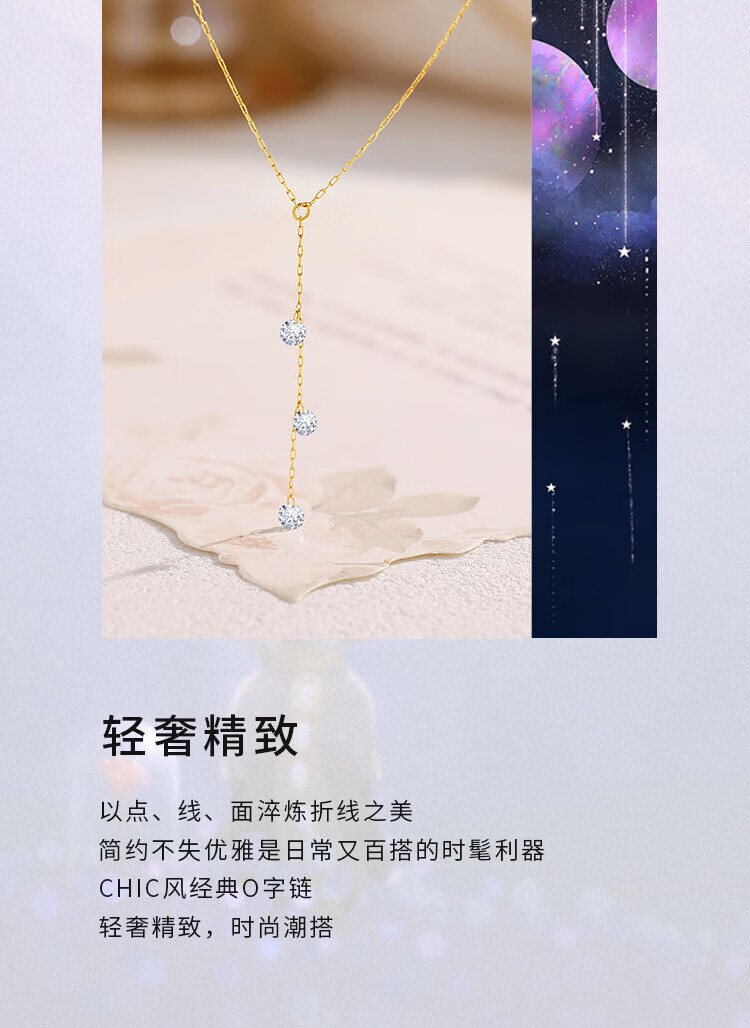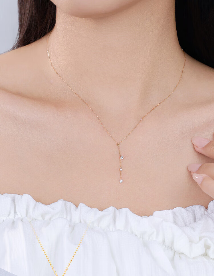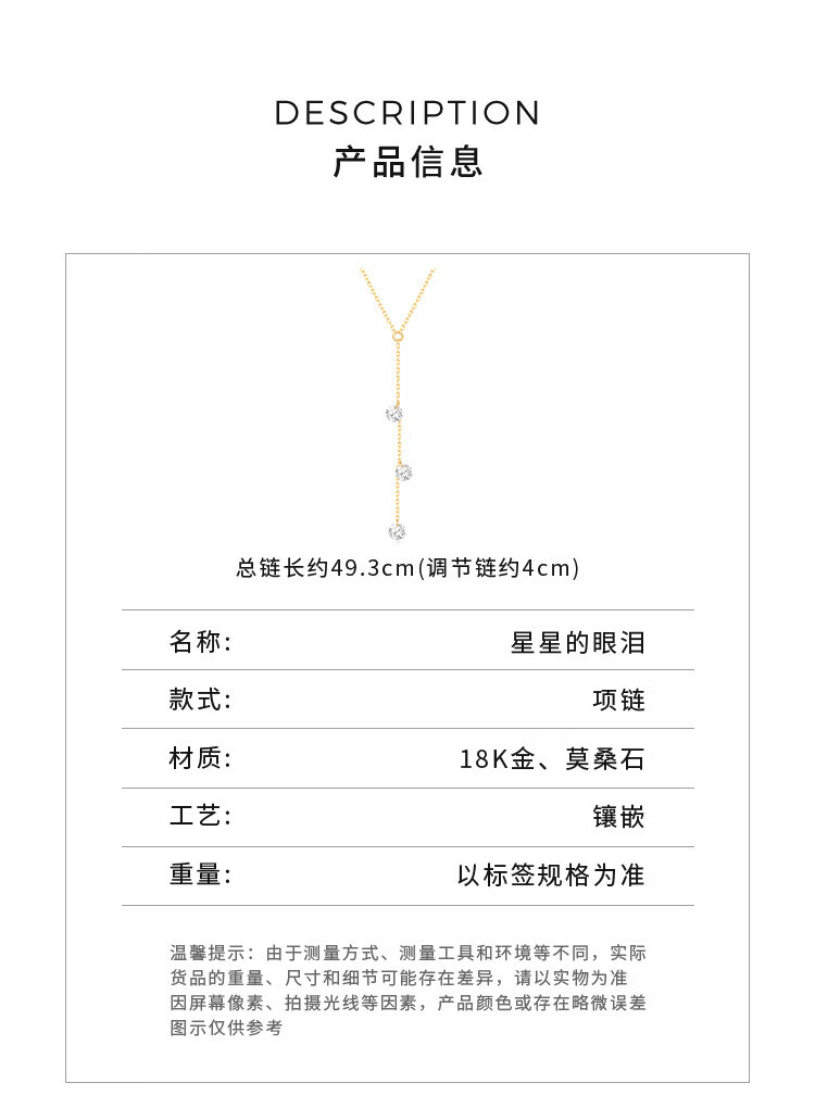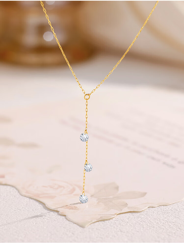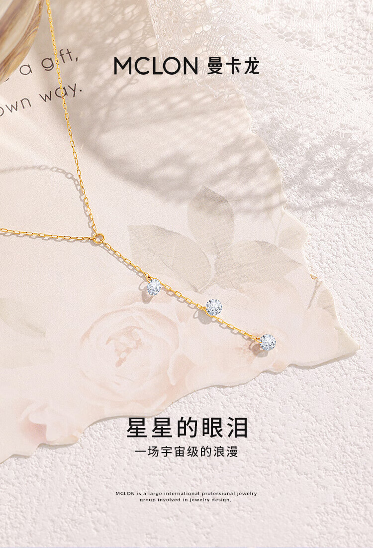 Mankalong 18K gold necklace, the female star’s tears, versatile and smart, inlaid with moissanite, a gift for your girlfriend, the star’s tears