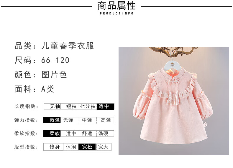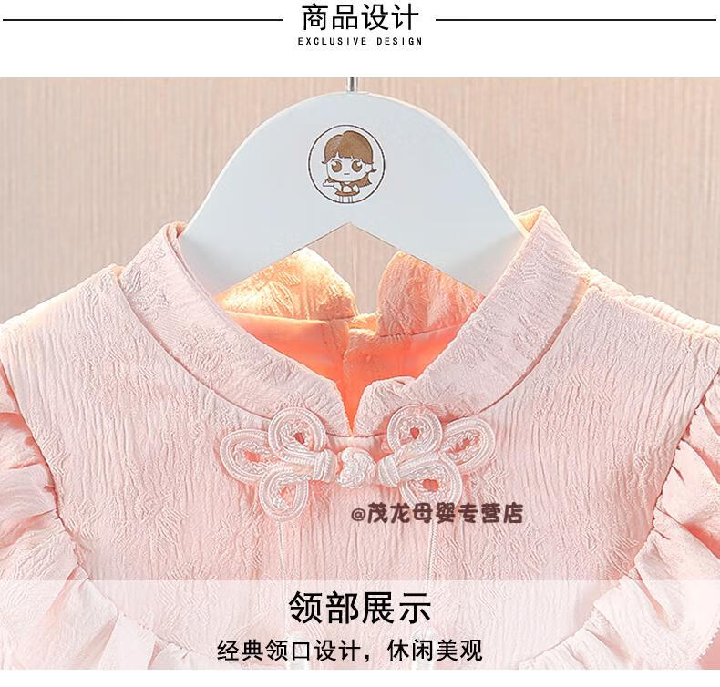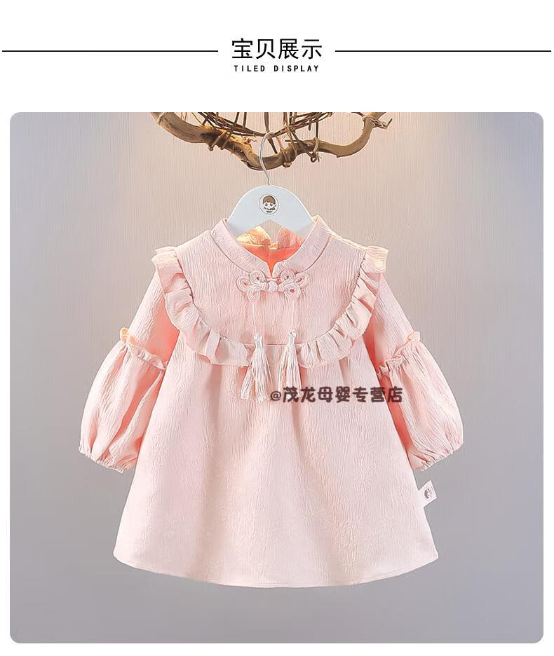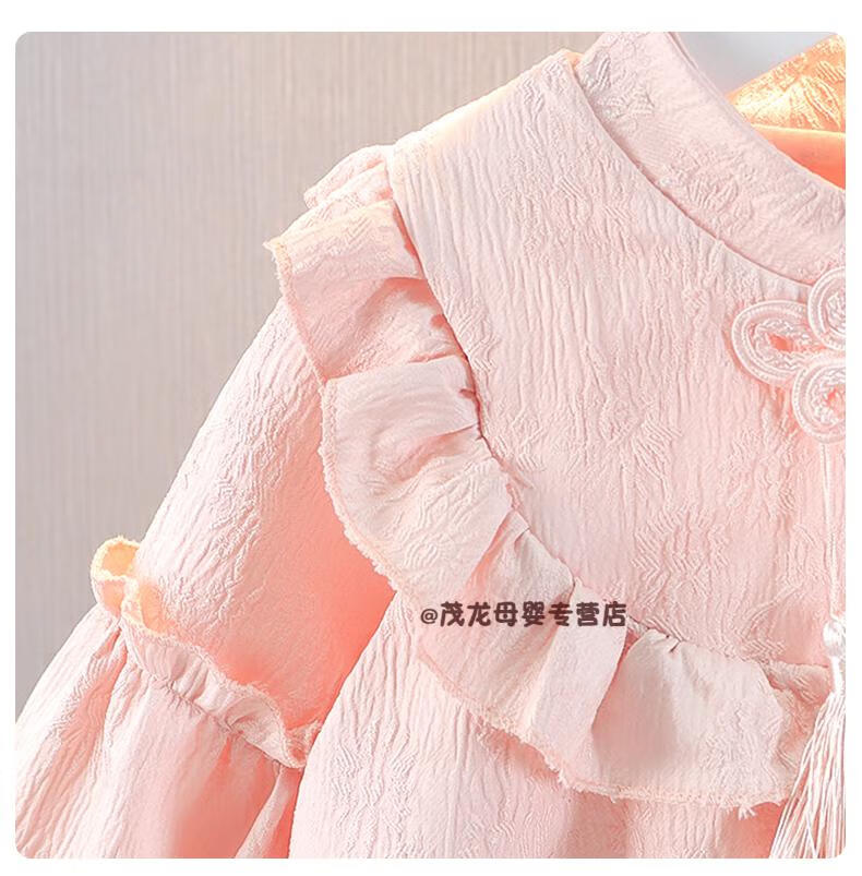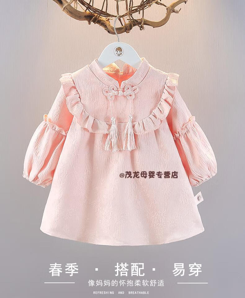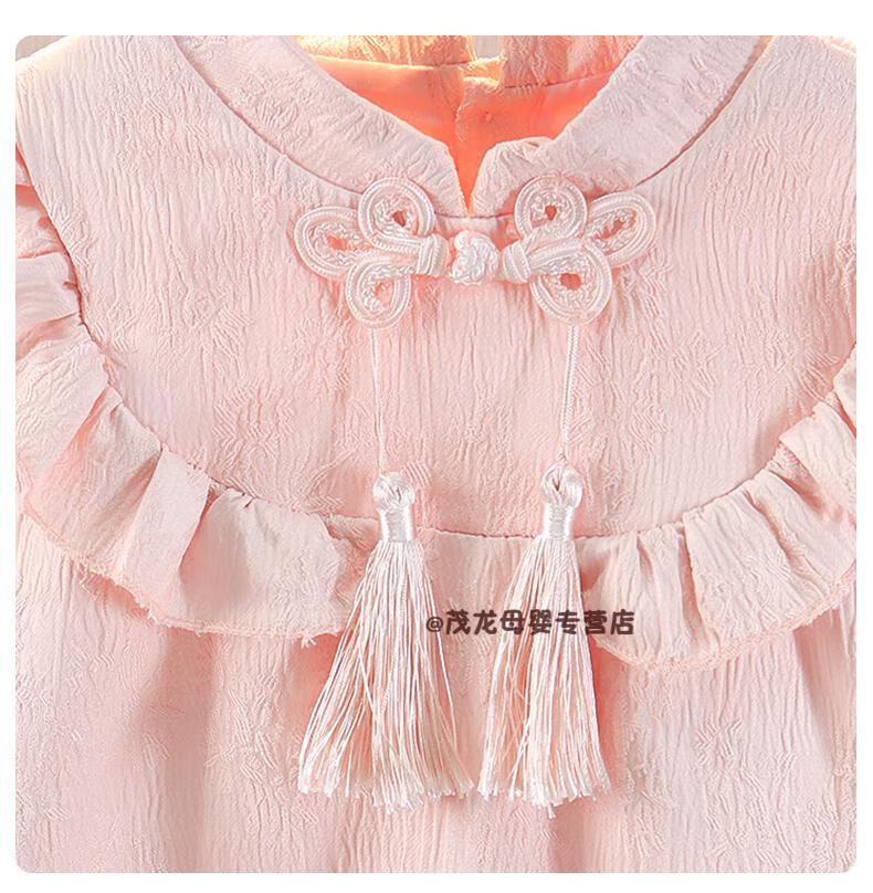 G.duck girls autumn dress 2026 new one-year-old baby dress children's Hanfu Chinese style princess dress spring and autumn pink 90 cm