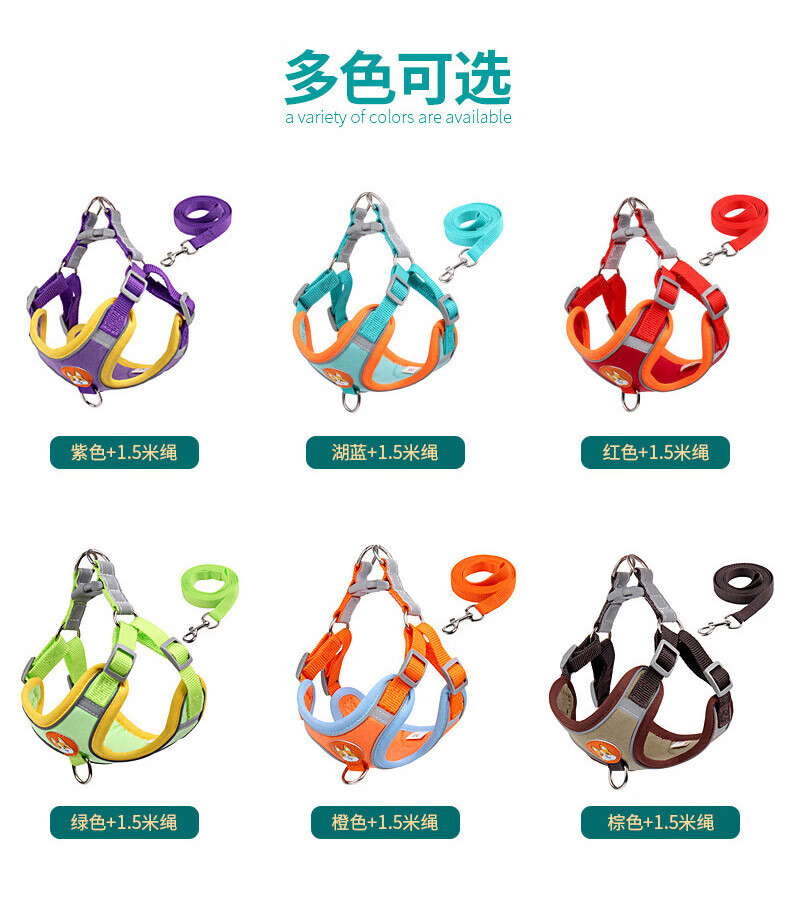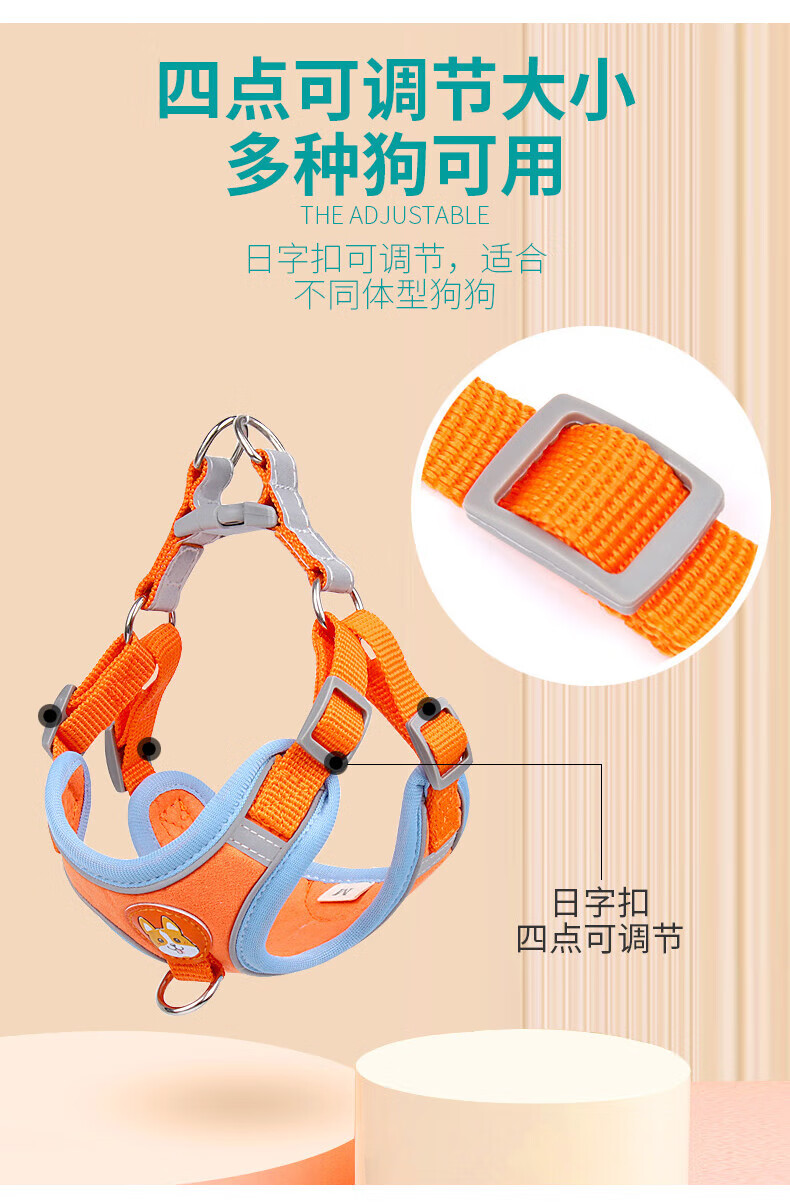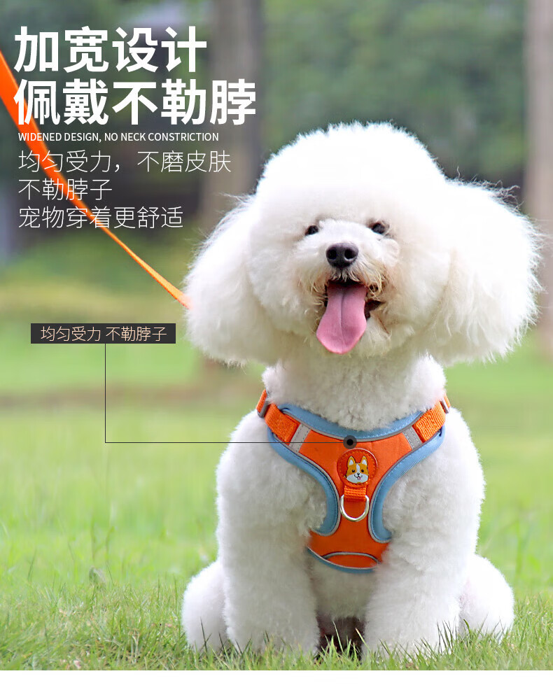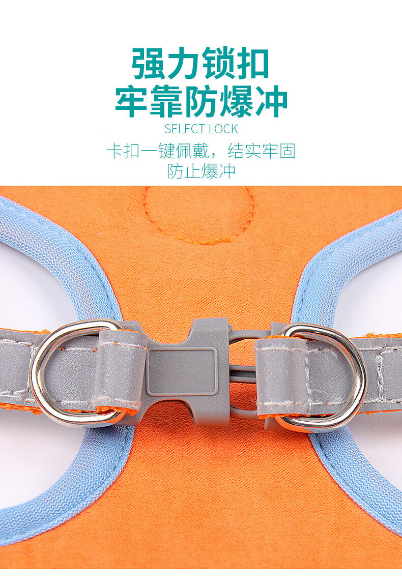 Vest type dog leash medium small dog Teddy Bichon Pomeranian harness puppy dog walking rope dog chain orange + 1.5 meter flat rope M (recommended 6-13 Jin Jin equals 0.5 kg)
