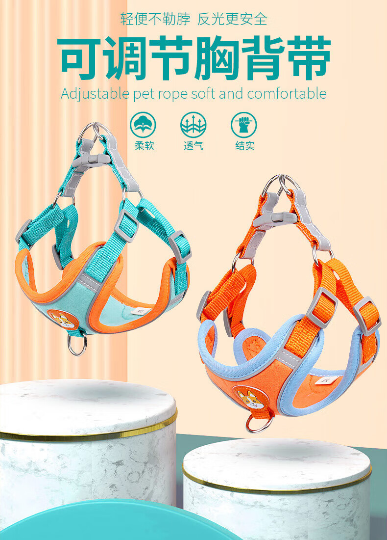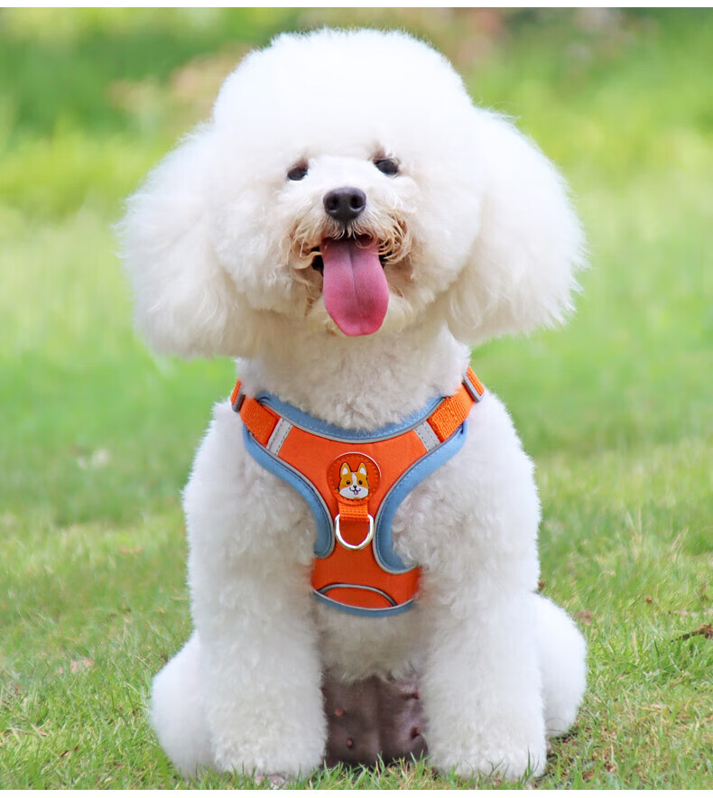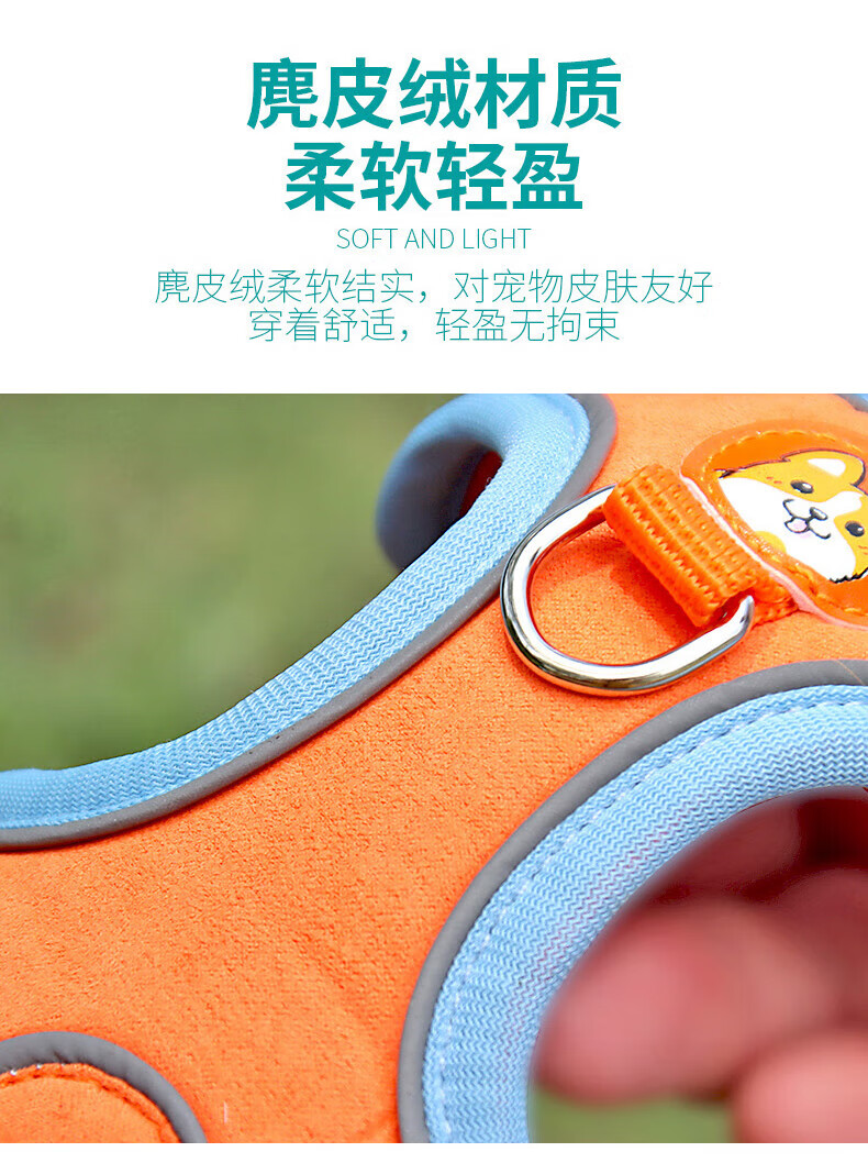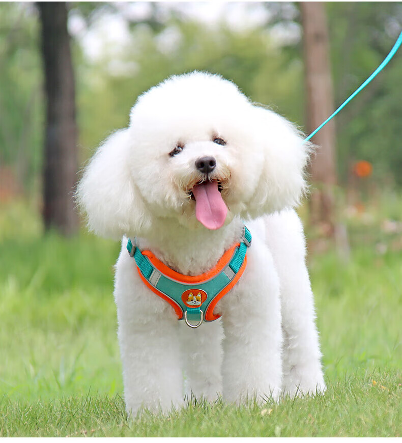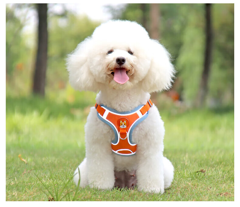 Vest type dog leash medium small dog Teddy Bichon Pomeranian harness puppy dog walking rope dog chain orange + 1.5 meter flat rope M (recommended 6-13 Jin Jin equals 0.5 kg)