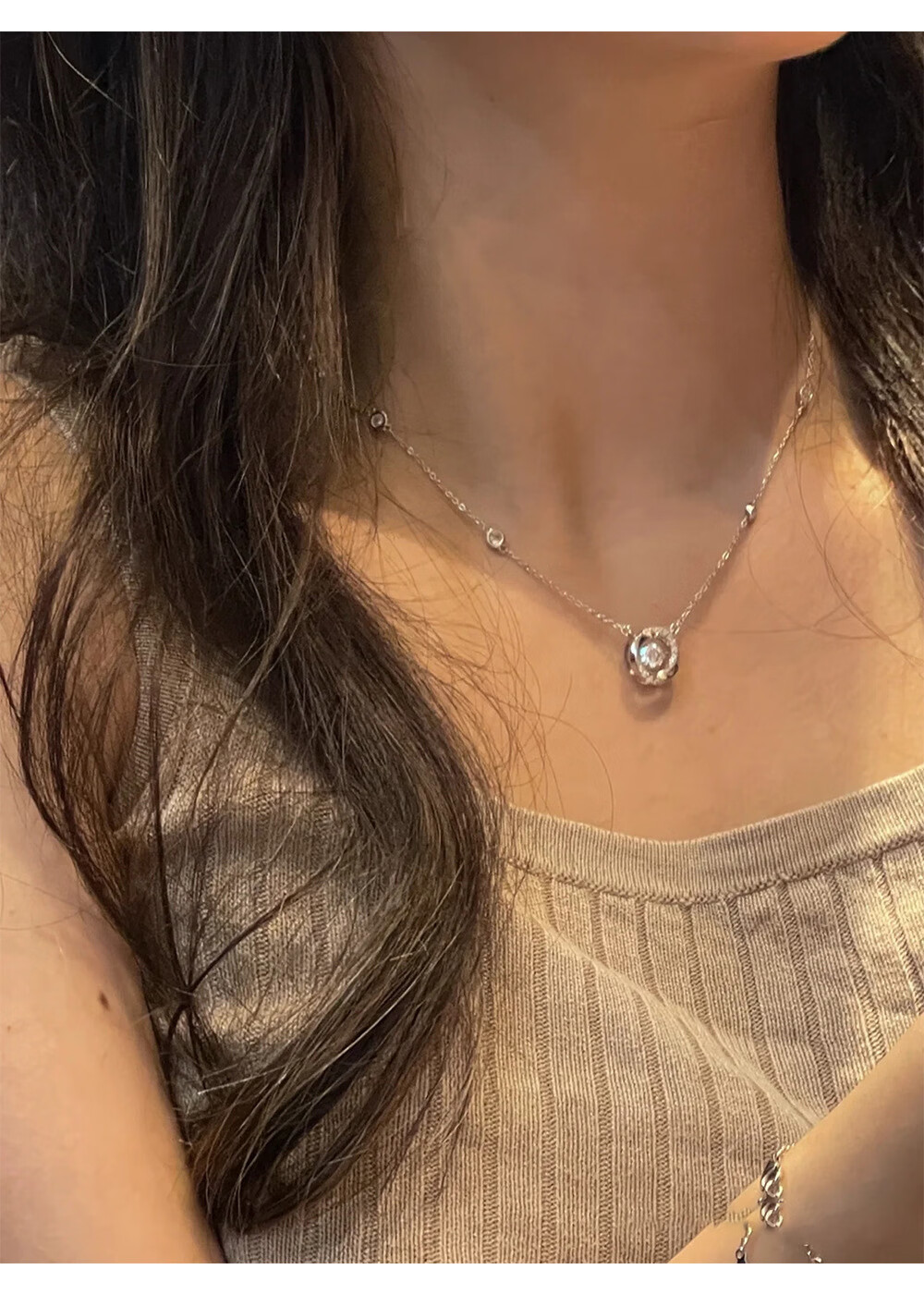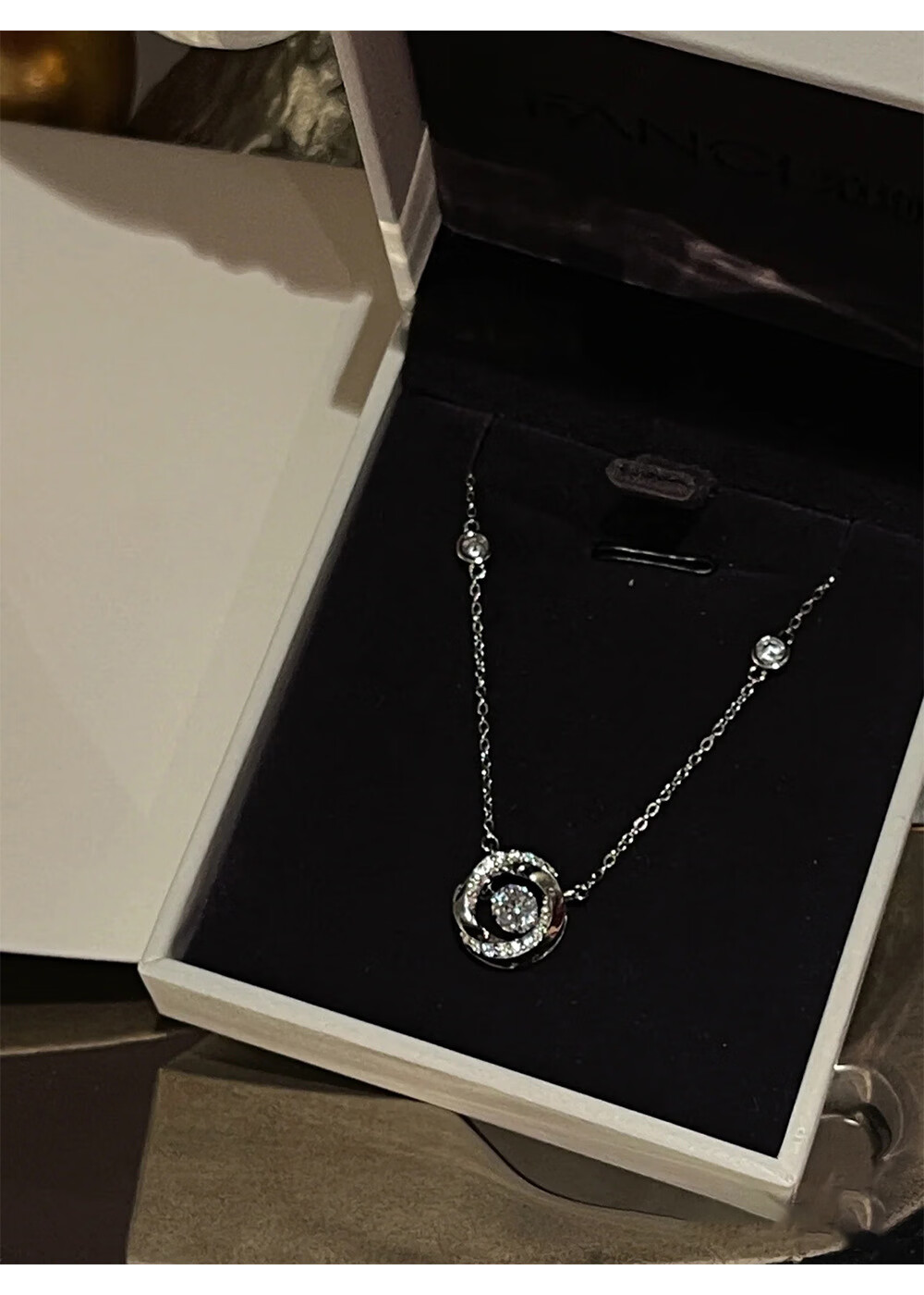 Decorative Show Möbius Ring Pendant Necklace Women's High-Level Light Luxury 2024 New Zircon Clavicle Chain Wife's Birthday Gift Smart Möbius White Diamond Necklace