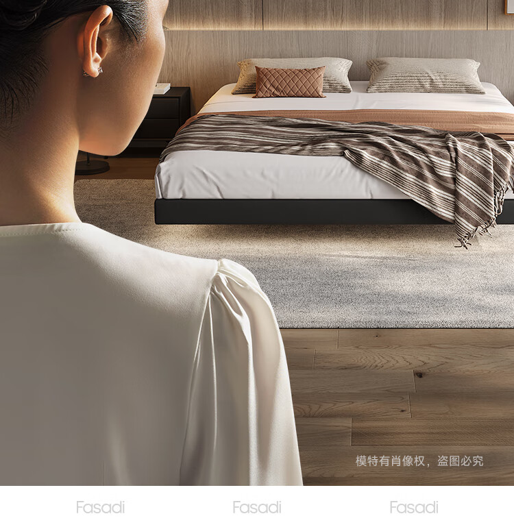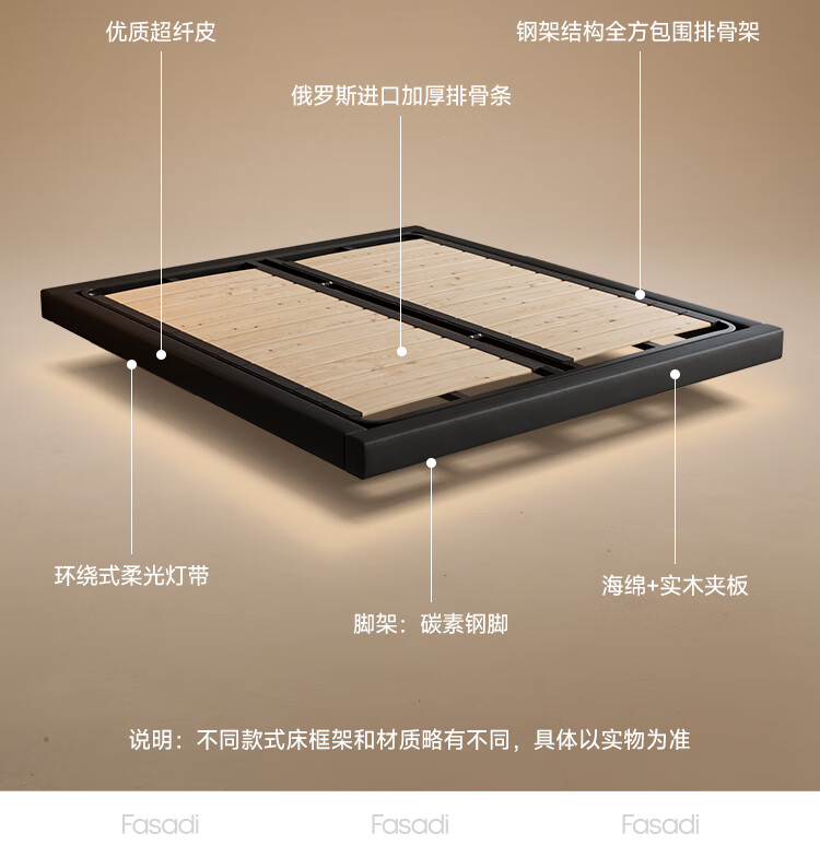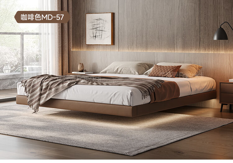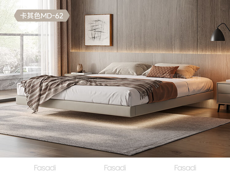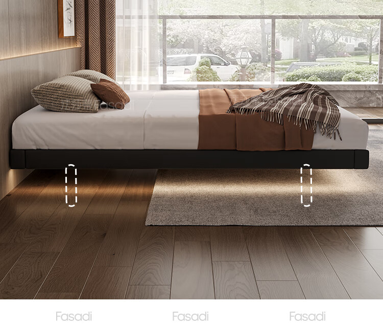 Fasati Bedsideless Suspended Bed Italian Minimalist Leather Bed Light Luxury Master Bedroom Modern Simple Backless Bed Frame Single Bed (Flagship Edition 20cm Frame) 1.8*2m Suspended