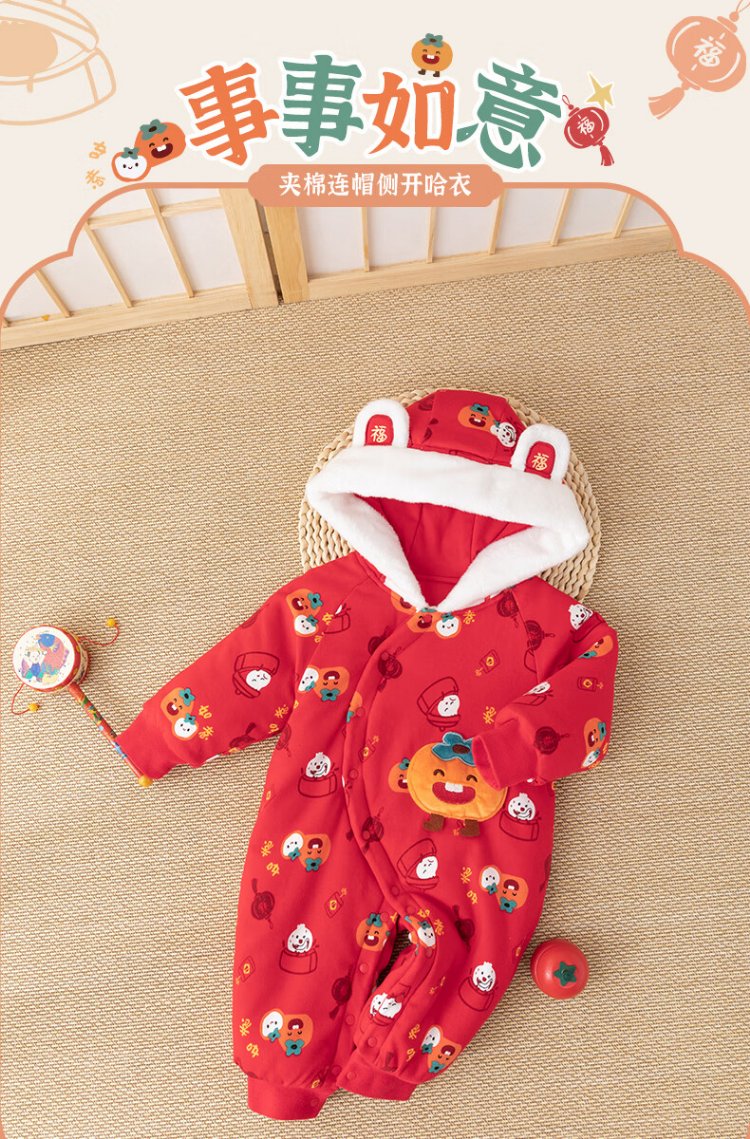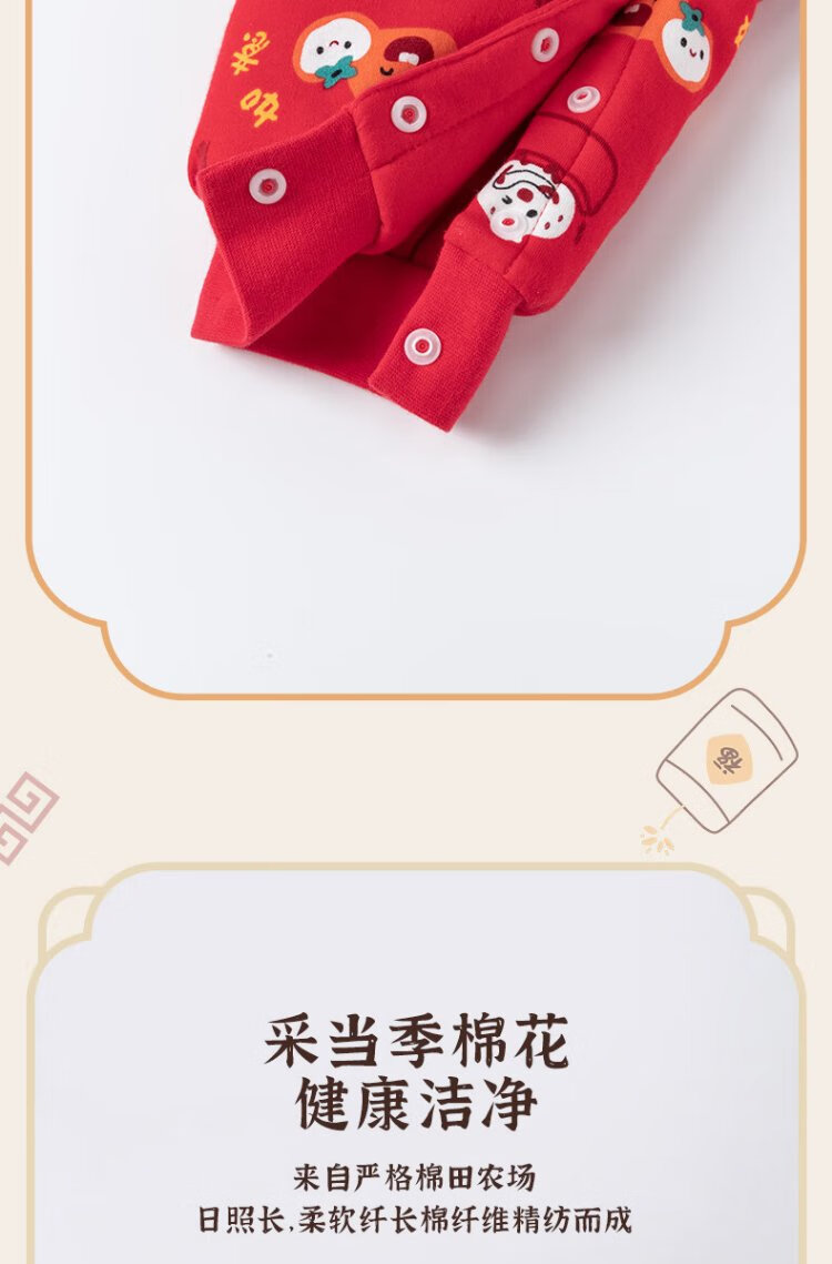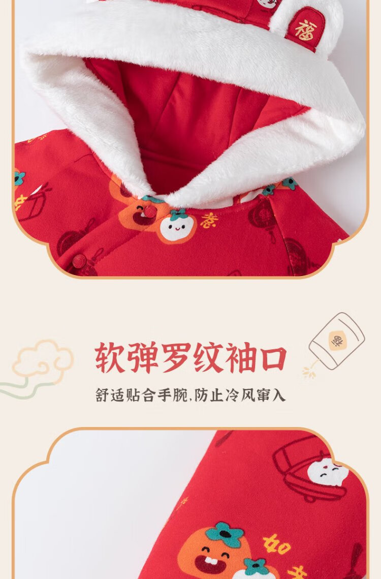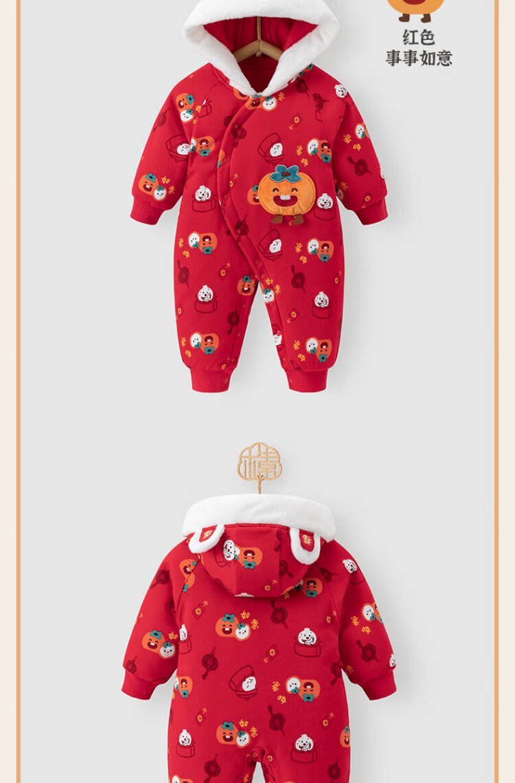 Guiqi Xiong clearance baby quilted one-piece clothes New Year greeting clothes autumn and winter baby warm red thickened cotton clothes red/everything goes well 73cm